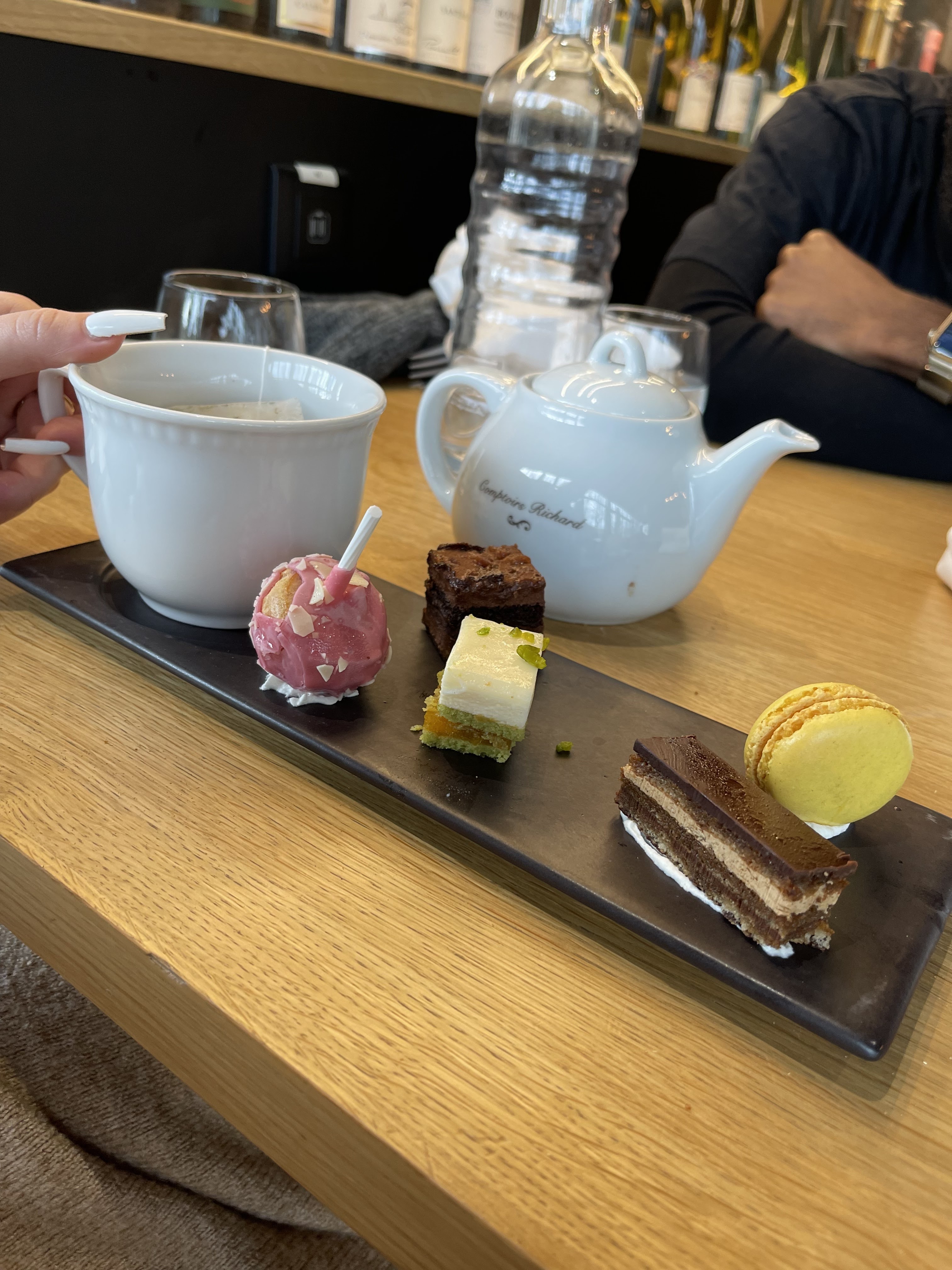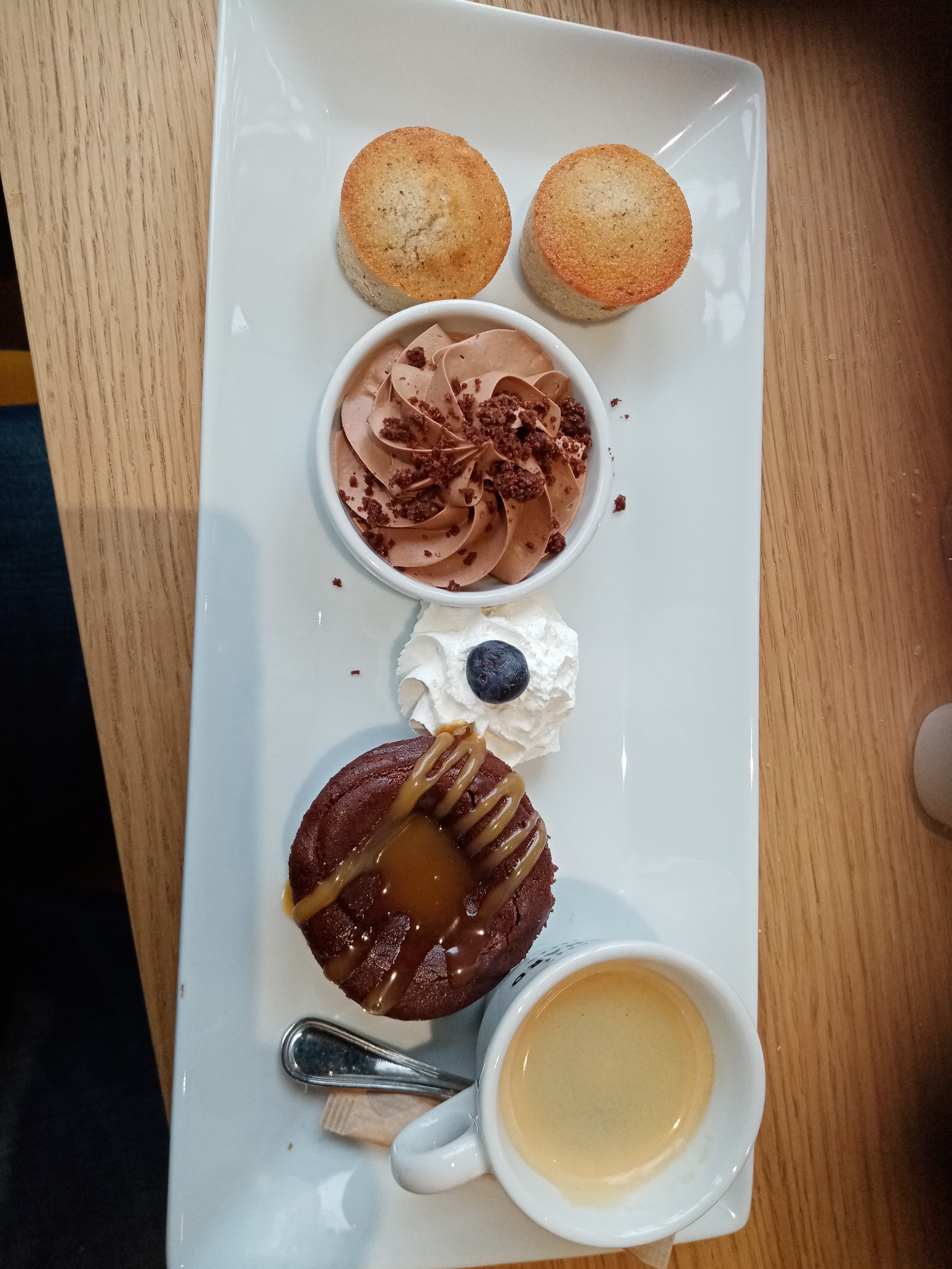 Une belle découverte en sortant du parking du mail. Un petit rayon de soleil ☀️ en terrasse Un petit verre de blanc, une petite planche, un café gourmand…😋 mention 💯 % pour le café gourmand 😉