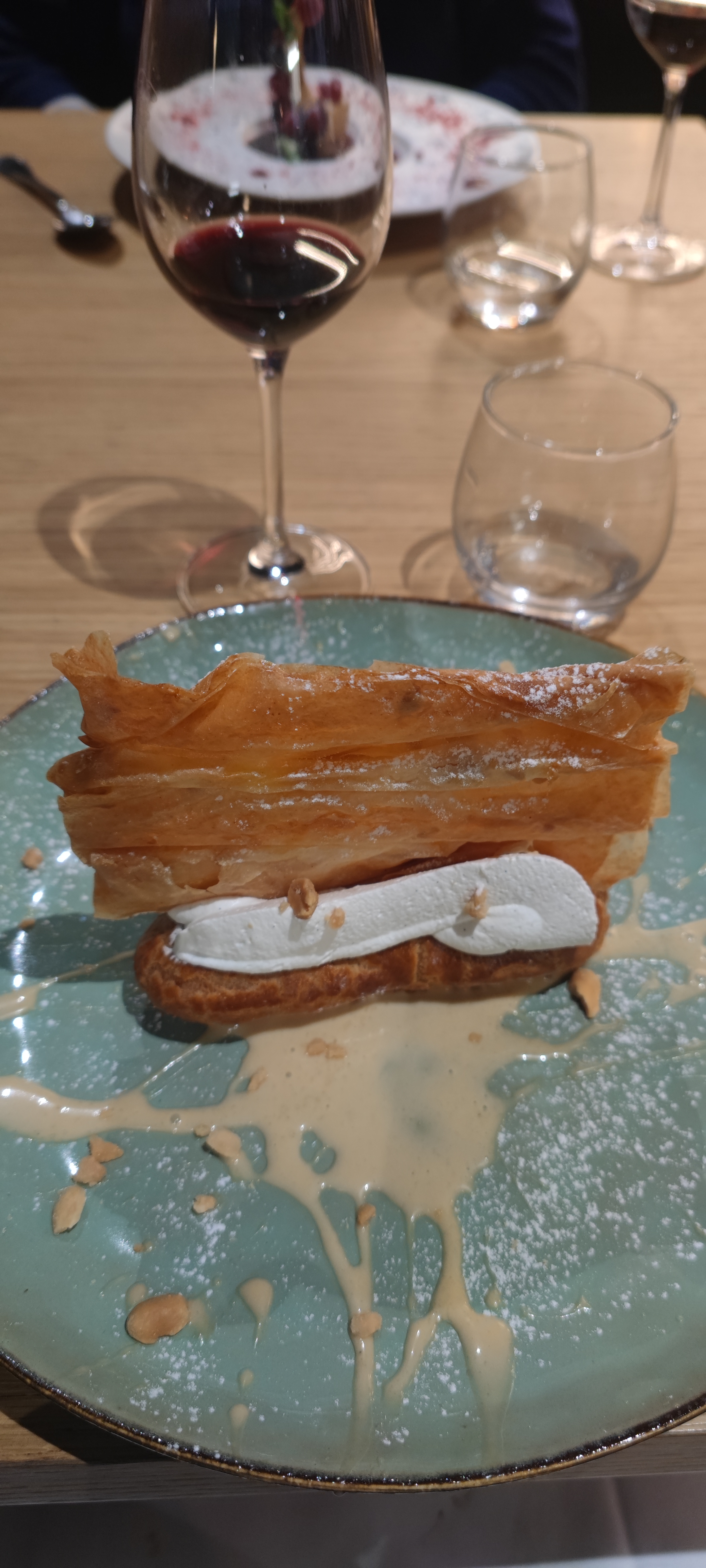 Service impeccable dans le rythme et la transition : observation et communication de l’équipe assurées. Malgré le monde, l’acoustique fut surprenante càd tamisée☺️👌🏼