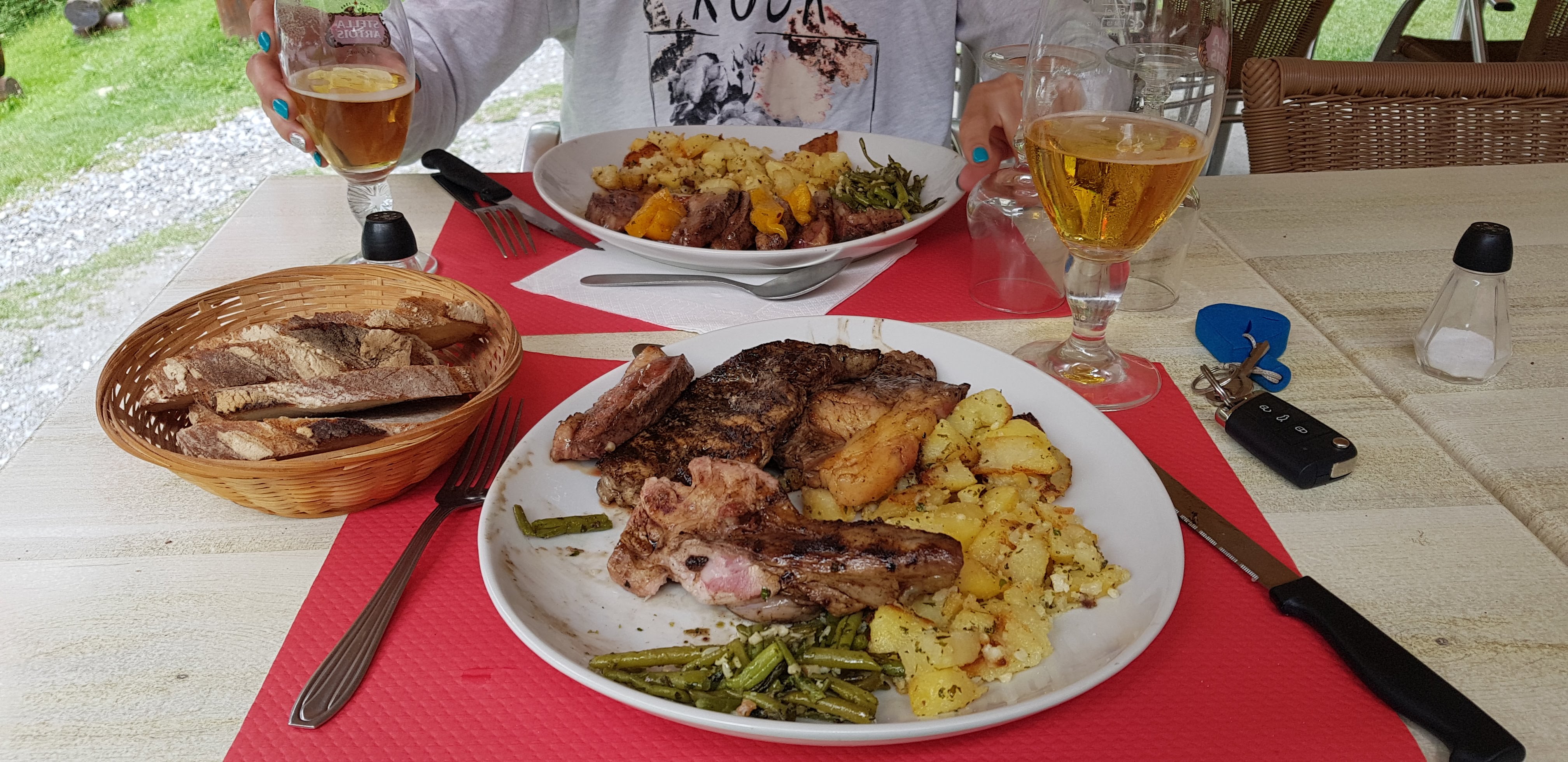 Une découverte fort agréable alors que j'étais sceptique au départ vu l'emplacement un peu touristique... Vous avez 3 menus avec les plats traditionnels maison qu'on retrouve également sur la carte. Nous avons pris les salades de gésiers -top! la spécificité maison pistache copieuse et bien servie, dommage en peu trop de gras...( et les côtelettes d'agneau très bonnes. Les desserts sont faits maison, je recommande les tartes. Service irréprochable !! Personnels jeunes, dynamiques, efficaces et souriants))) Cadre sympathique au pied et vu montage. Nous avons passé très bon moment et on revient.