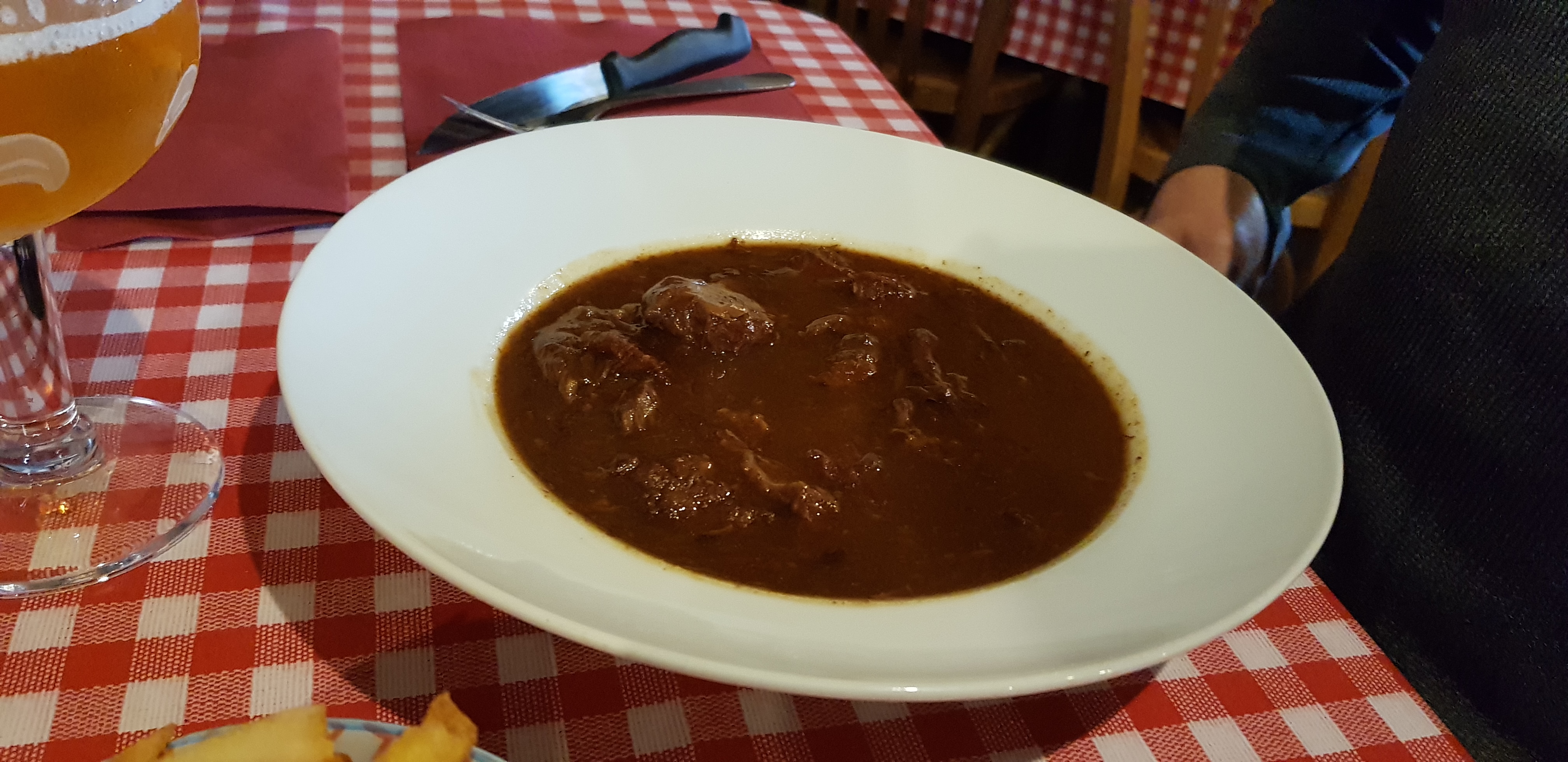 Pour une 1ère fois nous avons été très déçus. La viande de carbonade était dure sur certains morceaux. Nous n'avons pas été les seuls à le faire remarquer au serveur. Nous comprenons que ça peut arriver malheureusement. De plus même pas une corbeille de pain pour accompagner nos plats. Au moment de payer l'addition aucun geste commercial et le patron n'est même plus as venu présenter ses excuses. Il n'y aura pas de seconde fois.