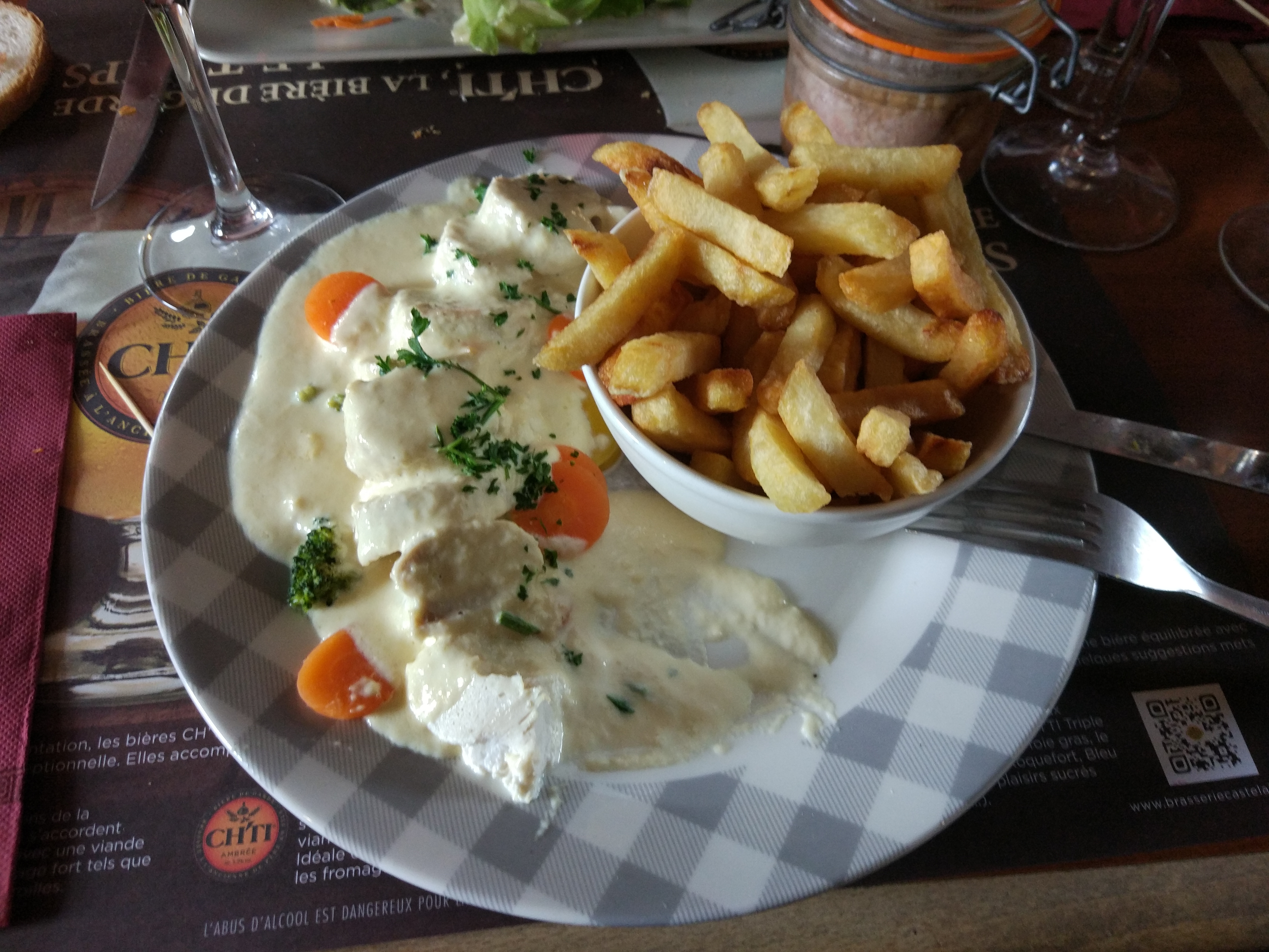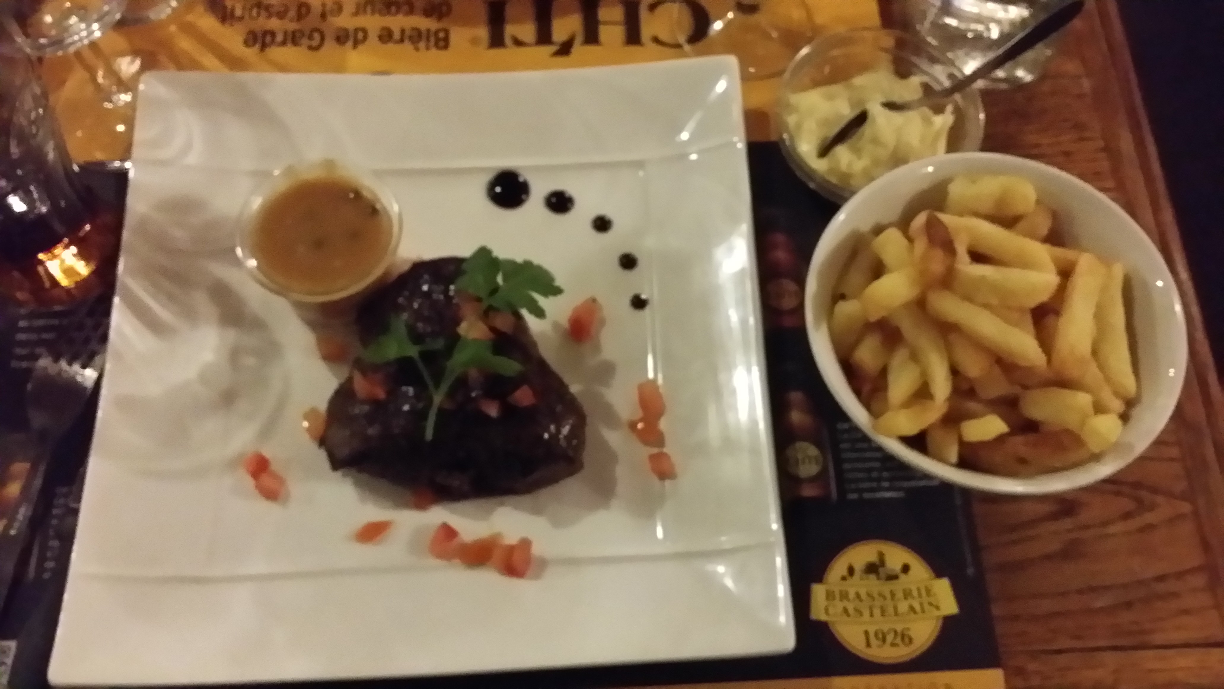 Cadre très agréable; accueil professionnel et courtois. Nous avons pris des plats traditionnels de chnord..poulet au maroilles; frites ..os a moelle . Bon rapport qualité prix..dommage que la présentation des plats manquent un peu d élégance..