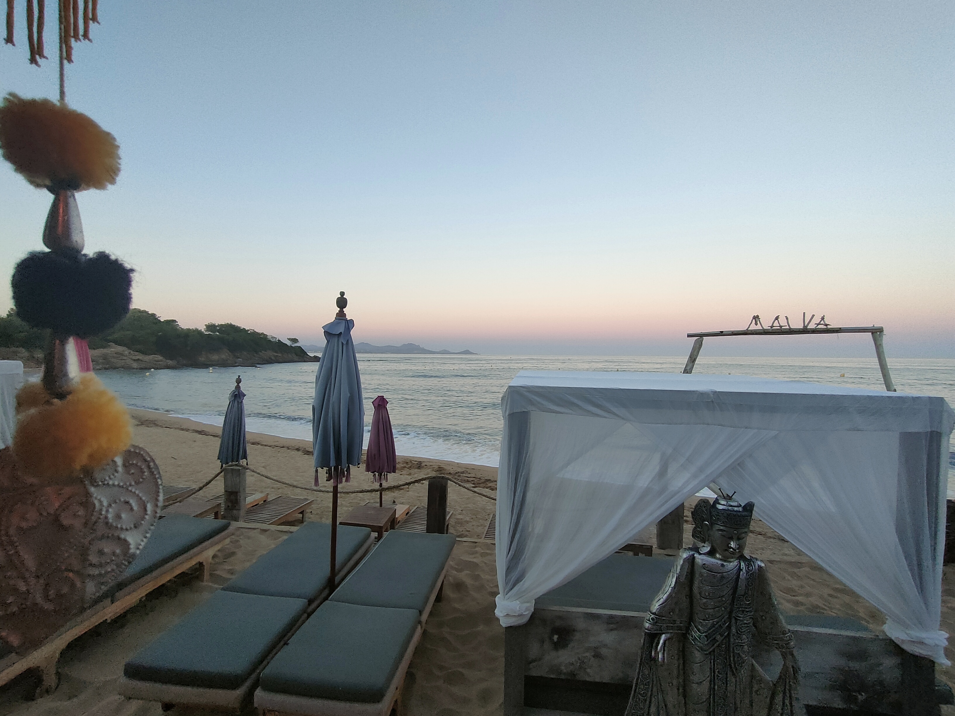 Une bonne plage faite de déco asiatique où se détendre. Les lits à baldaquins son très sympas (il faut les réserver). Le restaurant est bon. De quoi passer un bon moment.