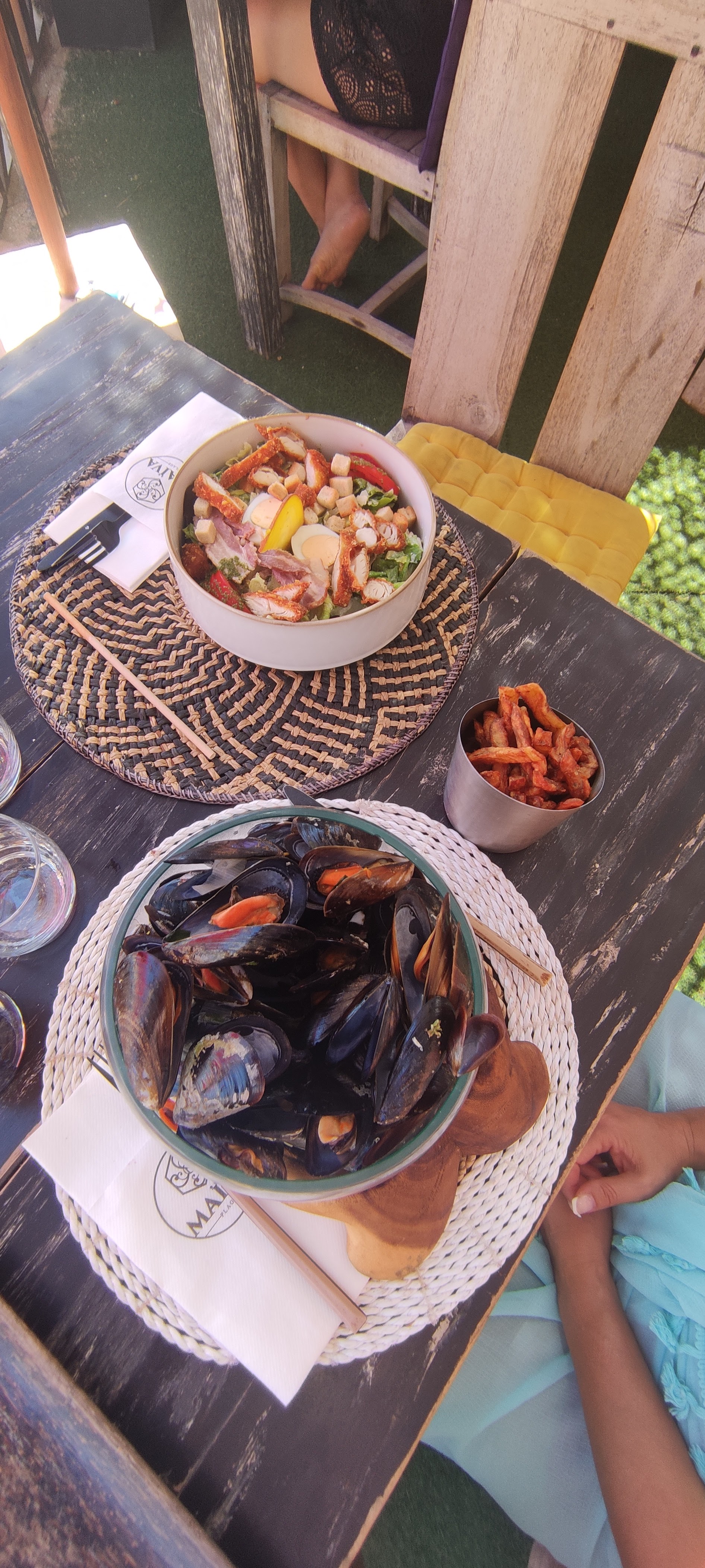 Bon, soyons clairs le cadre est magnifique, inspirations Bali, des niches, des parasols colorés, les pieds dans l'eau mais les moules marinières, c'est pas possible...si ça peut servir le chef...