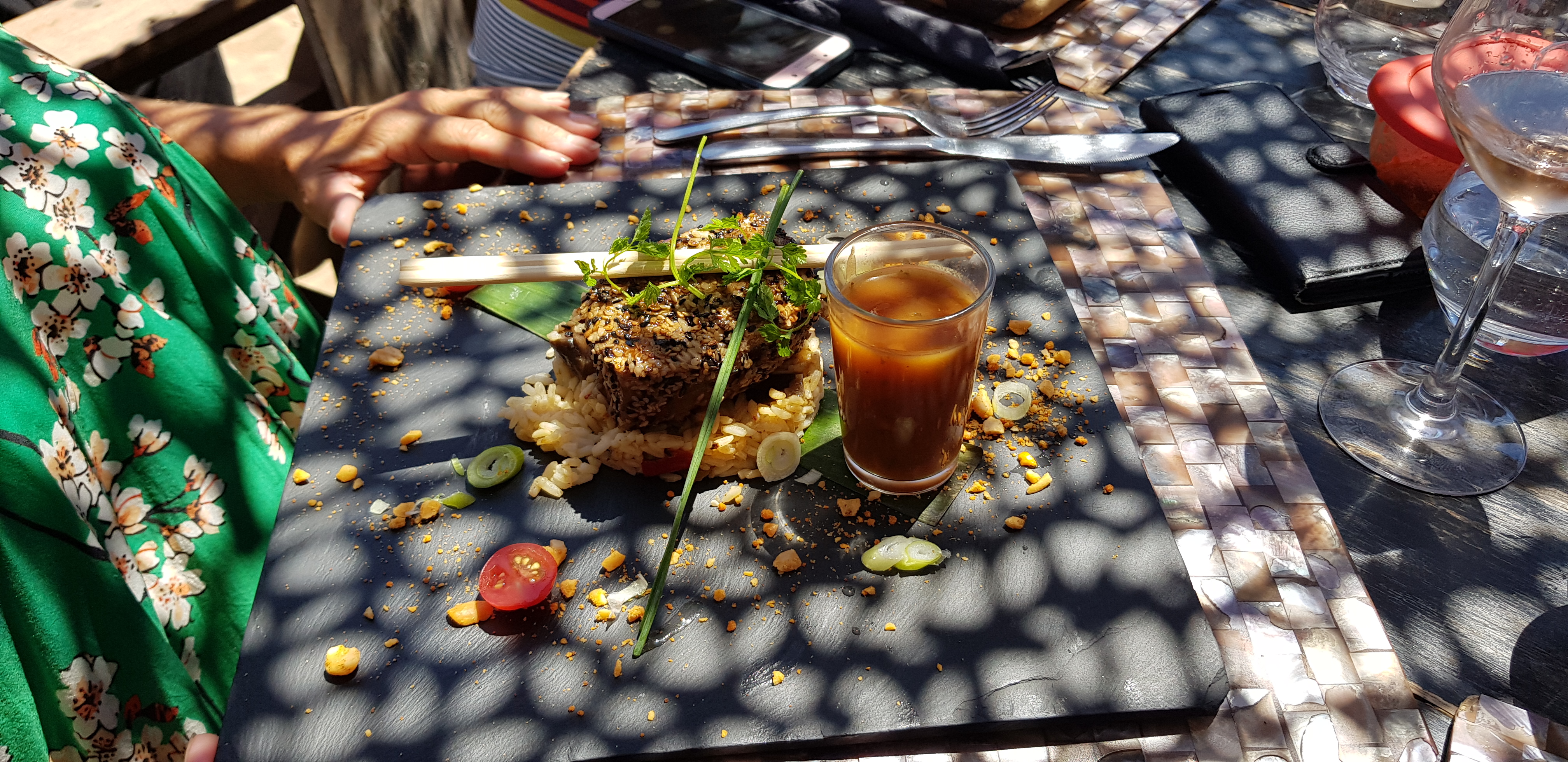 Superbe découverte ! Cuisine originale et savoureuse Le cadre est très agréable, ambiance zen, les pieds dans l’eau, je recommande !