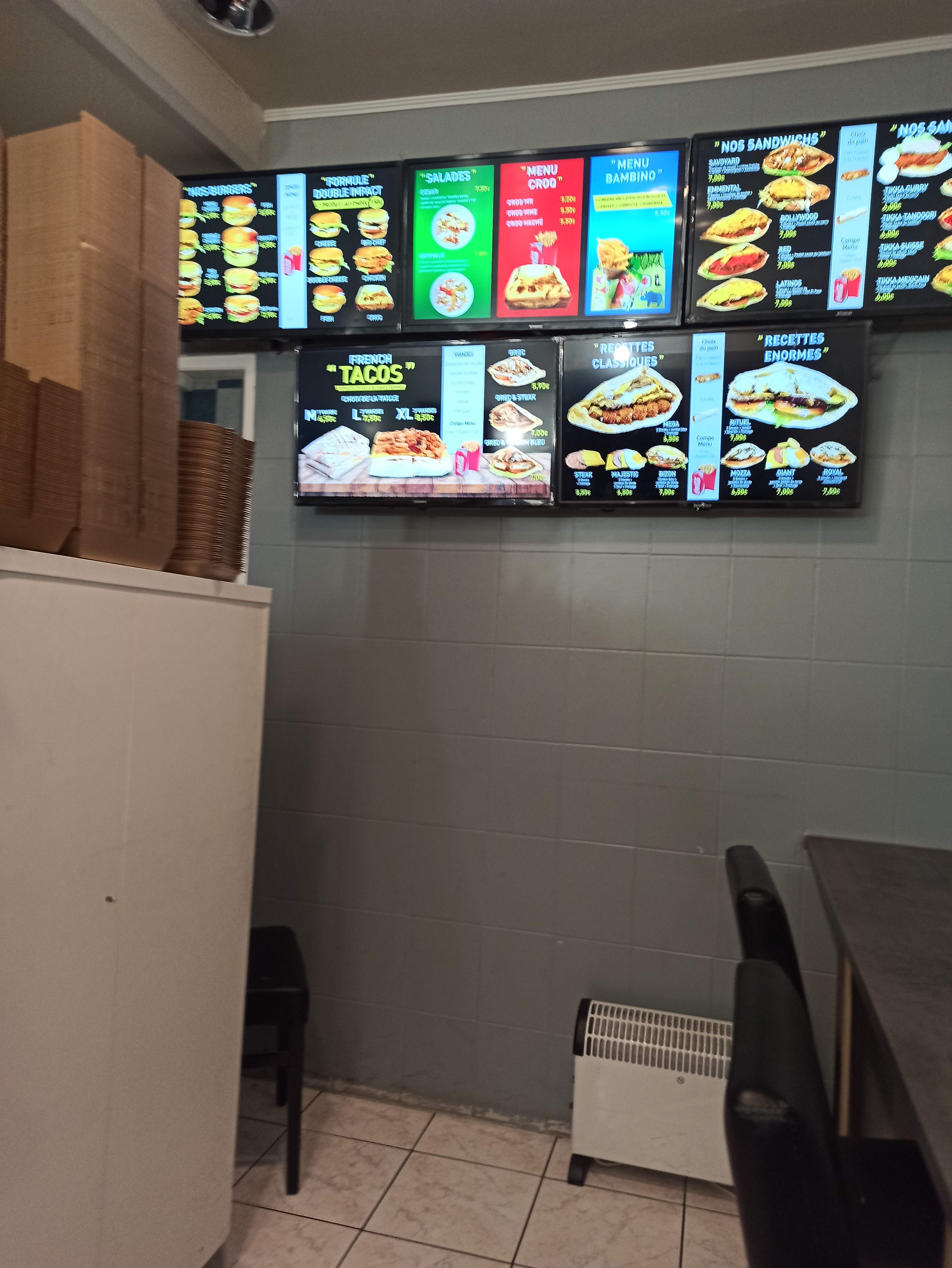 Des prix élevé pour pas grand chose, la table était pleine de moustiques morts à mon arrivée. Des tacos de plusieurs tailles M,L... qui n'ont aucune différence au niveau de la taille ( paye ton tacos ). Une barquette de frite minuscule qui ne calerait pas un enfant de 5 ans pour 2,50. Bref je ne recommande vraiment pas