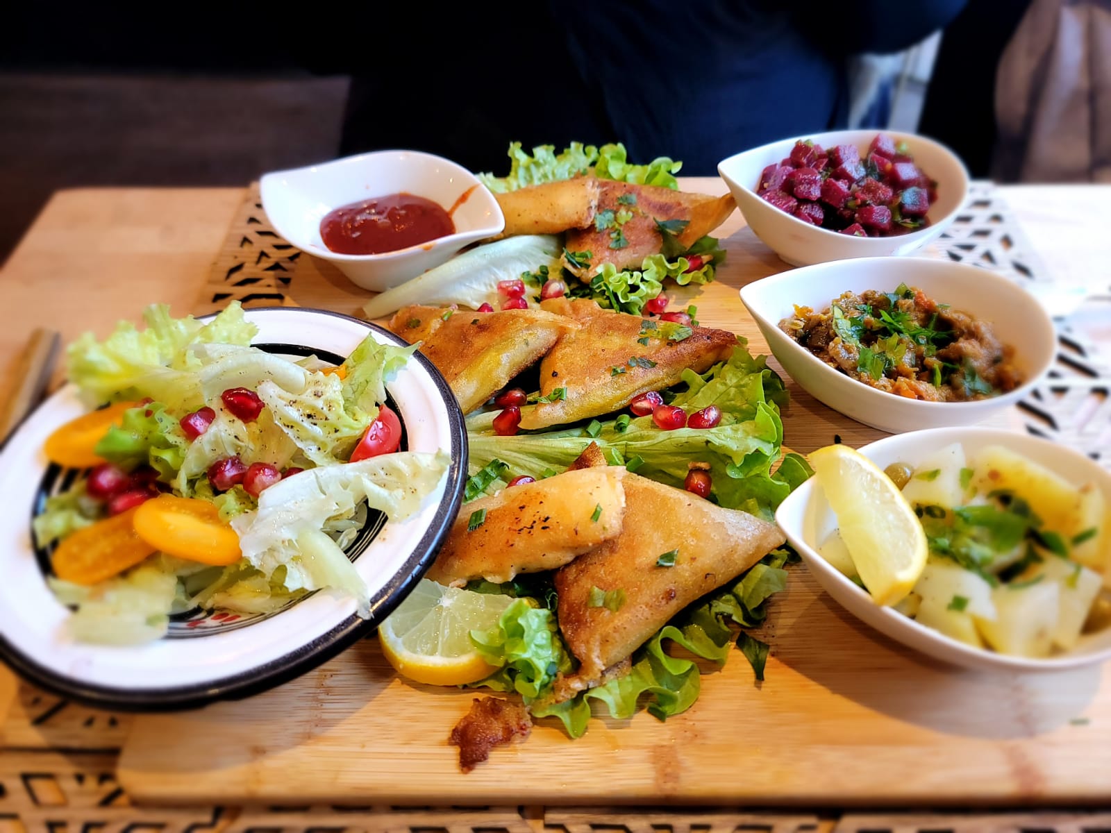 (je crois que ce resto est fermé maintenant) 5 étoiles pour la qualité et le goût si particulier de la cuisine marocaine. Tout en finesse. Une harissa faite maison particulièrement réussie (à consommer avec modération car très relevée mais très bonne). Des boulettes de viande délicieuses dans mon couscous. Petit bémol sur le volume un peu trop élevé de la musique que j'ai baissé discrètement pendant que la cuisinière était en cuisine (complètement séparée de la salle du restaurant). Volume qui a été remonté par elle dès son retour en salle. Dommage. Sinon excellente cuisine à découvrir sans modération.