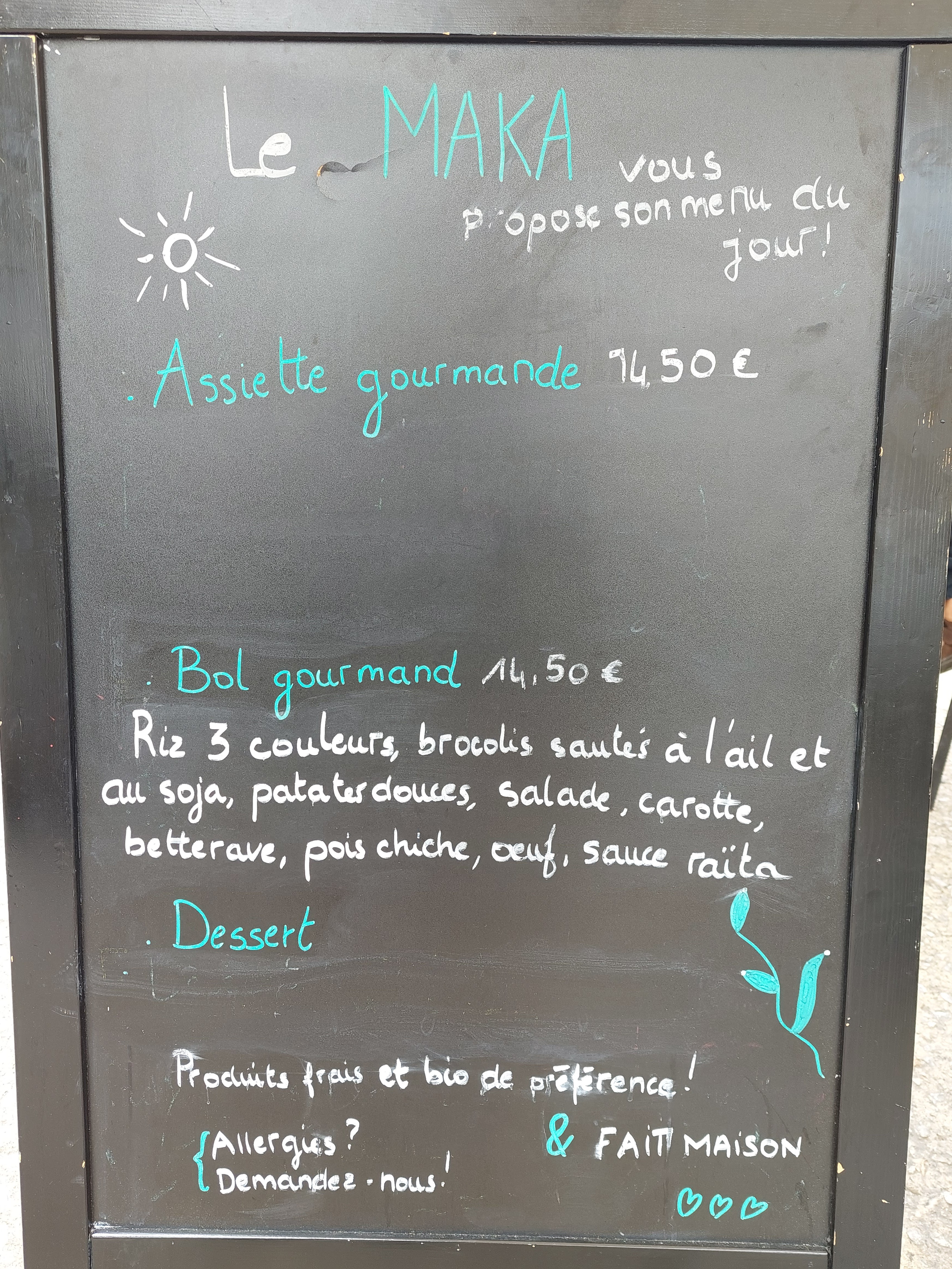 Une cuisine saine et inventive aux origines 100% locales. Un accueil chaleureux, un cadre agréable et une emplacement ouvert sur le marché dont vous retrouverez les produits dans votre assiette, bref tout y est pour répondre aux attentes d'une alimentation moderne et équilibrée. Le tout sur la place centrale d'un des plus beaux villages de France. MaKa plus qu'à y aller au plus vite !