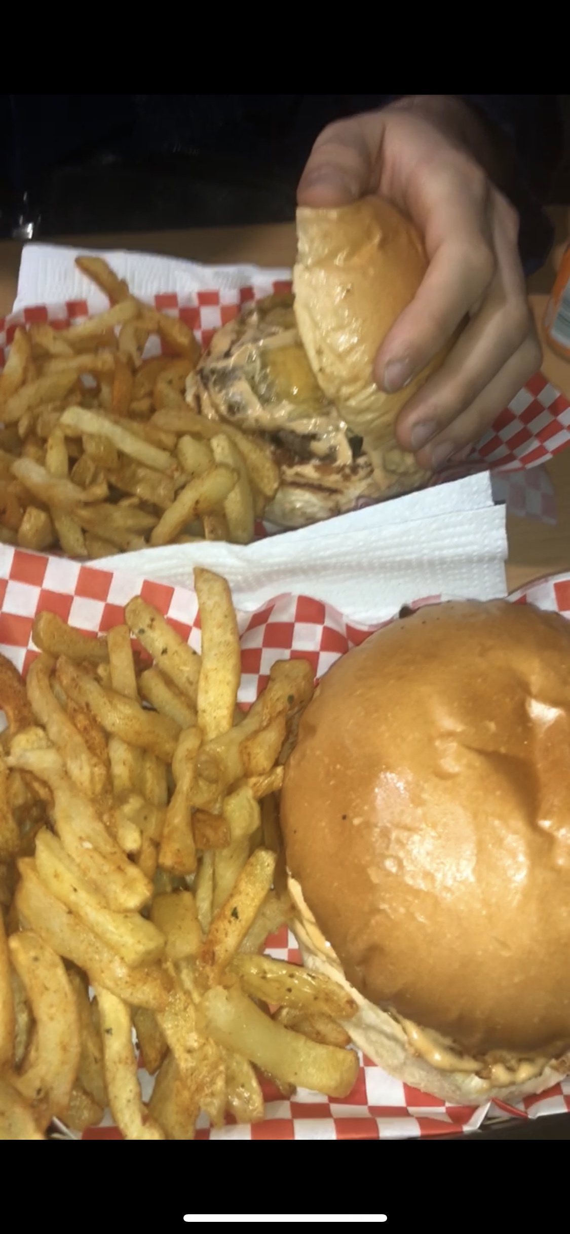 Temps d’attente très long alors que nous étions que deux , la sauce spéciale c’est uniquement de la sauce barbecue qui paraît industriel ( Bbq dans un burger au bacon , bof…) le burger avait un mauvais goût et les frites maisons ne sont pas les memes que sur la photo , malgré sa le personnel avait l’air gentil et accueillant mais c’est pour moi une mauvaise expérience