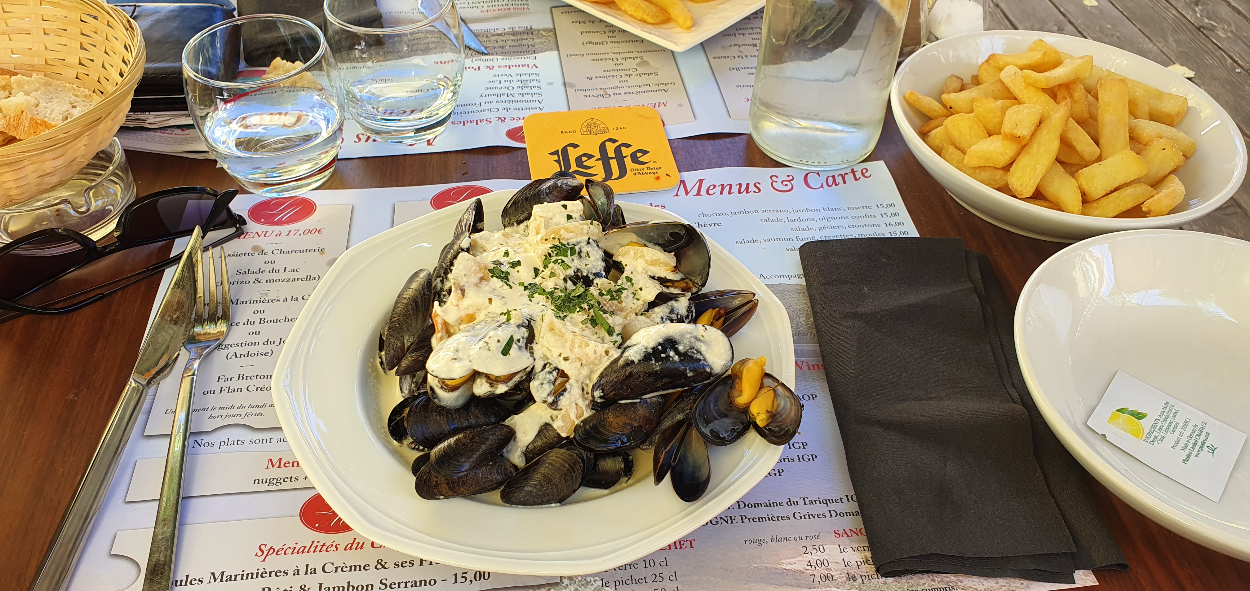 Le personnel est plutôt sympathique même si pas frais sur lui. La quantité de moules dans la casserole est aléatoire et plutôt moins que plus. Les frites en accompagnement avaient déjà été passées à la friteuse a mid et recuite le soir donc pas fraîche et trop cuite. La seule touche positive c’est la terrasse ombragée et les glaces. Évitez si possible.