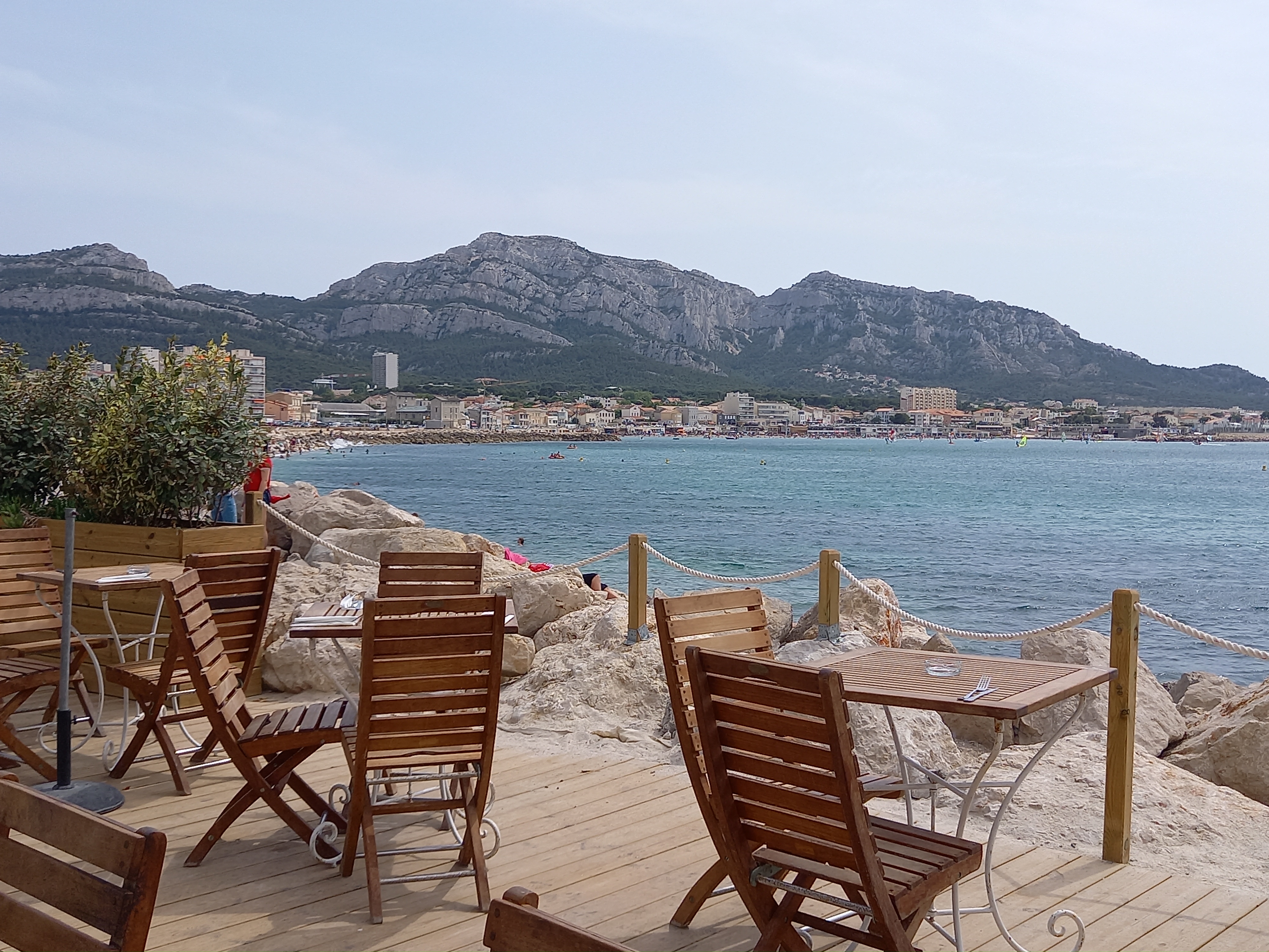 Magnifique endroit cette plage est trop cool en comparaison des autres plages de Marseille Le personnel est gentil et aux petits soins La restauration était bonne et fraîche Petites brochettes grillées de poulet , entrecôtes, salades, pain bagnat…. Que du plaisir et surtout on n’était pas malade après ! Les toilettes sont propres et nettoyées tout le long de la journée On y retournera très vite