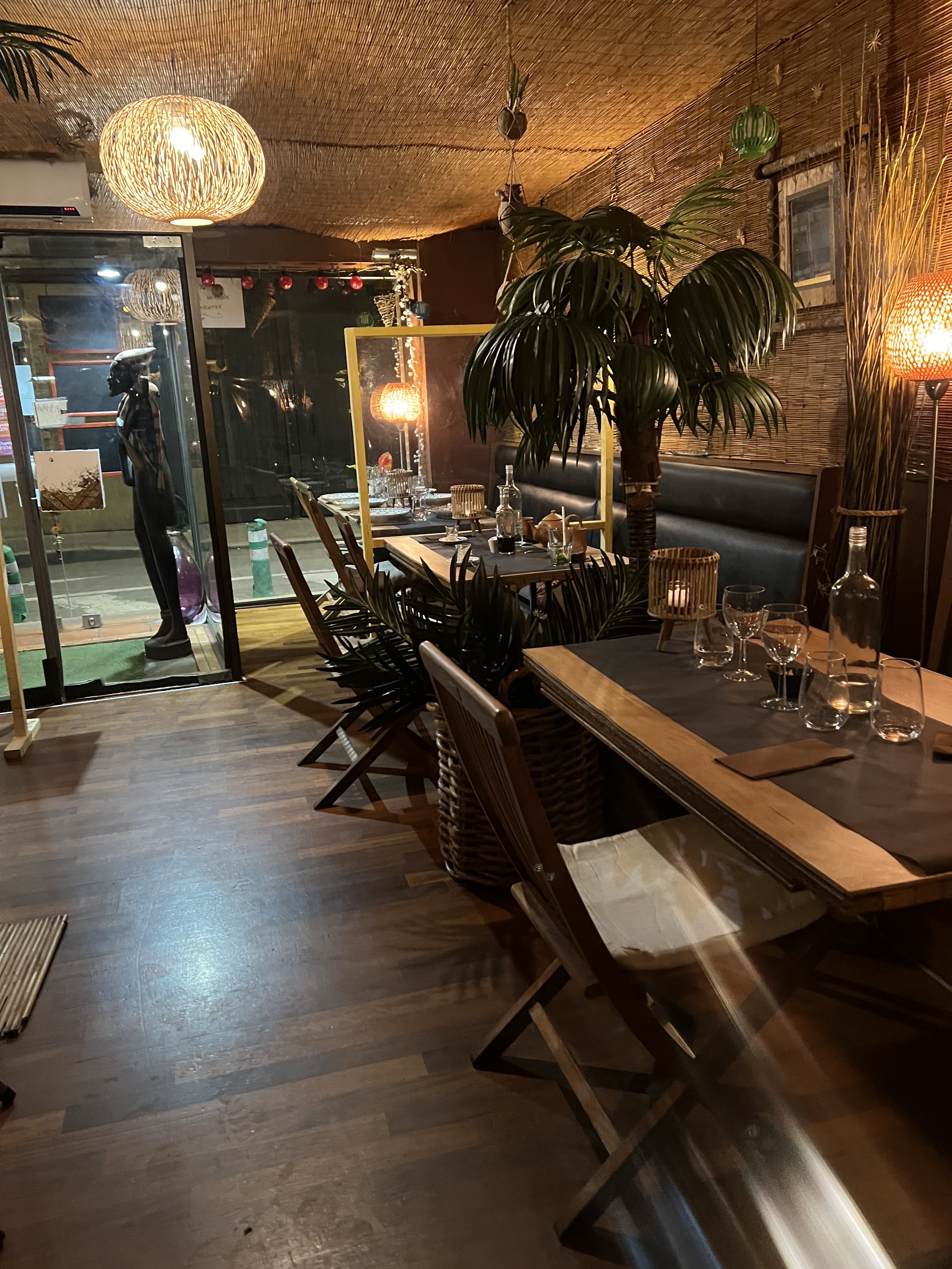 L'endroit est très agréable, l'ambiance tamisée et la décoration tropicale rendent le lieu très intimiste. Le repas était excellent de l'entrée au dessert. Un très bon moment ! Chaudement recommandé.