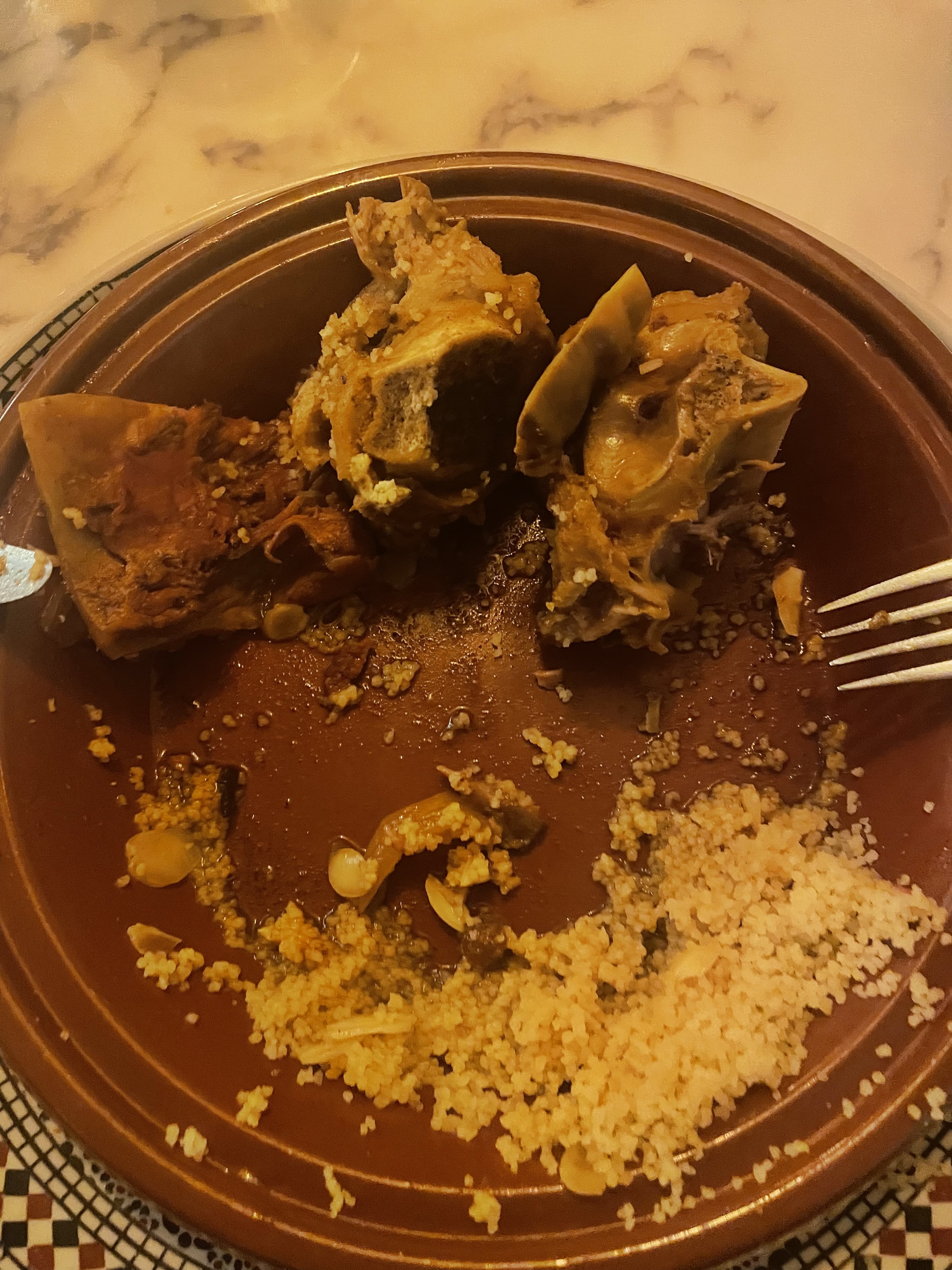 La déco est vraiment superbe, faite avec goût et sobriété, on s'y sent tout de suite bien. Jusqu'à ce que le serveur avec son sourire faux et ses blagues à deux balles vienne prendre la commande. Le couscous royal est impressionnant avec tous ces petits plats. Par contre la viande est dure et les merguez pas bonnes. Ça sent la viande achetée au rabais !