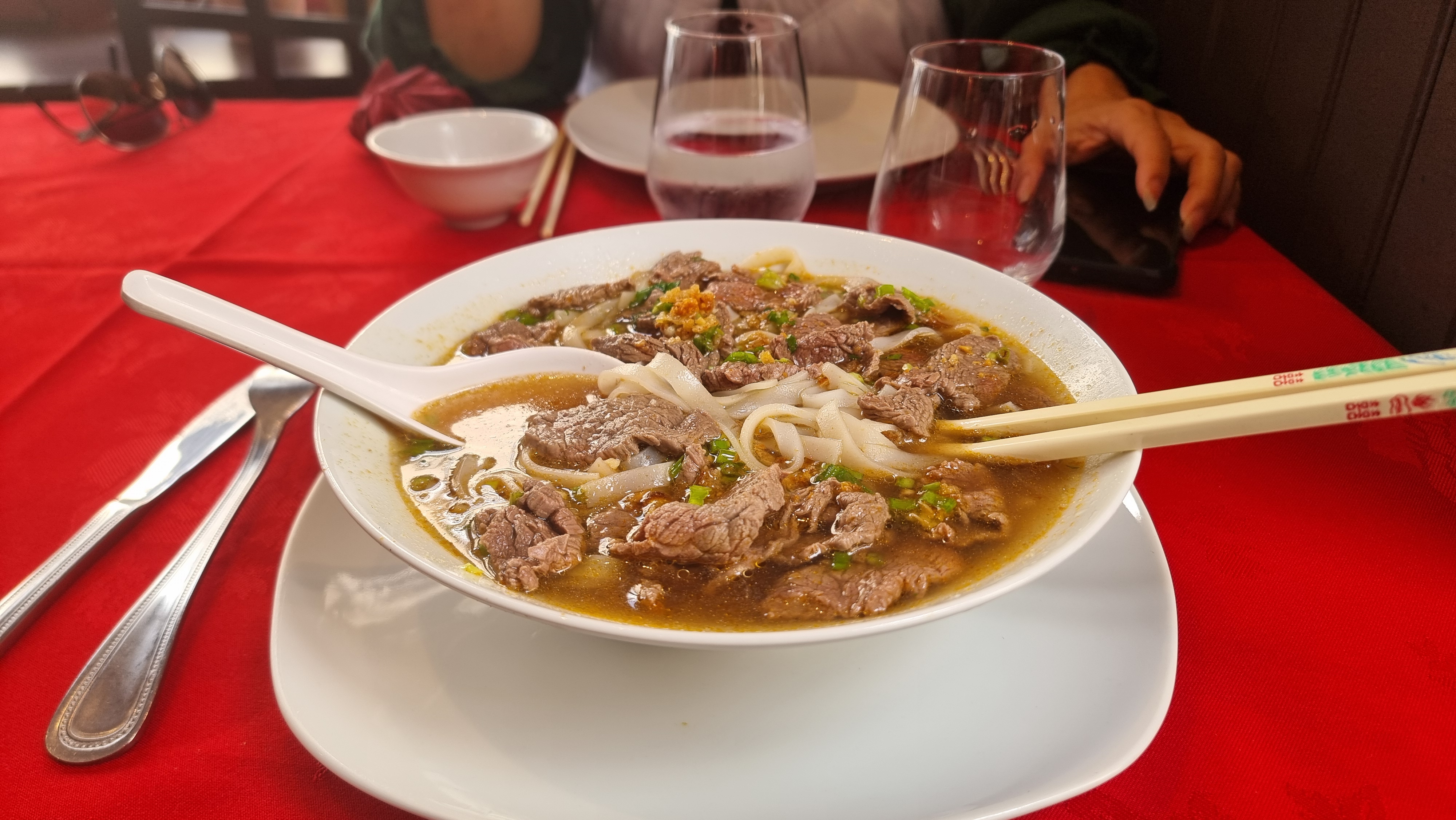 Je n’ai pas retrouvé les vraies saveurs de l’Asie. Mon pho était seulement constitué de bouillon, pâte de riz et viande de bœuf. La soupe était bonne mais n’avait pas le vrai goût d’un pho et manquait d’accompagnement. Le service est fait avec le sourire mais reste très moyen.. L’ambiance est vieillotte. La nourriture reste bonne mais je ne recommande pas pour les vrais amateurs de plats asiatiques.