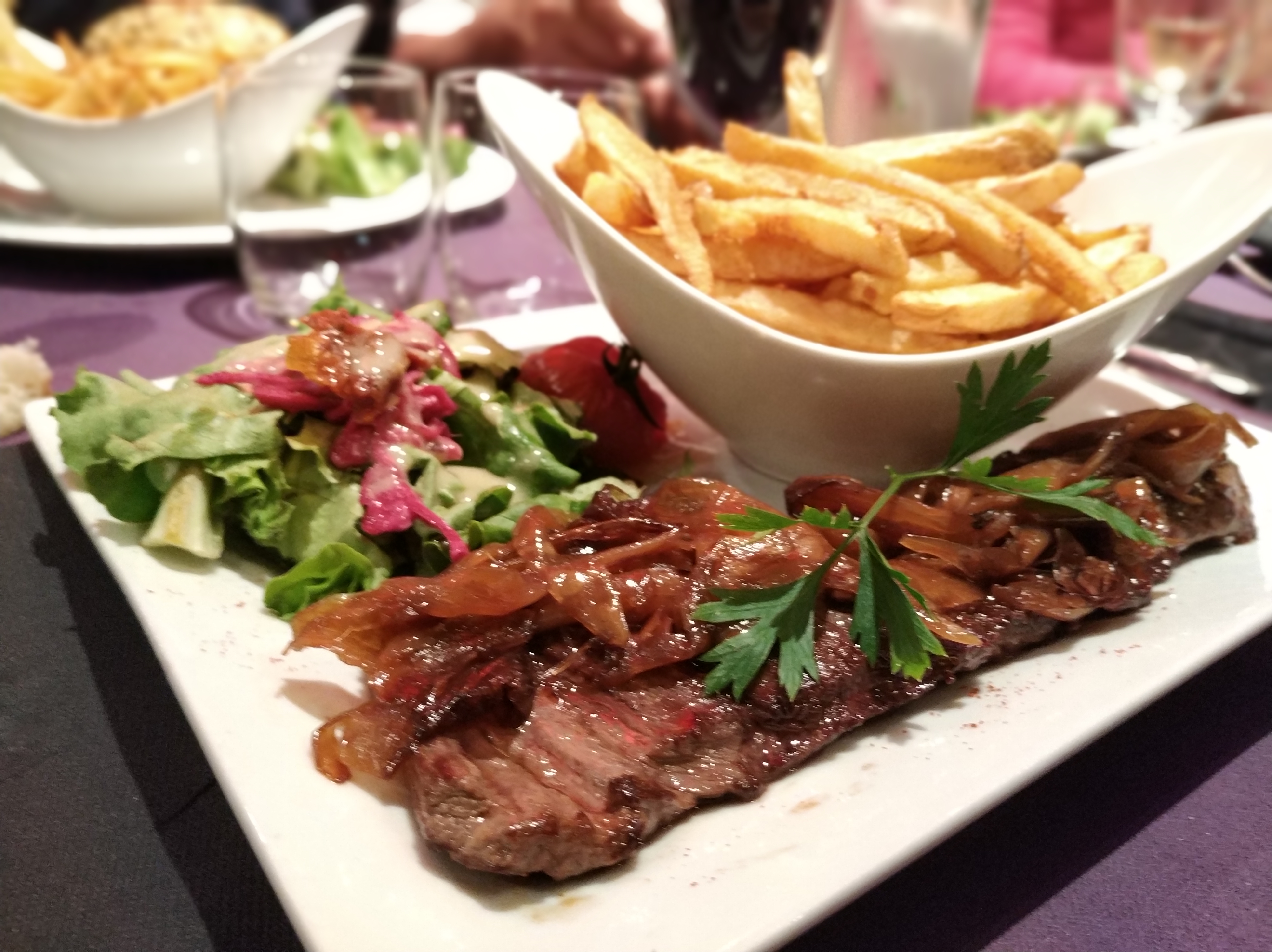 Bon rapport qualité prix. Hampe de bœuf très tendre. Petit bémol pour la sauce au poivre, qui n a pas été à la hauteur de mes attentes. l ambiance y est très agréable, la serveuse très aimable. On y passe un bon moment