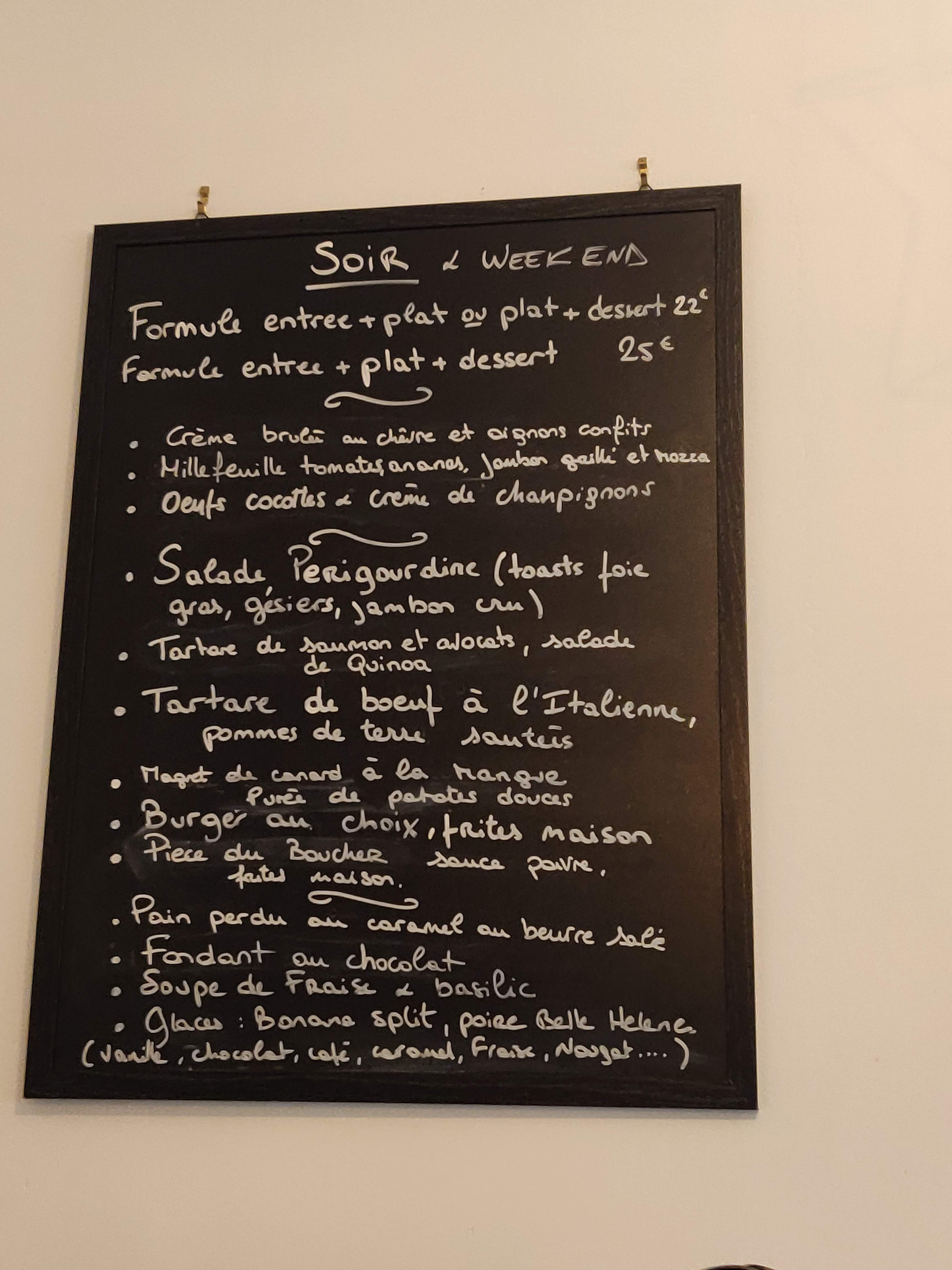 Accueil chaleureux, carte intéressante, le menu n'est pas trop chargé avec des recettes très étudiées. Au dessert le moelleux au chocolat est trop cuit. Néanmoins, un moins d'où les 3 étoiles le temps d'attente entre l'entrée et le plat fut de 1h00. La patronne étant seule aux fourneaux cela s'explique. Si vous travaillez ou êtes pressés passez votre chemin..