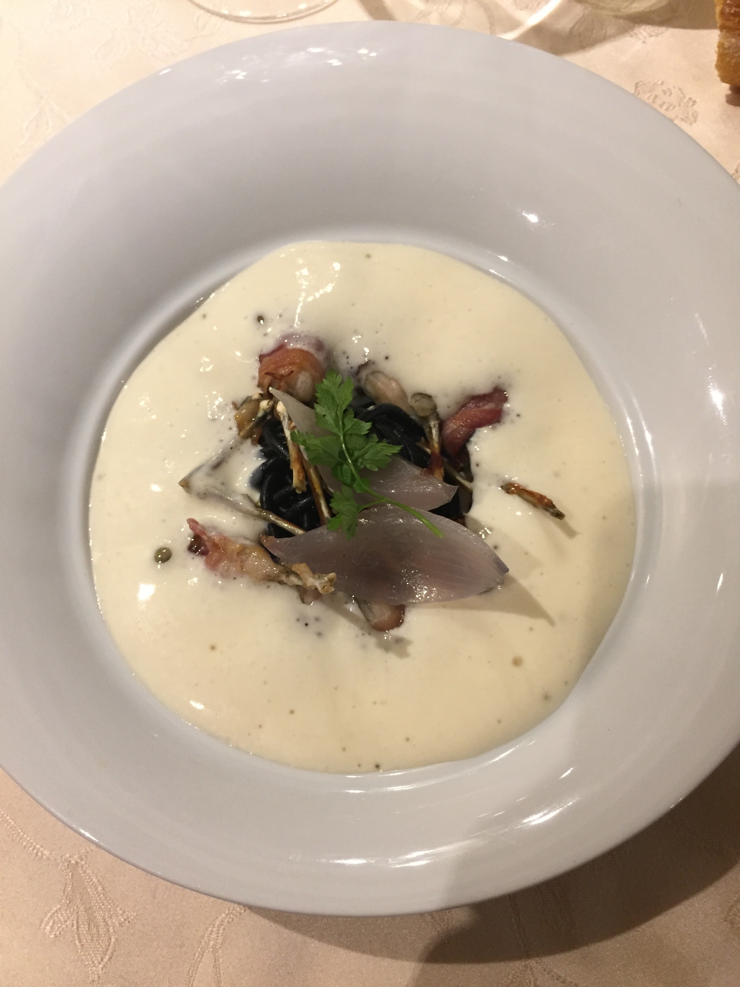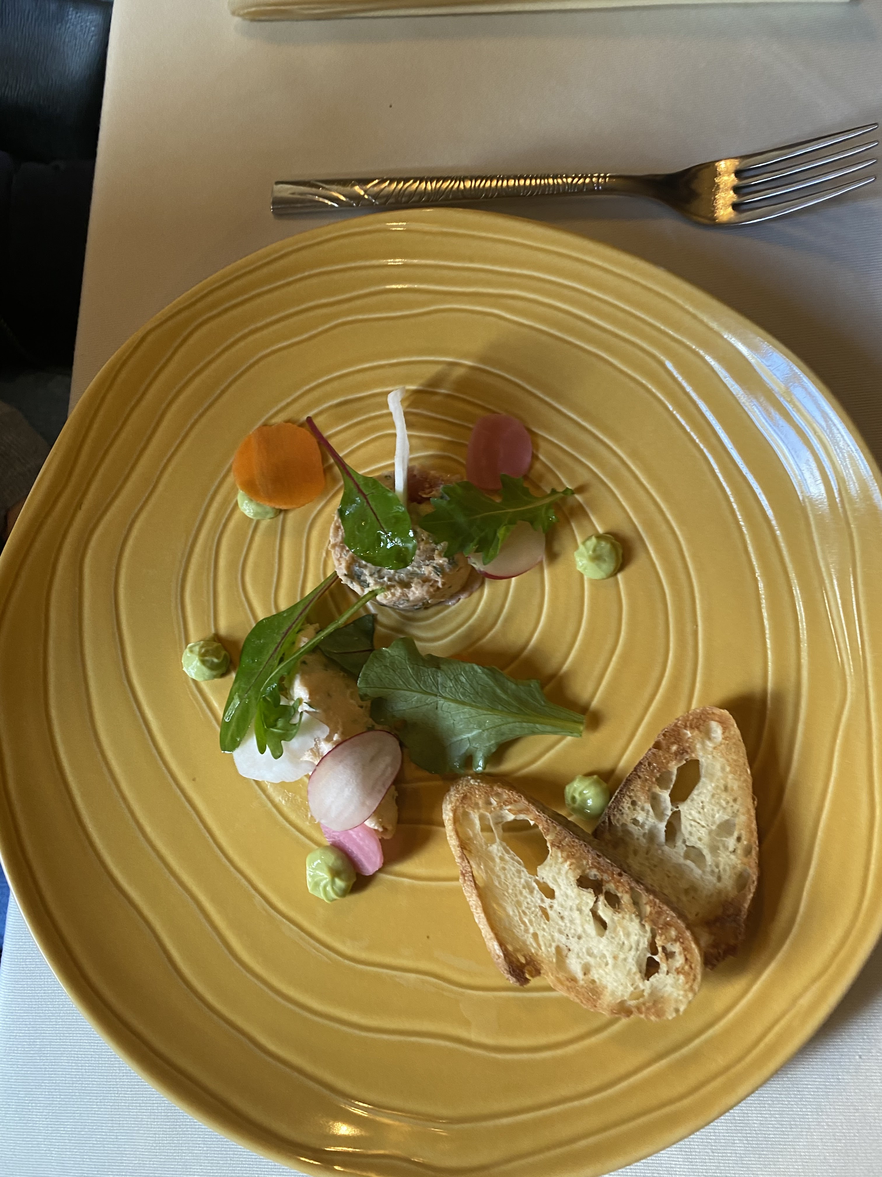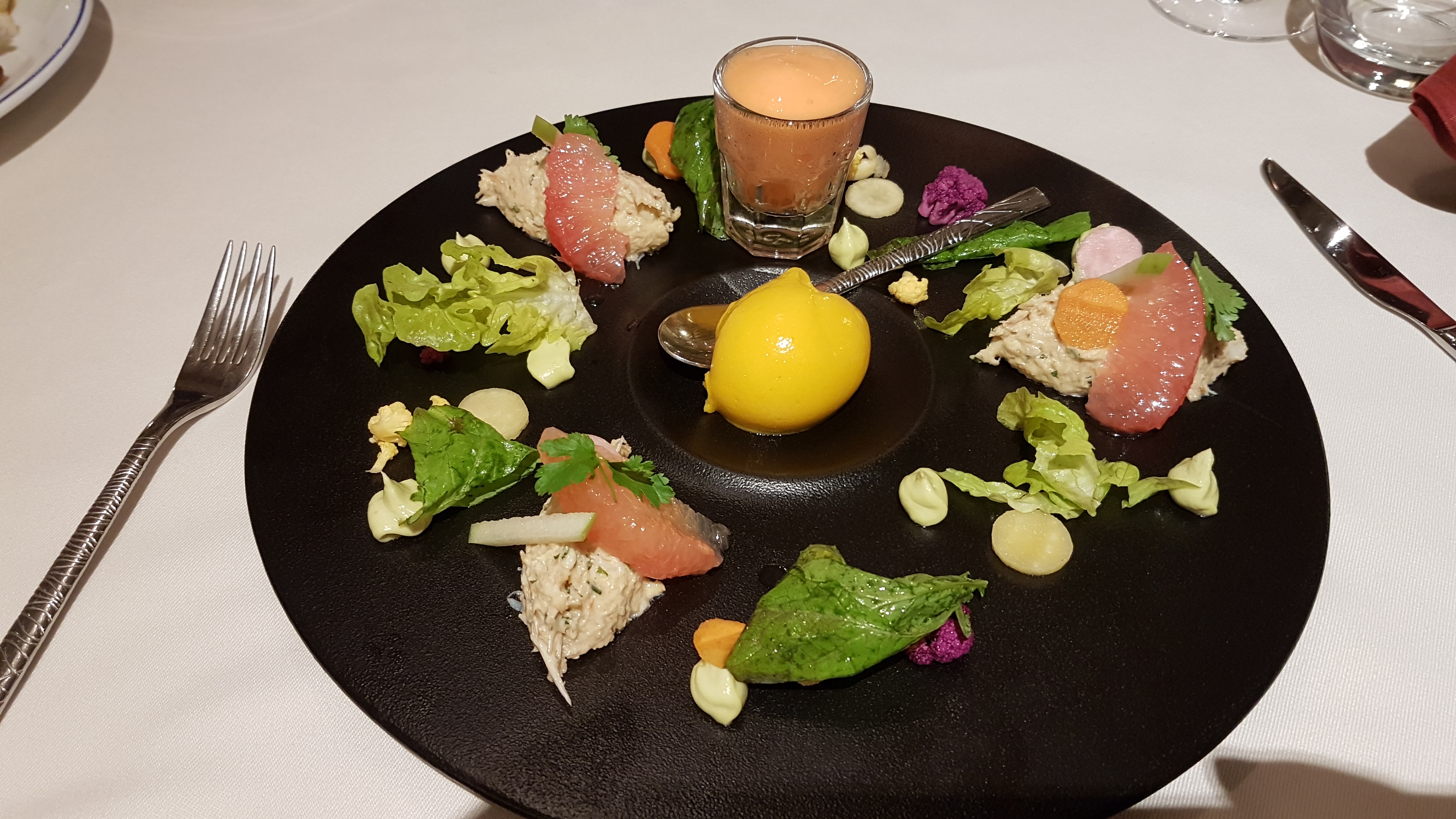 Excellent restaurant cadre service et menus raffinés gravlax extra cuisses de grenouilles exceptionnelles dessert fin structuré et visuel superbe le tout servi dans des assiettes originales😁