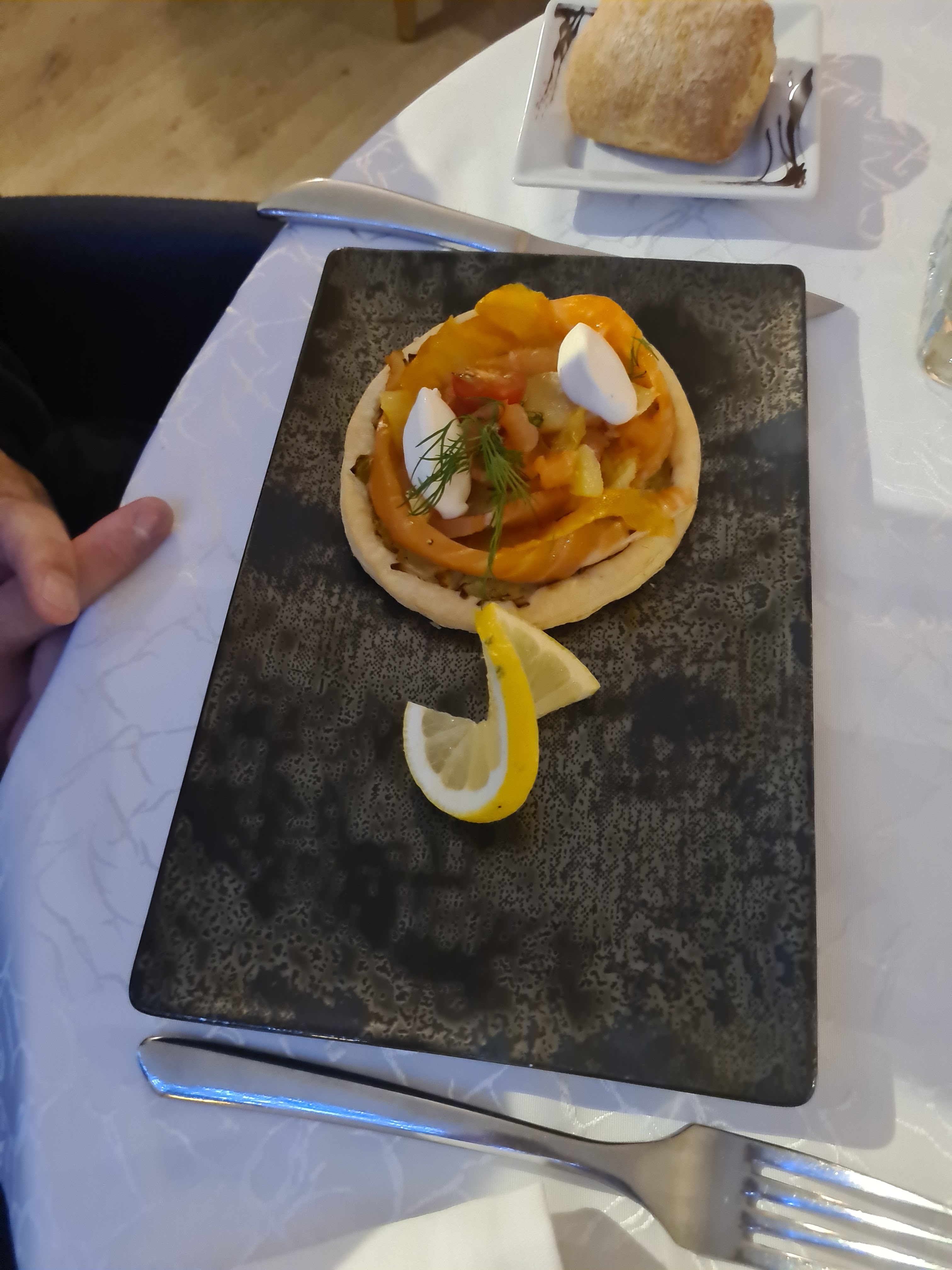Repas excellent !! De l'entrée jusqu'au dessert rien à redire. Belle présentation des plats, très bonne cuisine. La déco est sobre mais classe. Les serveurs sympathiques. A refaire très vite 😉
