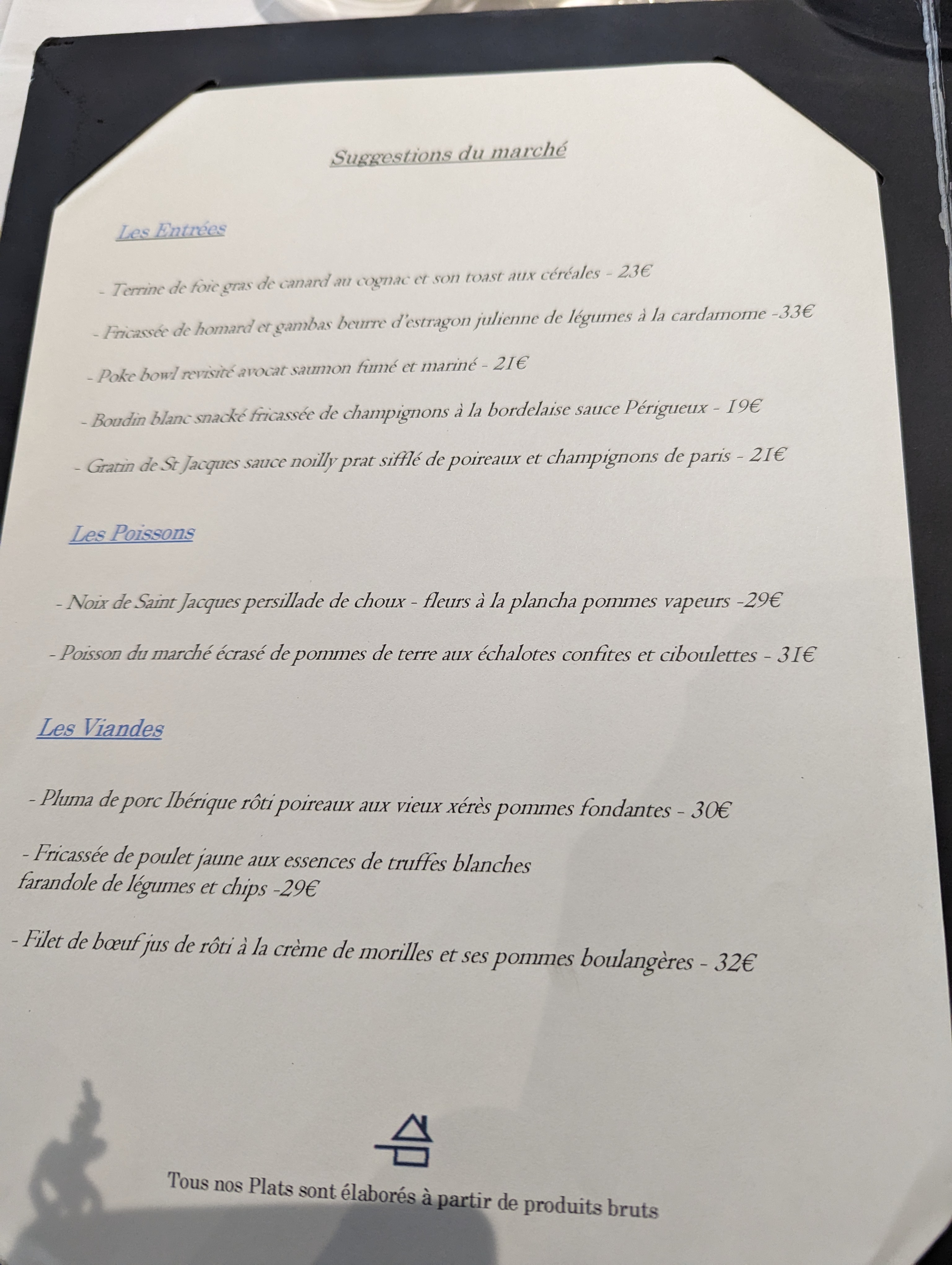 La cuisine est bonne, 39€ pour entrée plat fromage et dessert. Bien servi. J'ai adorée la salade verte et l'assaisonnement de celle ci, cela faisait une éternité que je n'avais pas eu de plaisir à manger de la salade dans un restaurant. Cuisson parfaite des Saint Jacques et très bon fois gras. Je recommande pour un gourmet petit budget.