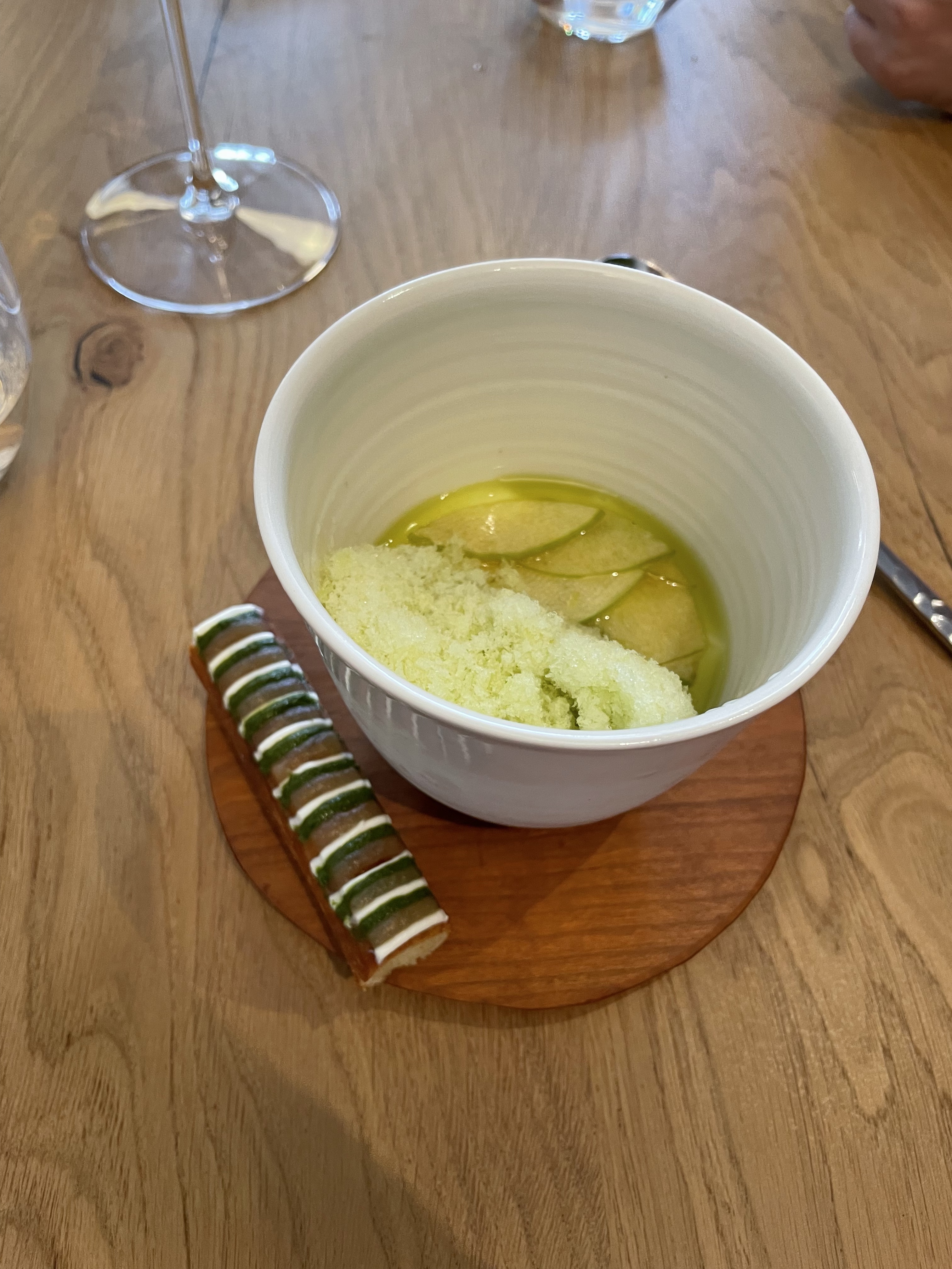 Tout est fait dans ce lieu pour que le temps se suspende et que vous passiez juste un moment délicieux. Du service discret et bienveillant, du sommelier passionné qui vous invite à le suivre hors des sentiers convenus et bien sûr des saveurs inoubliables des plats préparés par Mathieu Perou, un chef à la cuisine d une grande délicatesse préparée avec des produits locaux merveilleusement mis en valeur avec beaucoup de technicité et une grande sensibilité . Je vous recommande vivement ce restaurant qui est plus qu'un restaurant c'est un lieu de bien- être .