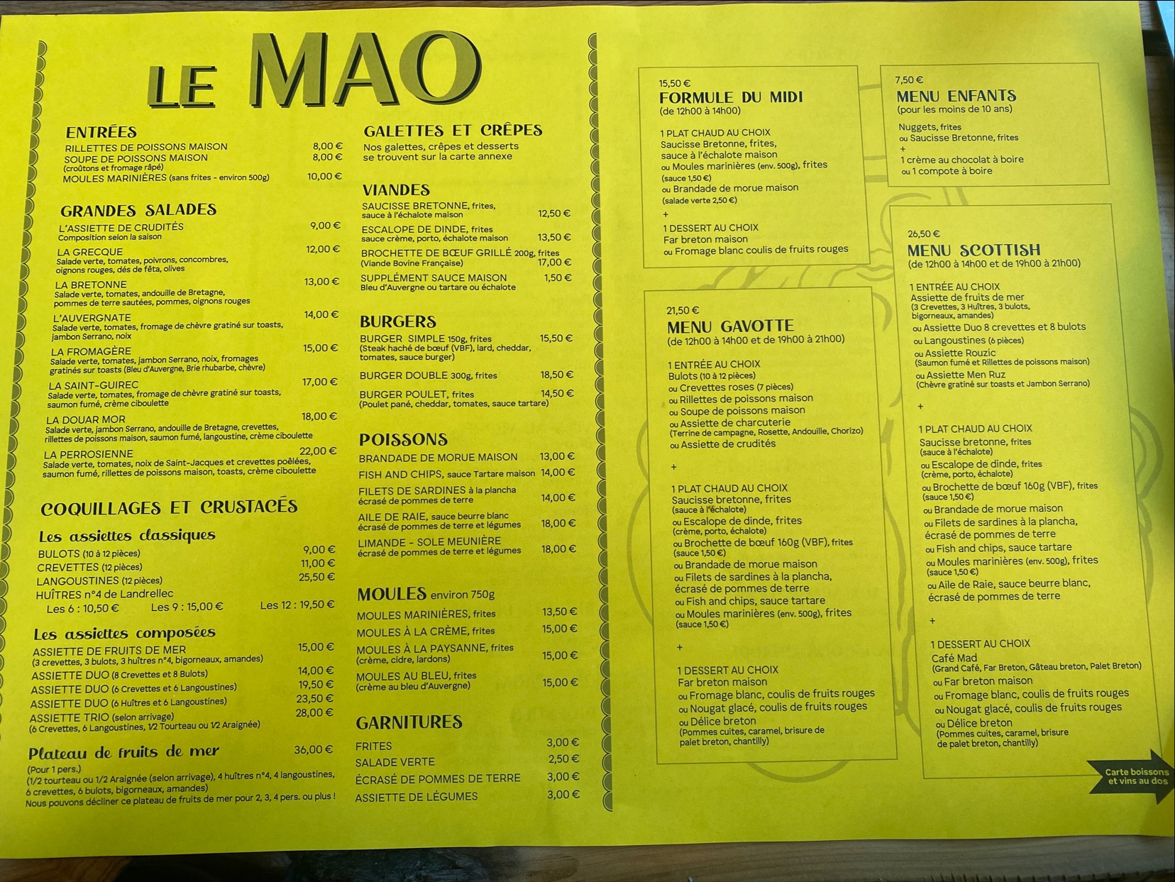 Le MAO excellente adresse, service sympathique, cuisine super Menu Scottish.