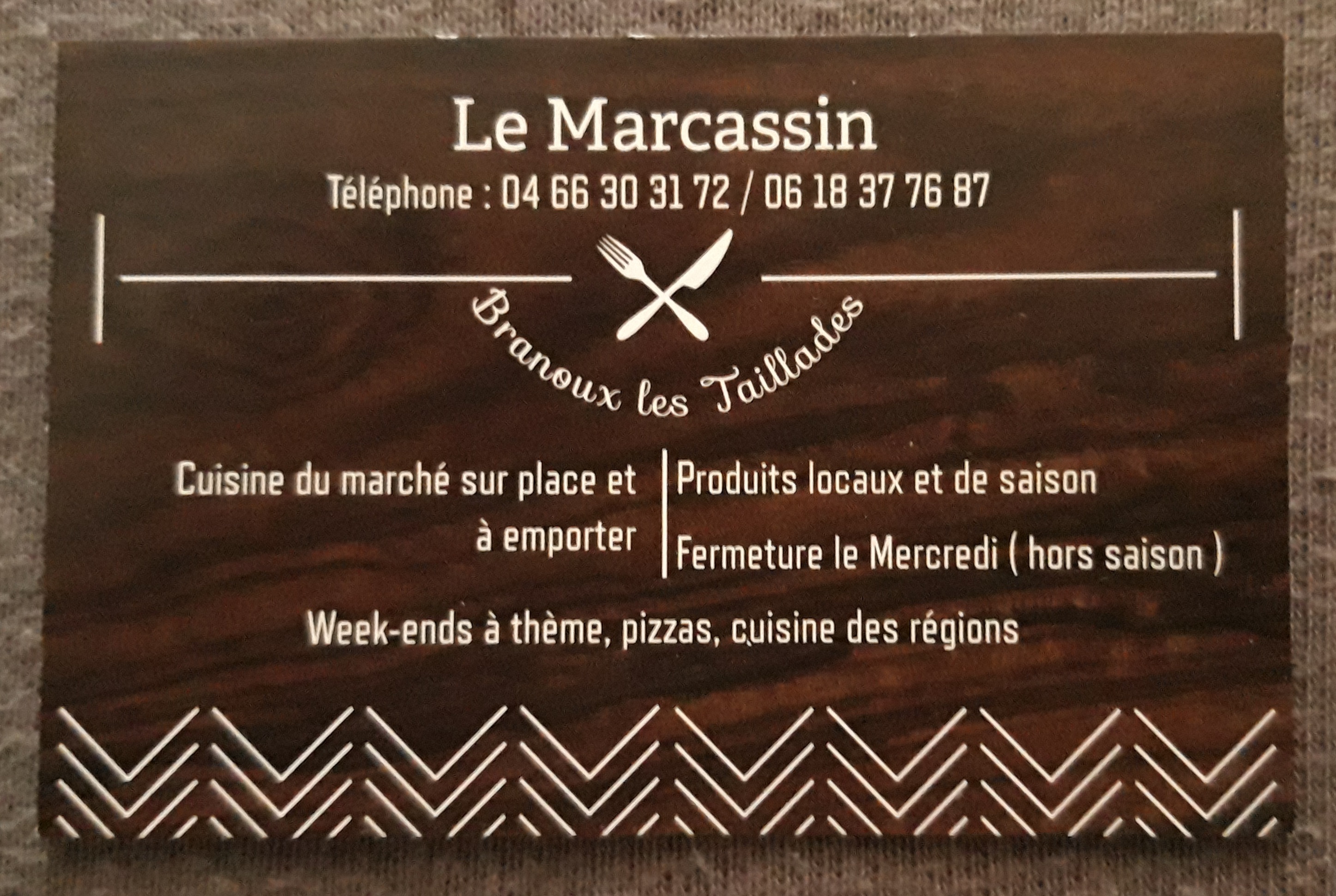 Une belle découverte à Branoux les taillades (30), le restaurant Le marcassin : tout est fait maison avec des produits locaux, une belle terrasse sur la petite place calme. La patronne qui assure le service est à l'écoute des clients et sait les conseiller au mieux. Nous avons passé une excellente soirée, en un mot je recommande vivement.