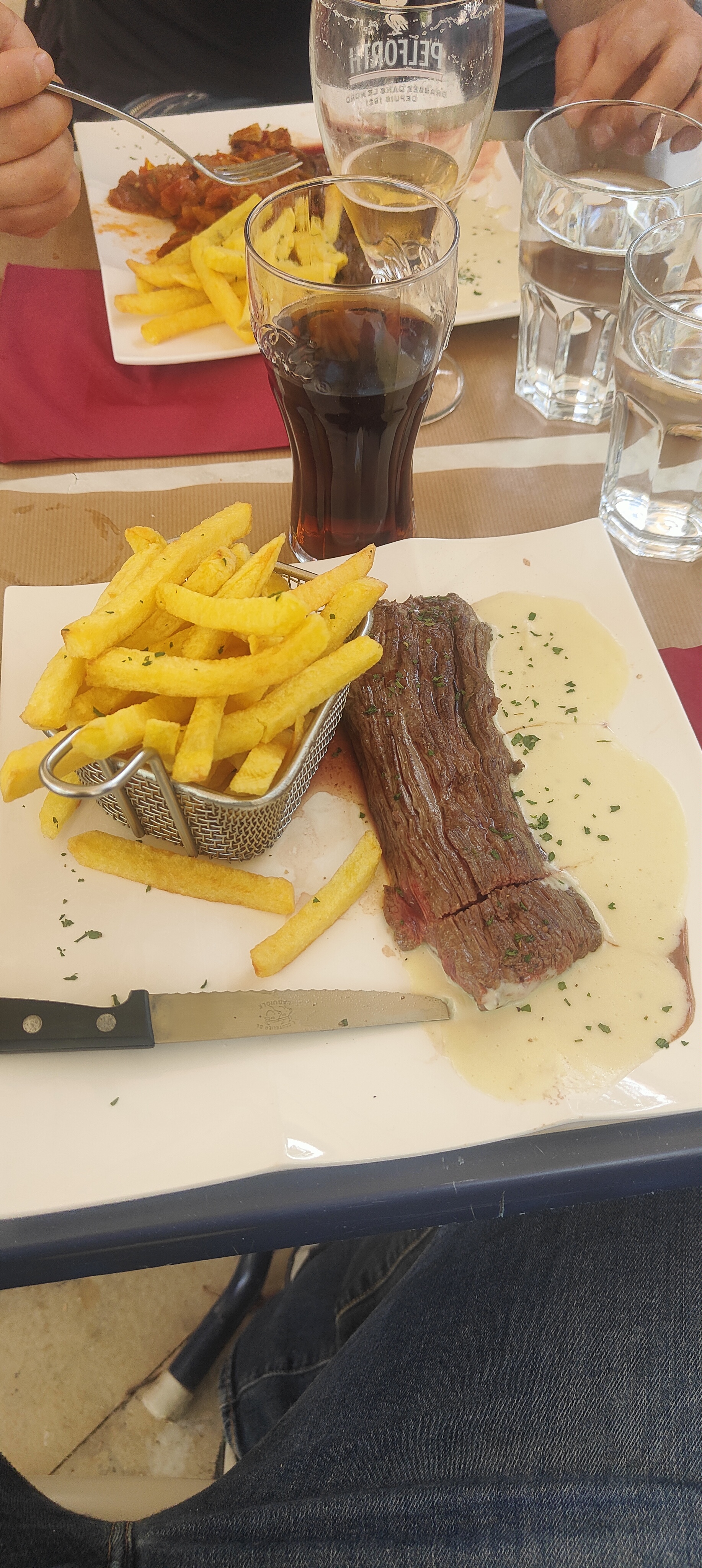 Nous avons découvert cette excellente adresse lors de notre voyage aller (le 22 avril) et nous nous sommes empressés de réserver une table pour le voyage retour (samedi 27 avril) attention le samedi, il est conseillé de réserver, comme dans tous les bons restos, le bouche-à-oreille est la meilleure solution marketing 😊. Cette fois, nous avons dégusté la pièce du boucher, nous n'avons pas été déçu, tendre, cuisson respectée, et servi généreusement et, le tout, à prix plus que raisonnable, avec en prime, comme d'habitude la bonne humeur et bonhommie de la patronne Laurence. Pour la petite histoire, même en plein service elle trouve le temps de prendre en photo ses clients. Nous reviendrons dès que possible.