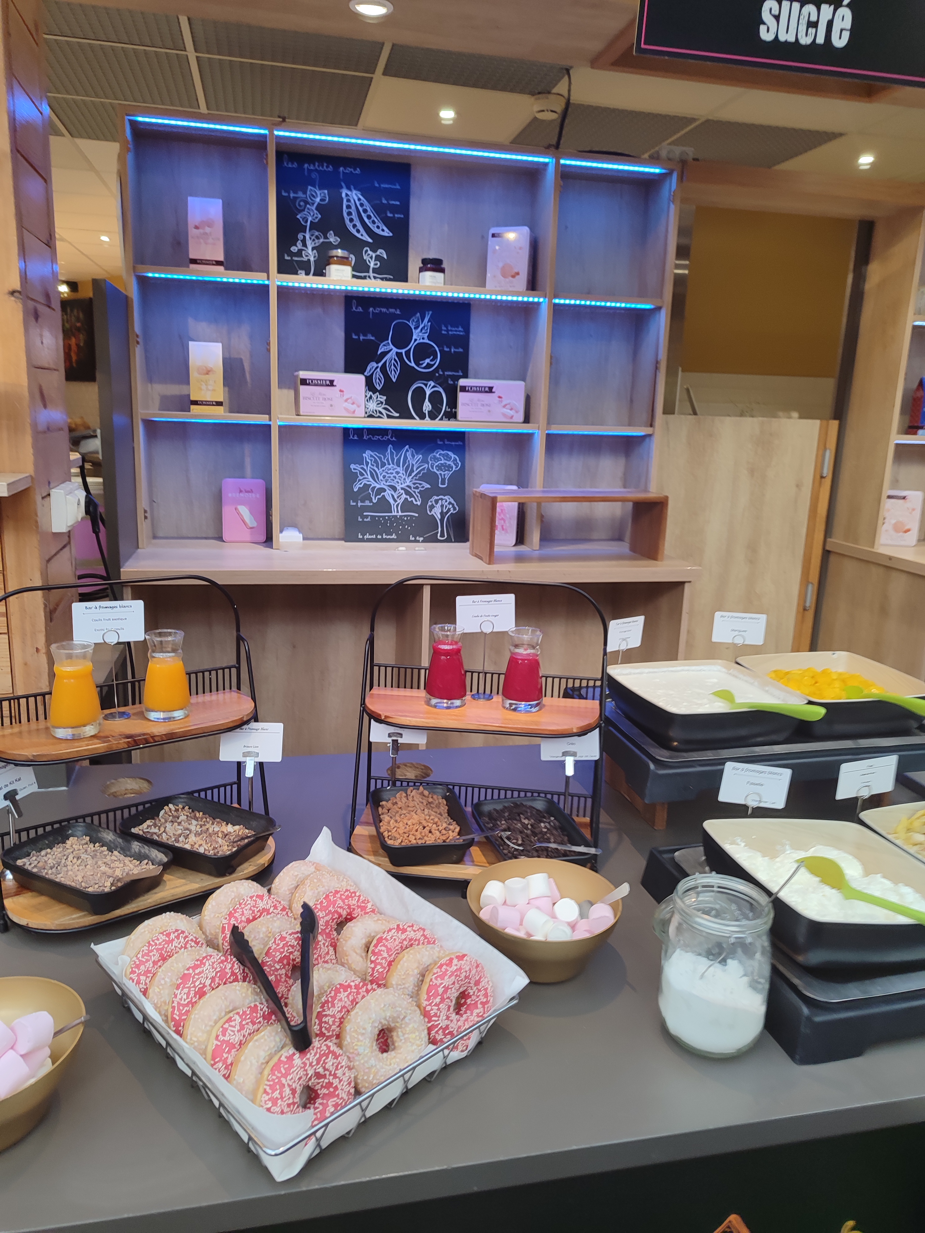 Spacieux et convivial. En revanche, manque d'étiquetage sur les plats proposés et surtout manque d'informations sur les allergènes. Etant coeliaque avec les plats en sauce mon choix m'a paru très réduit et pas grand monde pour renseigner sur la composition des plats.