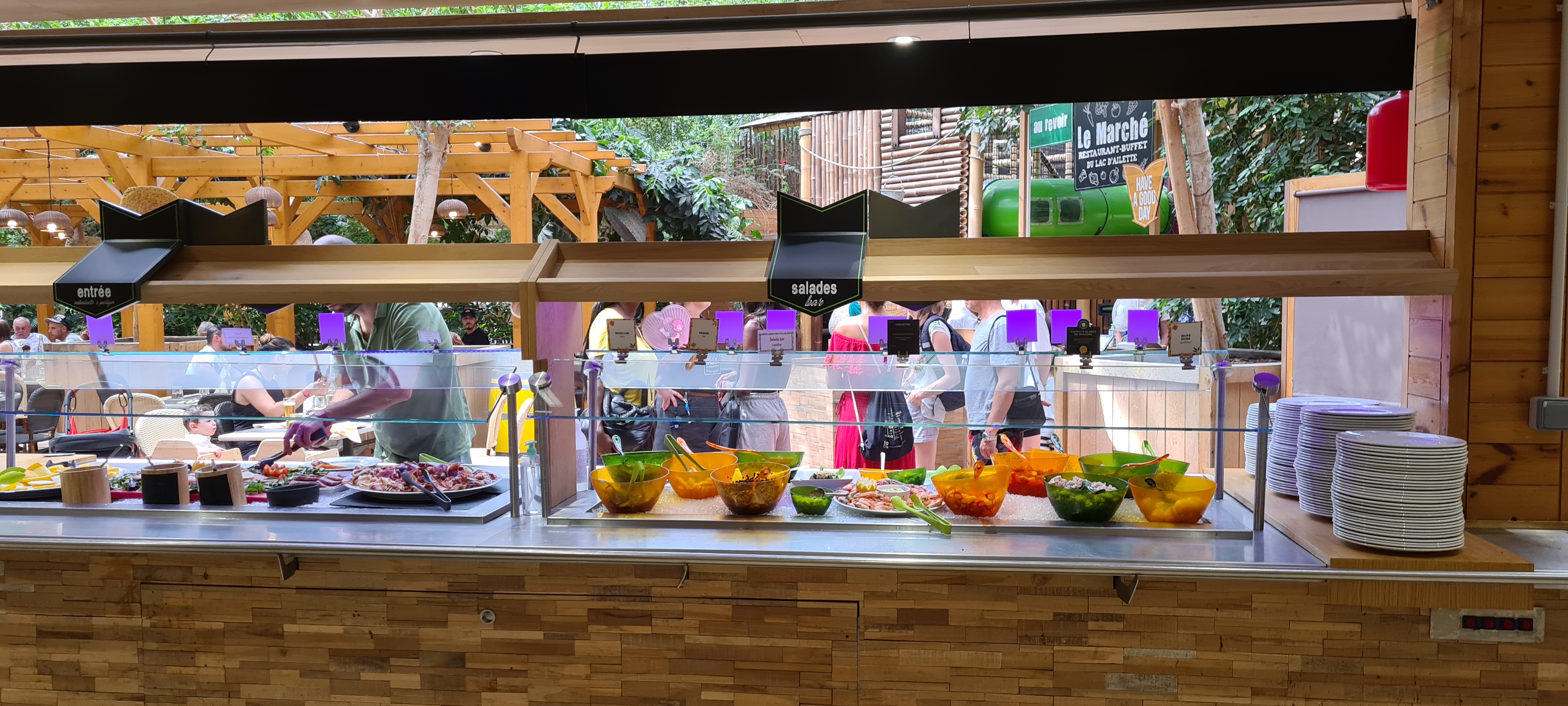 Nous nous avons appréciés. Un prix élévé mais on si attends. Pour avoir essayé tous les restaurants du parc celui ci est le meilleur, l'acceuil franchement au top, le personnel était fort aimable et serviable ce qu'on a pas retrouvé à la pizzeria (pour laquelle nous y avons mangés 3 fois en 6 mois). La qualité est au rendez-vous, pour un buffet à volonté j'entends bien, beaucoup de légumes, plein de choix différents, du bon pain, le tout toujours à bonne température et remplis régulièrement. Nous vous le conseillons. Pour info, nous y avons mangé un dimanche midi, dernièr jour des vacances scolaires et avec un réservation via l'appli pour 12h30.