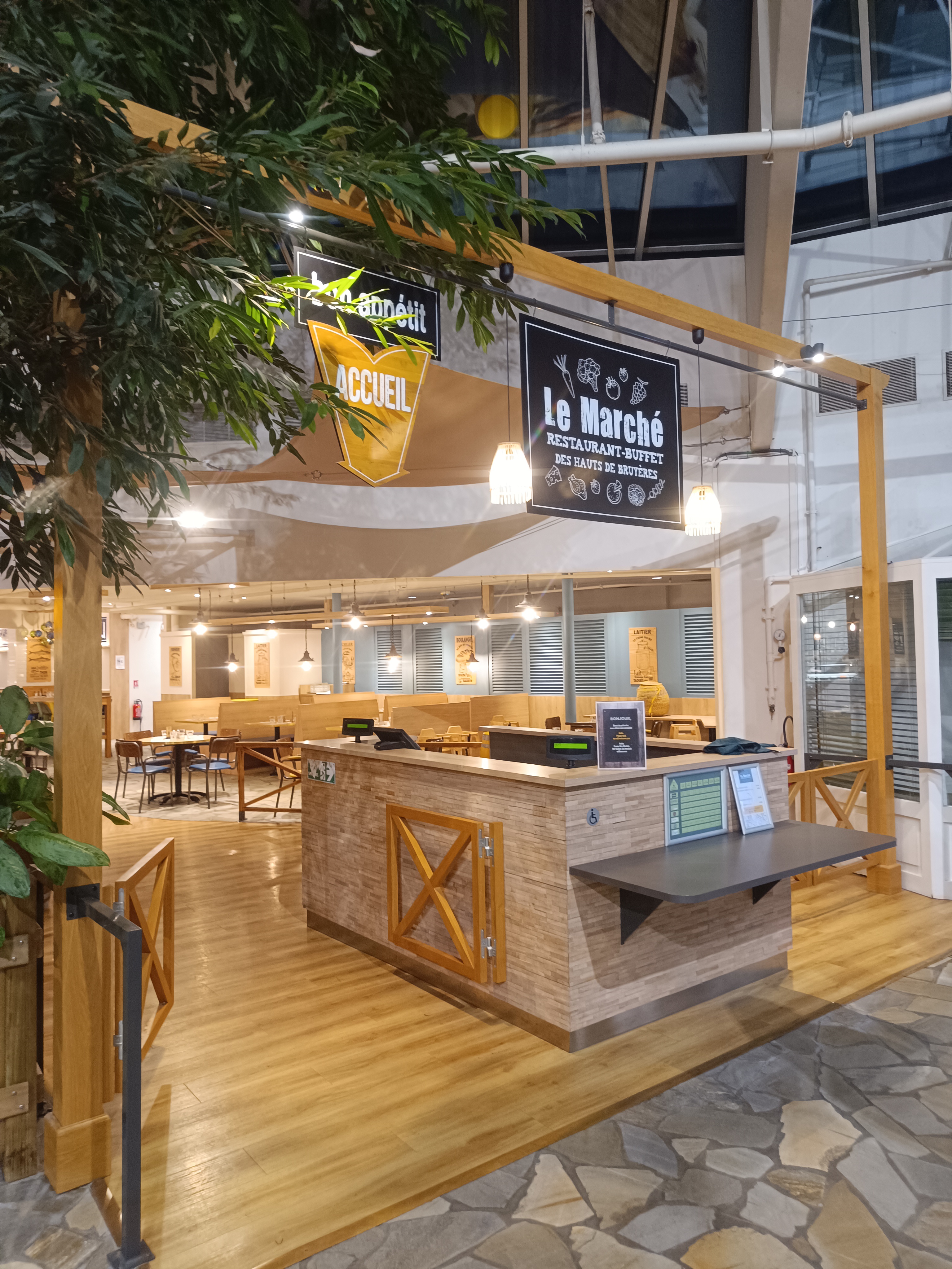 Nous avons tester le marché suite à notre séjour en demi pension, nous avons été agréablement surpris que se soit pour le buffet petit déjeuner ou le buffet du soir. Les 2 buffets sont très variés, le soir les suppléments pour accompagner le fromage et le dessert sont très appréciables (miel, fruits secs, bonbons, noisettes concassées,....) Le personnel très disponible et fort sympathique.