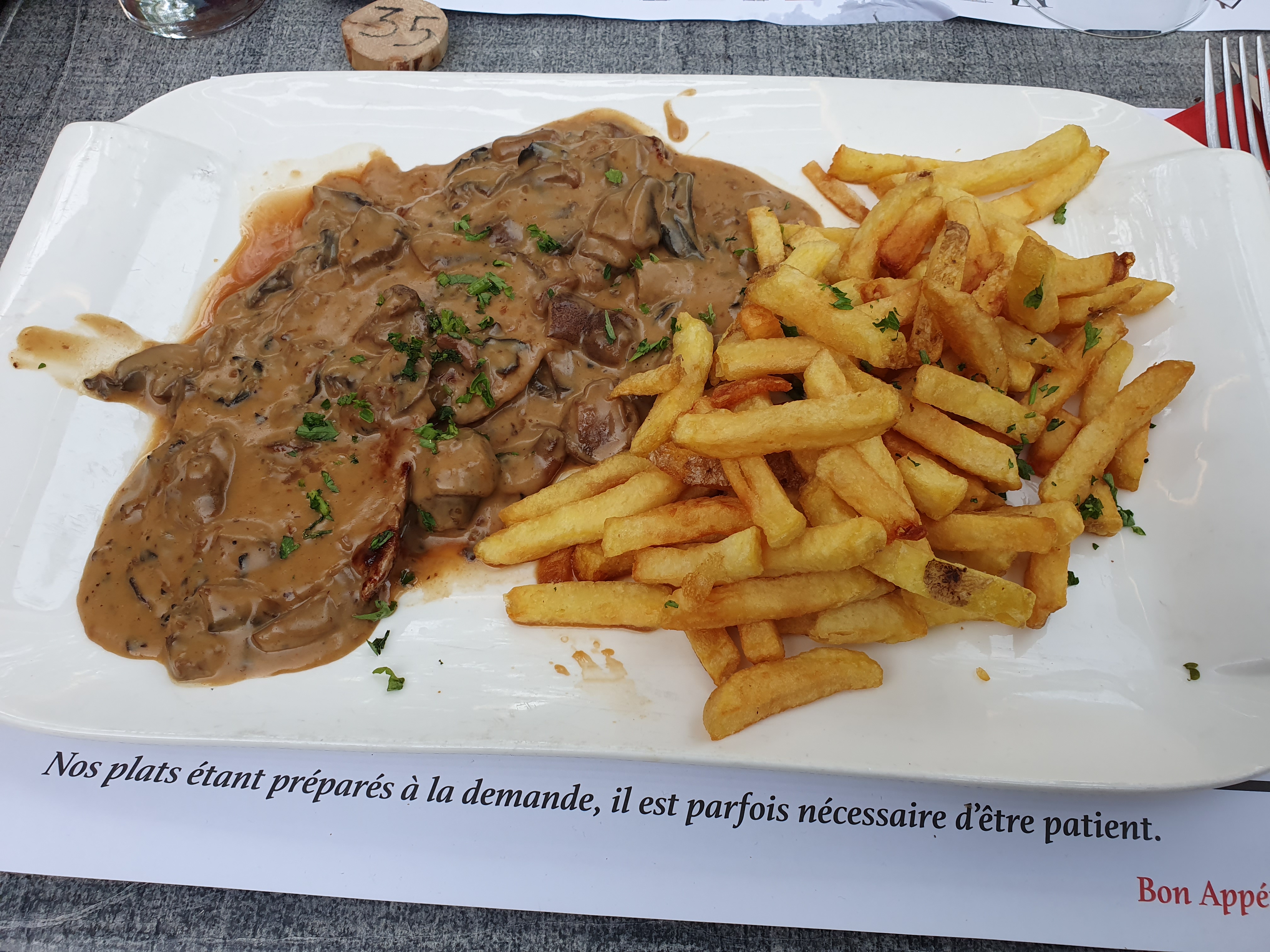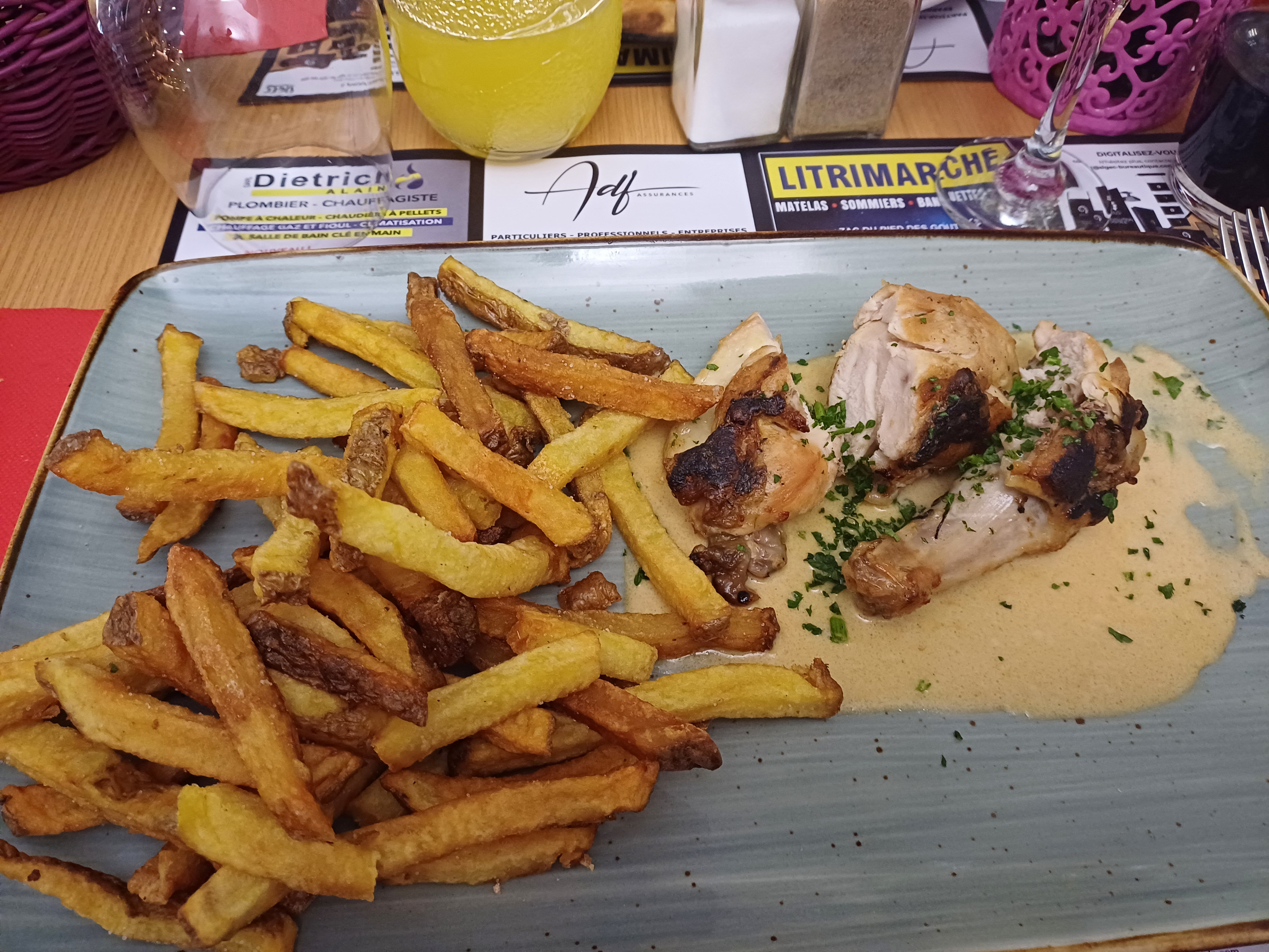 Suprême de volaille un peu trop cuit. Sauce comté bonne mais quantité un peu juste pour l'apprécier pleinement.