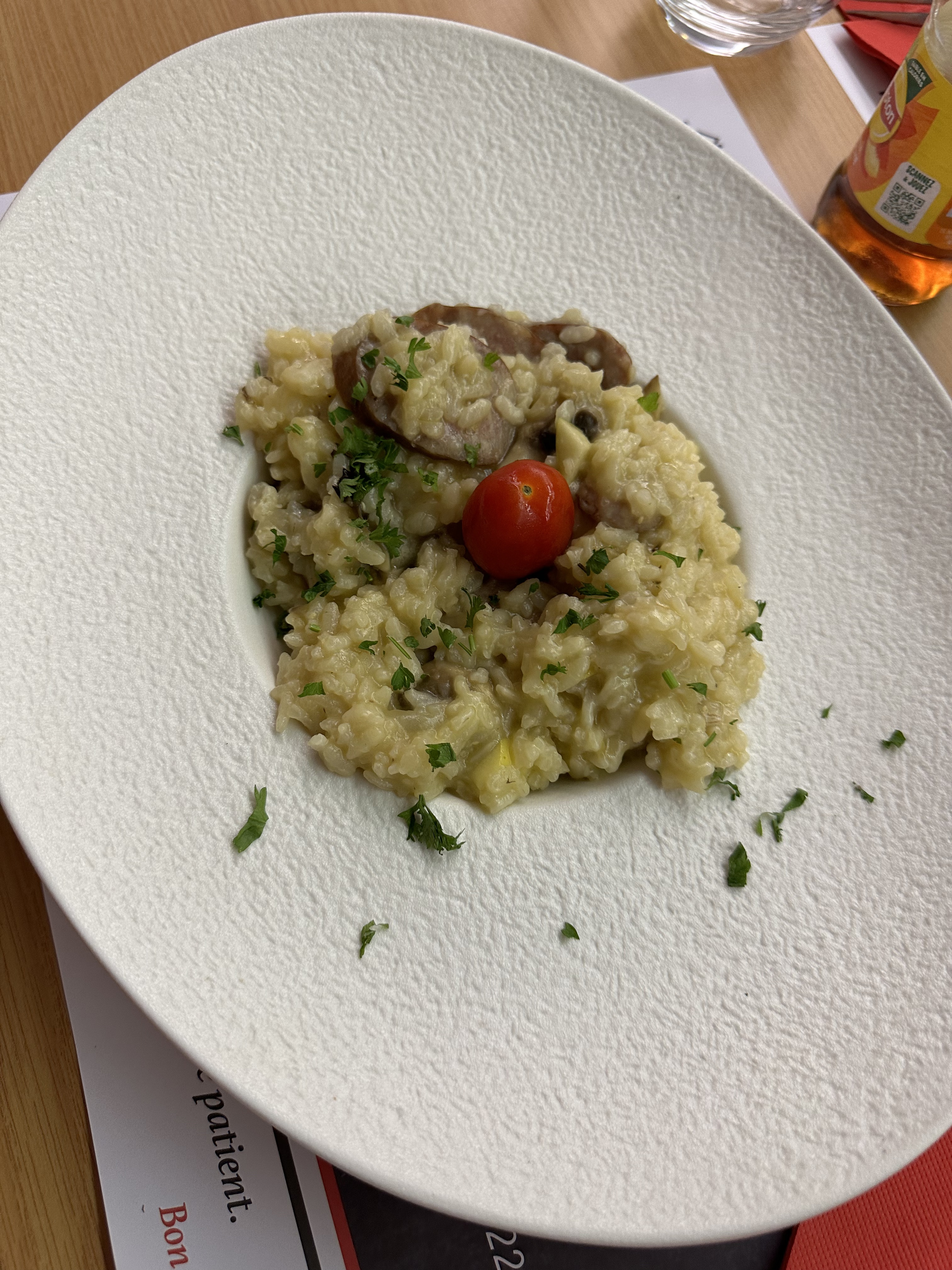Pizza au feu de bois bonnes ! Risotto franc comtois très bon !