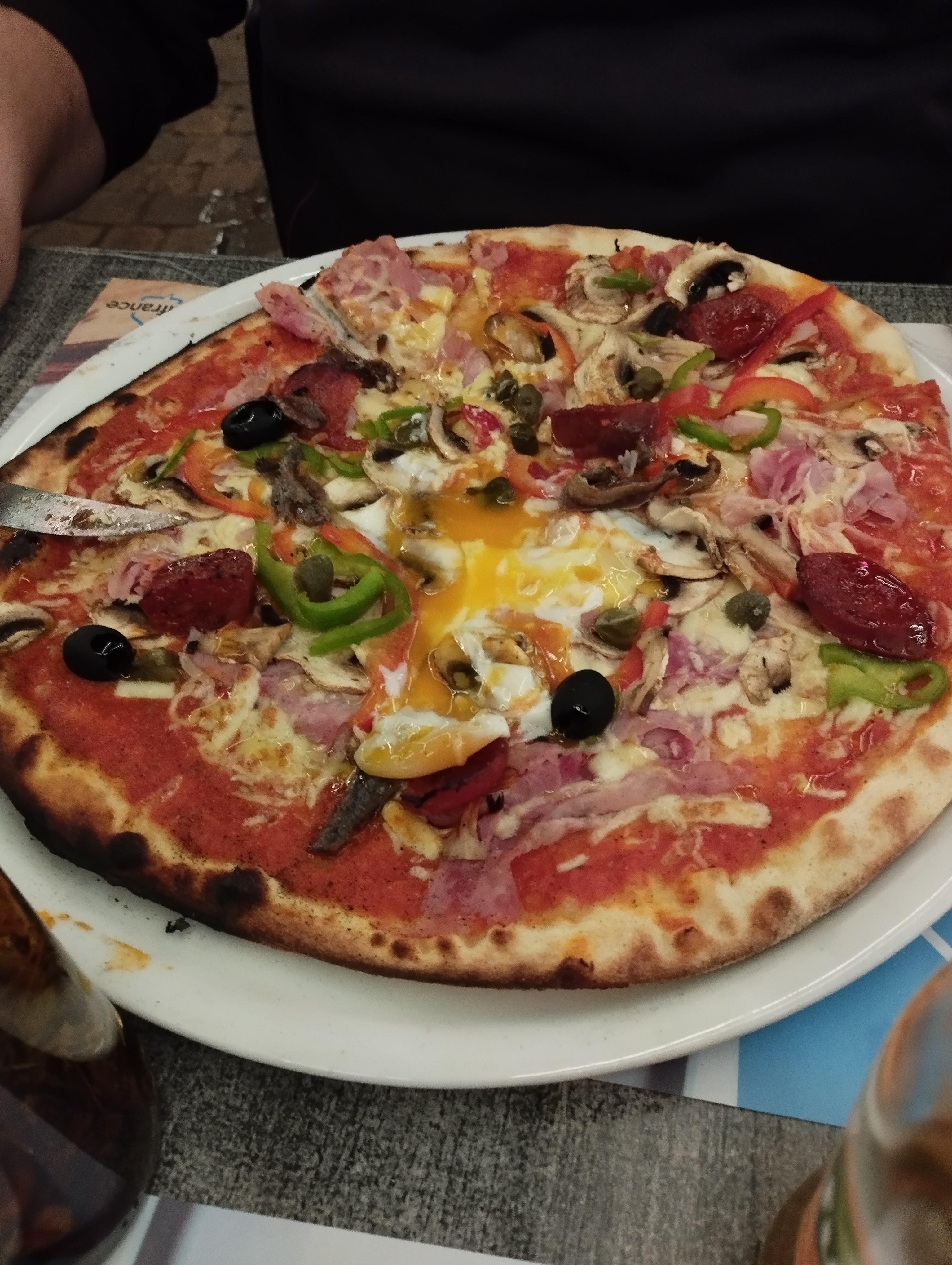Très décevant. Jusqu'à présent, un très bon établissement, nous étions ravis de venir en famille ou en couple. Or, la dernière commande à emporter, contenait des allergènes bien qu'ayant fait une demande précise. On nous promet par téléphone un geste commercial pour la fois suivante. Nous revenons en juillet 19, dîner en terrasse. Je commande une regina supplément oeuf. Je retourne la pizza qui se trouve sans. On me ramène un oeuf au plat sur la pizza. Je vais voir le chef.... on me ramène une pizza réchauffée et surcuite avec un oeuf et un cheveu... que je n'ai donc pu manger. aucune excuse de leur part...et pour comble seule cette horrible pizza n'est pas facturée.