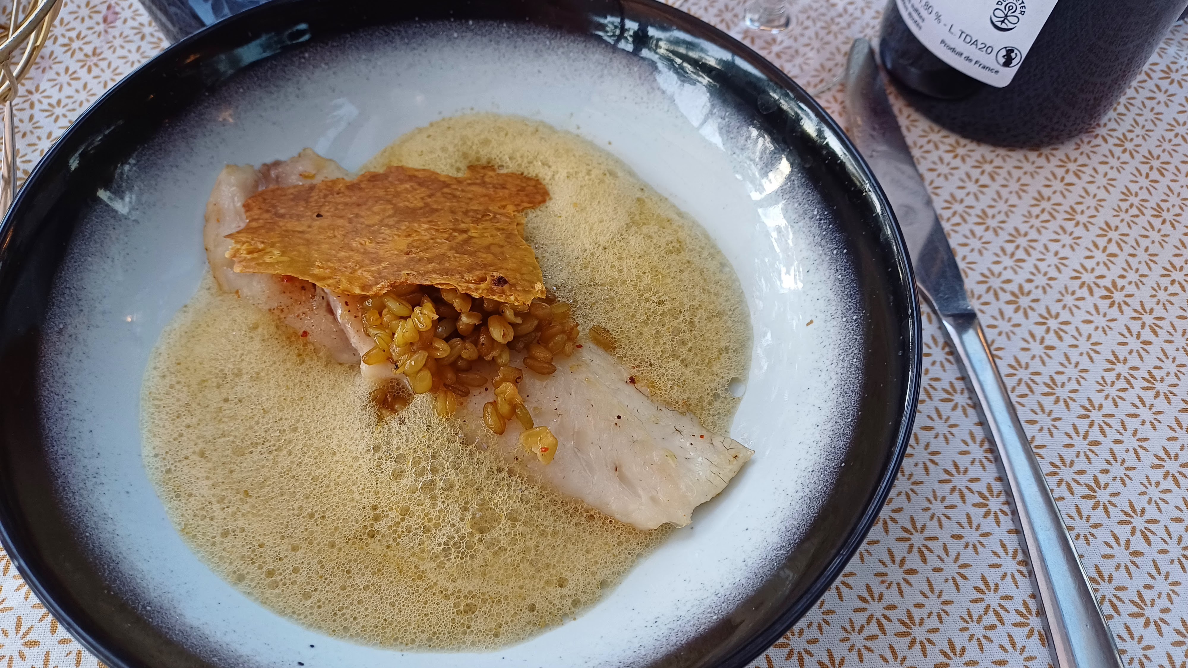 Whaou 🤩 ! Que dire? C'était parfaitement parfait... Endroit super tidy ET où l'on se sent hyper bien. Playlist de l'espace, la voisine du bout près de la vitre dansait de la tête et des épaules... Service professionnel, attentionné ET très sympathique. Un blanc à tomber pour un tarif très raisonnable. Et pour finir... Tomates, crème de burrata subtil et sublime Très beau risotto Dans les assiettes d'en face, ça balance du lourd, à l'oeil on voit que les cuissons sont parfaites. D'abord, le sablé apetizer, très fin, annonçait la couleur... Sauge? Citronnelle? Moutarde? Magnifique. Une cuisine magique dont je n'ai même pas envie de connaître assurément les éléments qui la composent tant on se laisse charmer... Spell kitchen. Non désagréable 😊: des quantités parfaites, le midi on dépareille le menu en fonction de son appétit et des tarifs plus que raisonnables! On a fort aimé et on reviendra à chaque passage havrais ❤️❤️❤️ Bravo Margote! Et merci 🤗