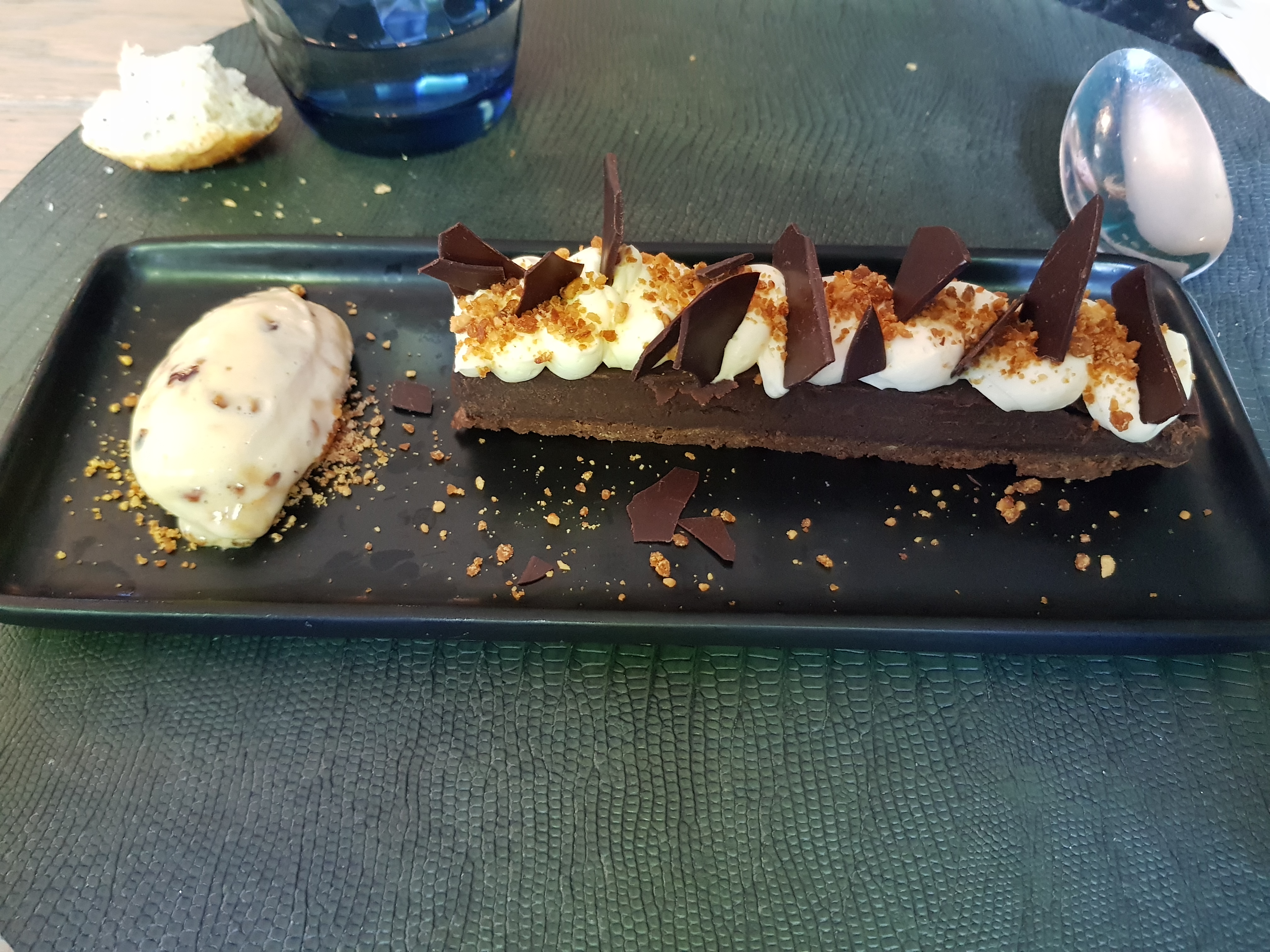 Très bon sur l'entrée et les deux plats, dessert avec saveurs trop mélangées et le chocolat ne se mariant pas avec le citron. Portions un peu justes.