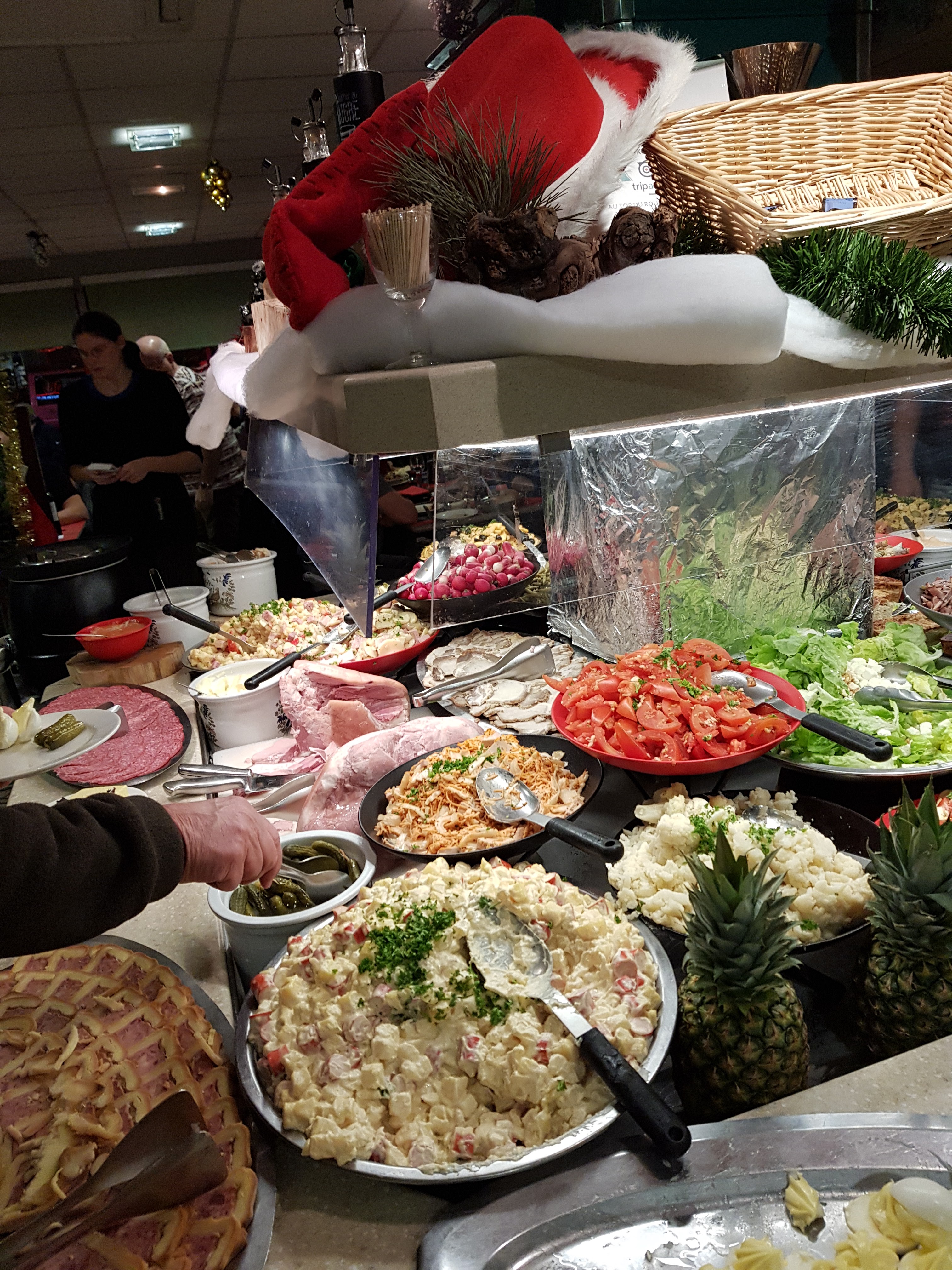 En pleine saison de fin d’année, c’est bondé. Les places sont pour la plupart réservées et pourtant ce n’est qu’une brasserie. Beaucoup de va et vient, de bousculade, personnel complètement débordé, plats de brasserie assez moyens mais des portions largement suffisantes.