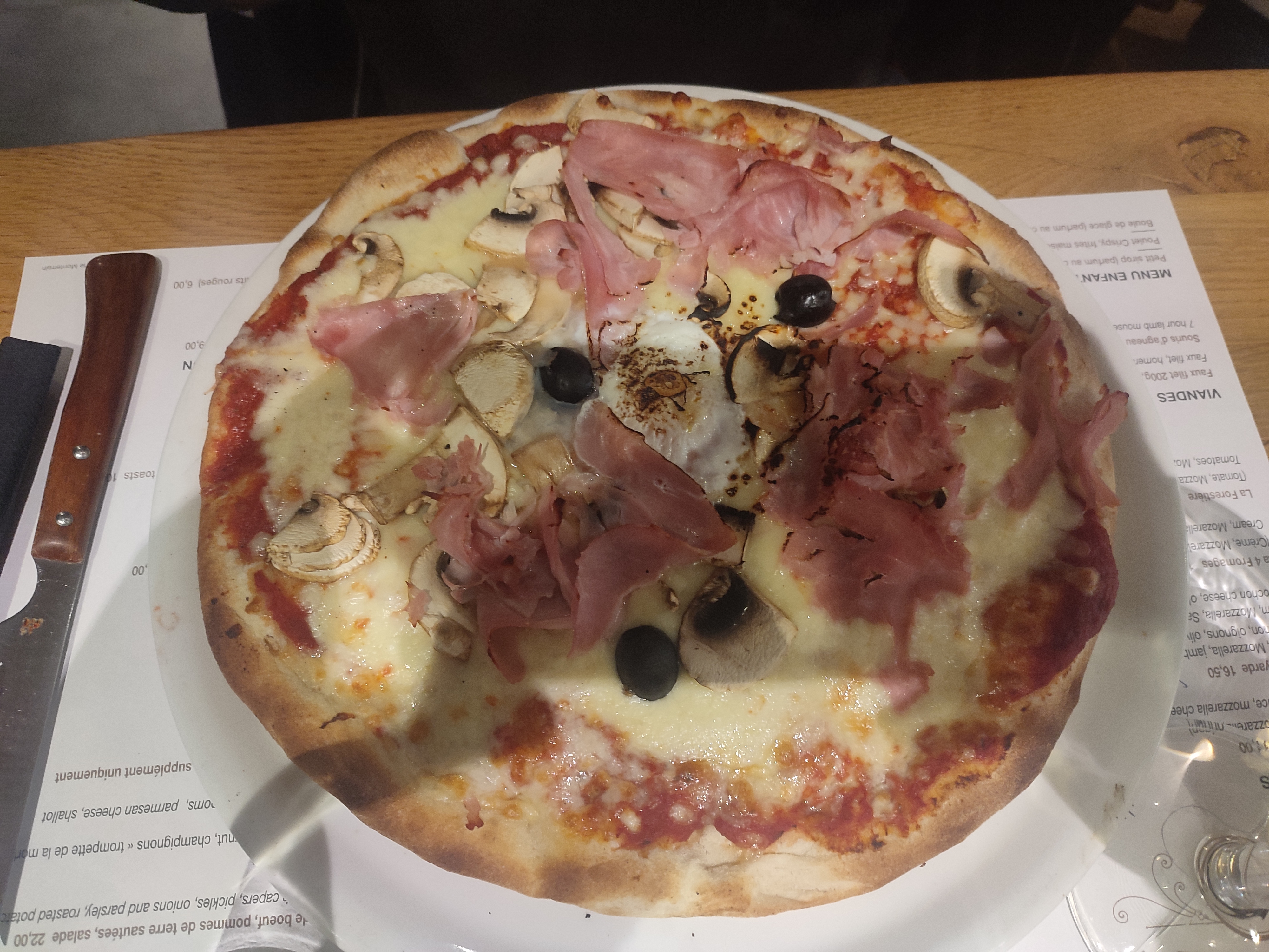J'ai rarement laisser mon assiette avec une demi pizza dedans mais la patte n'a rien a voir avec une patte à pizza et une quantité de fromage écœurante, pareil pour les salades beaucoup trop de jambon c'est de gâchis et tout ça pour un tarif assez élevé