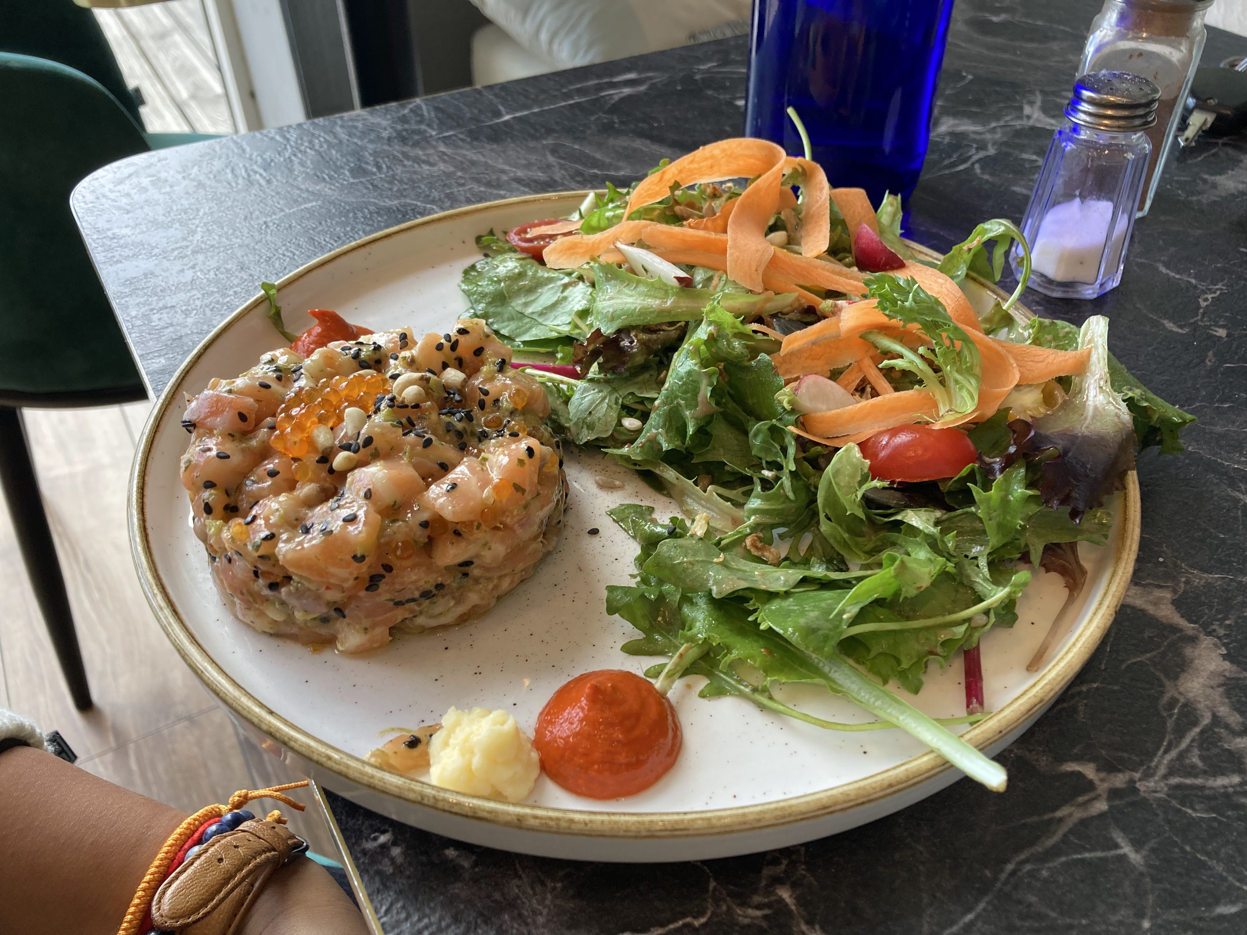 Mangé deux fois là bas, très bien reçu, bien mangé que ce soit les salades ou le tartare et prix très correct