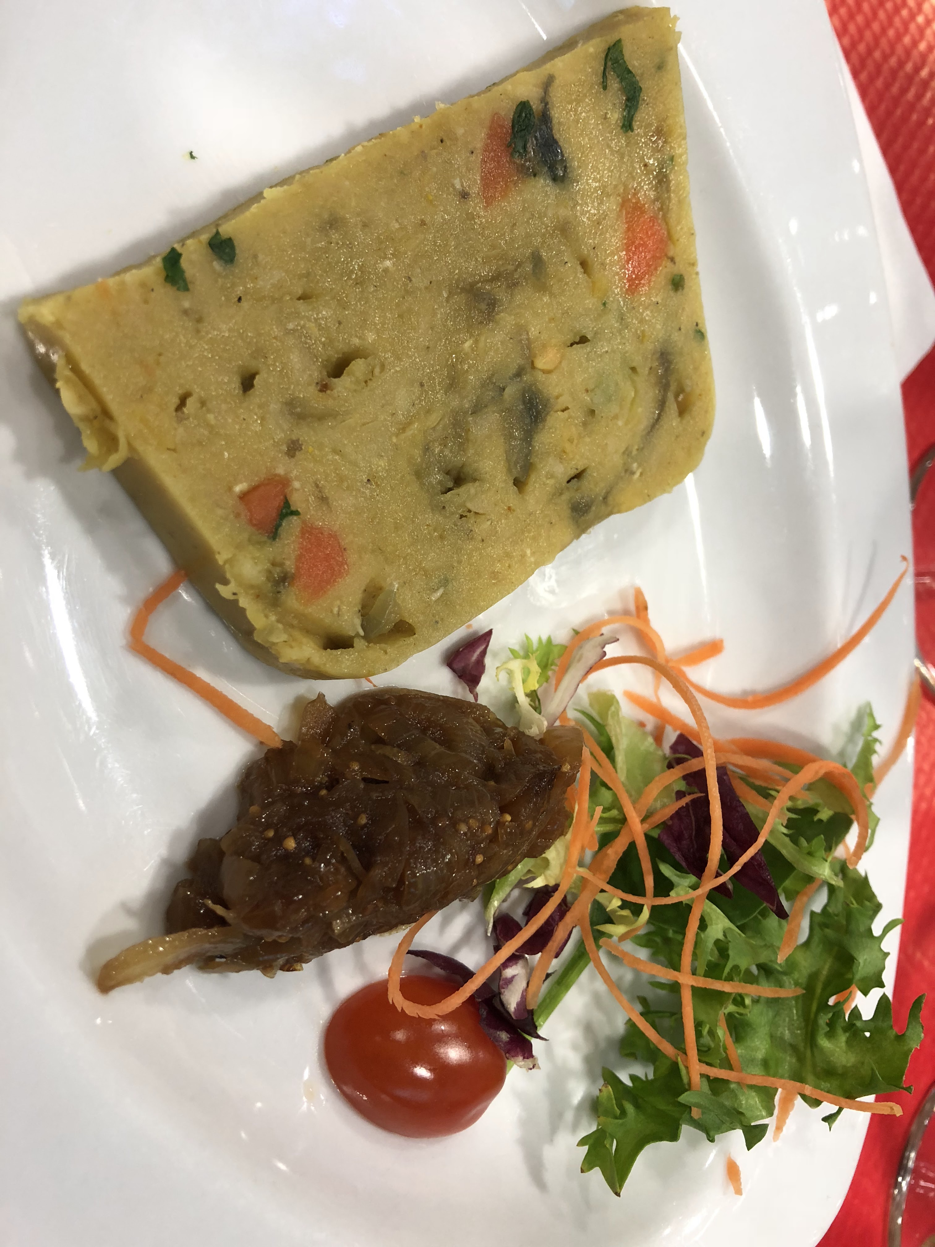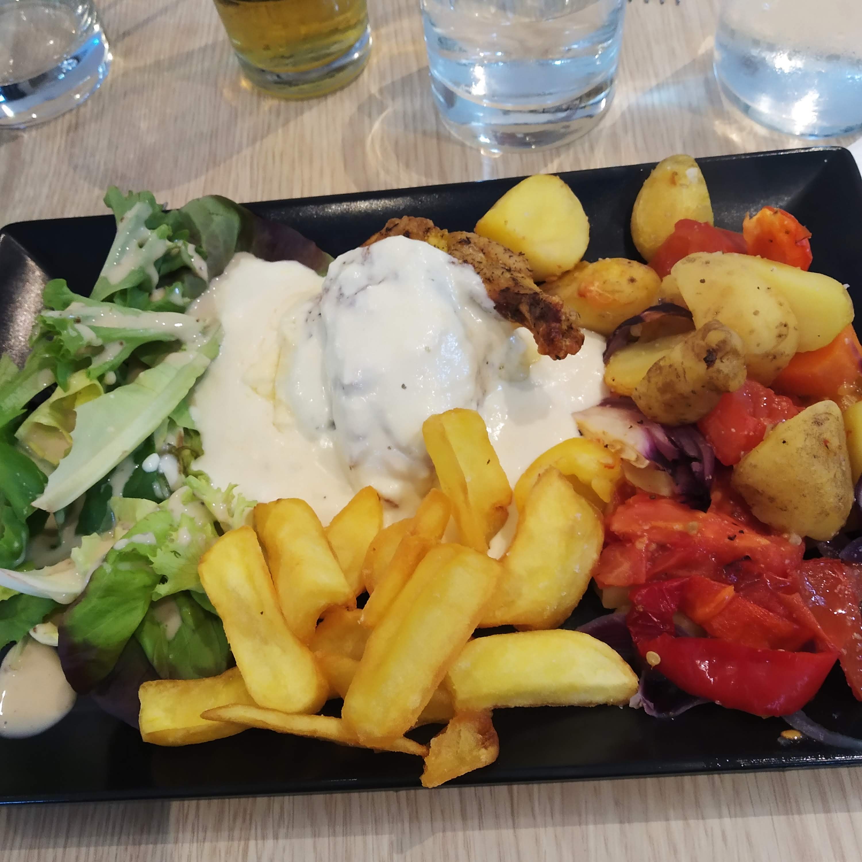 Il fait froid j ai mangé avec mon blouson, casolette de st jacques deux dedans le reste champignons béchamele,poisson trop cuit et légume pas bon. Heureusement la tarte tatin bonne