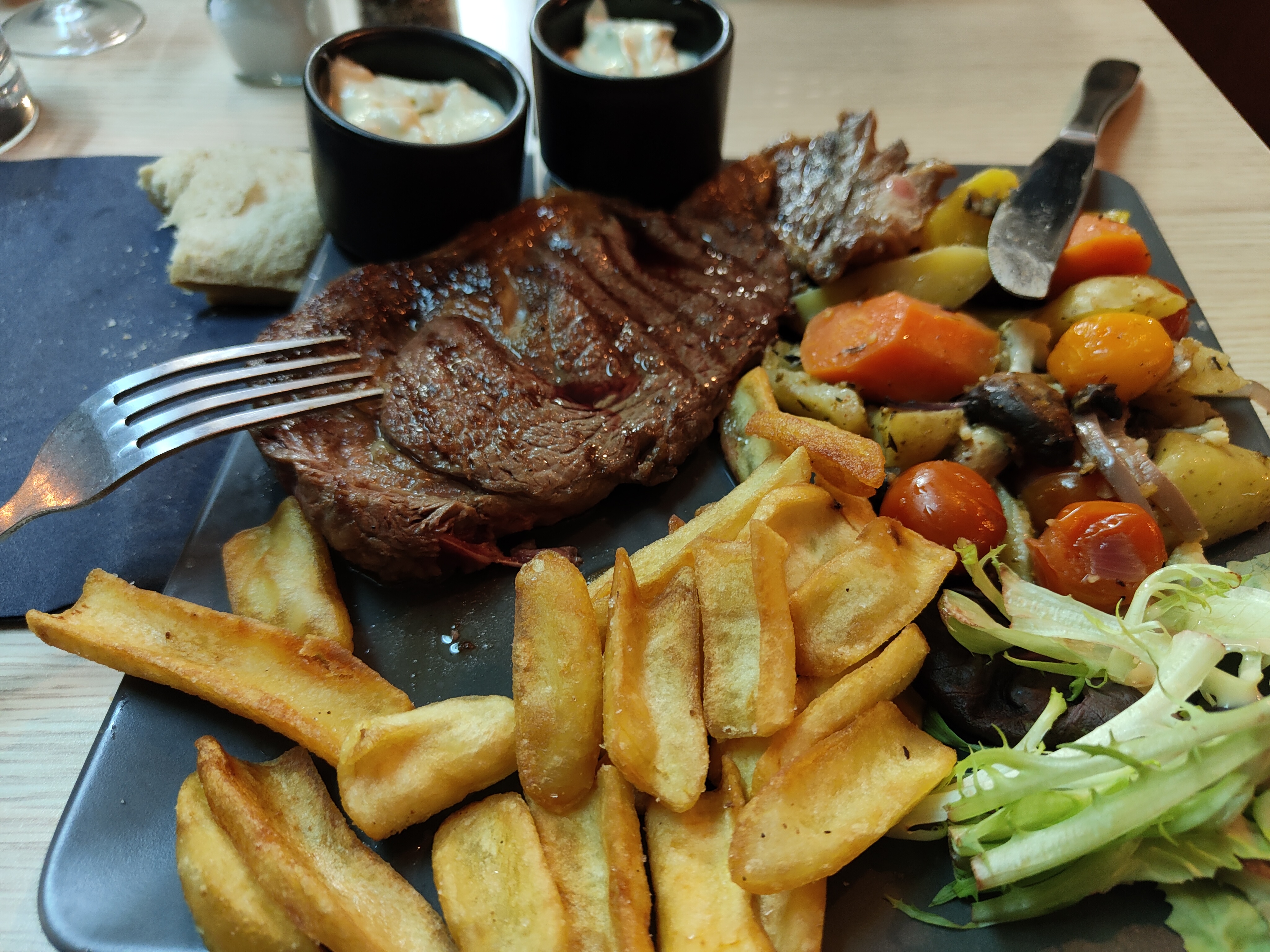 Entrecôte tendre et savoureuse. Chef et serveuse sympathiques.