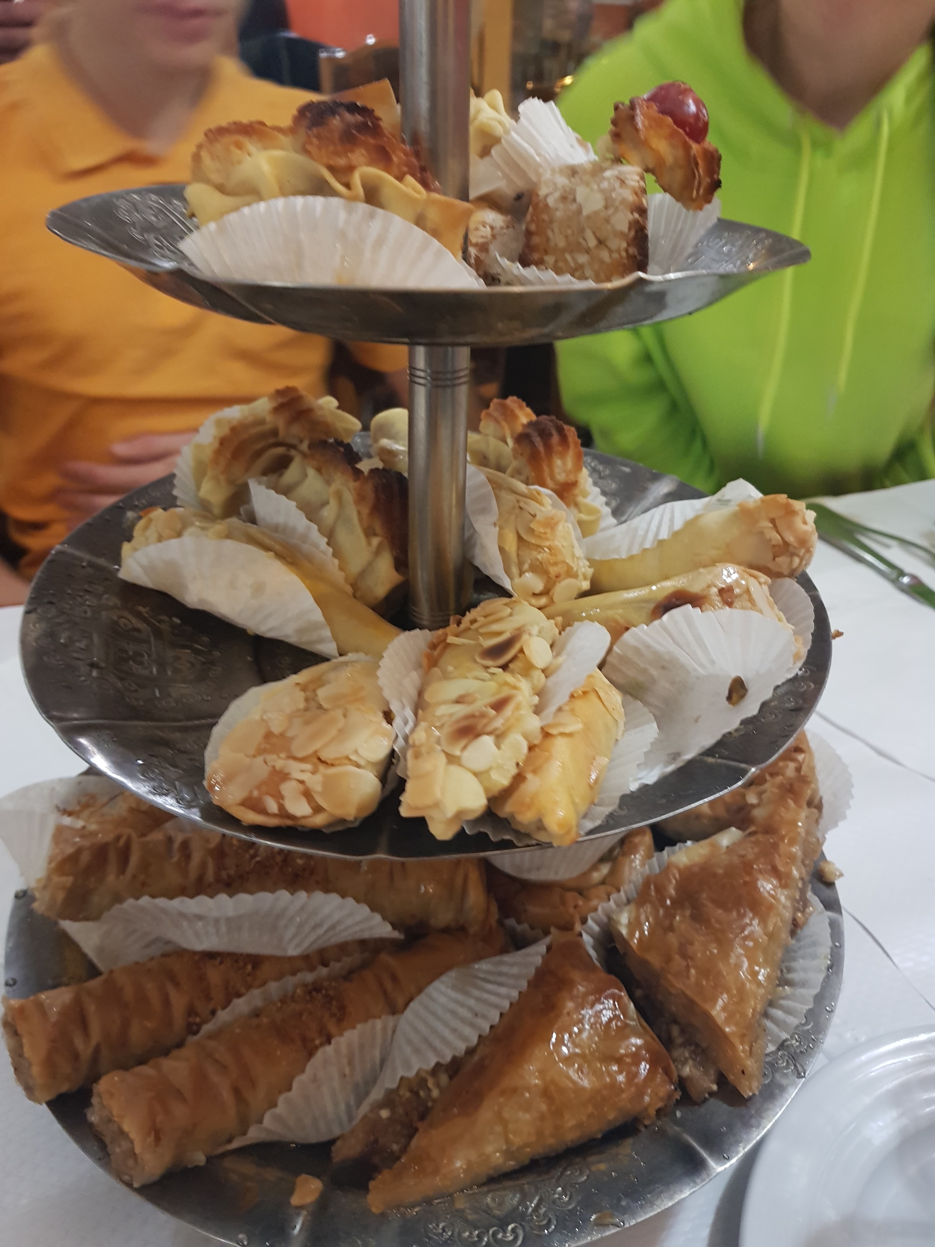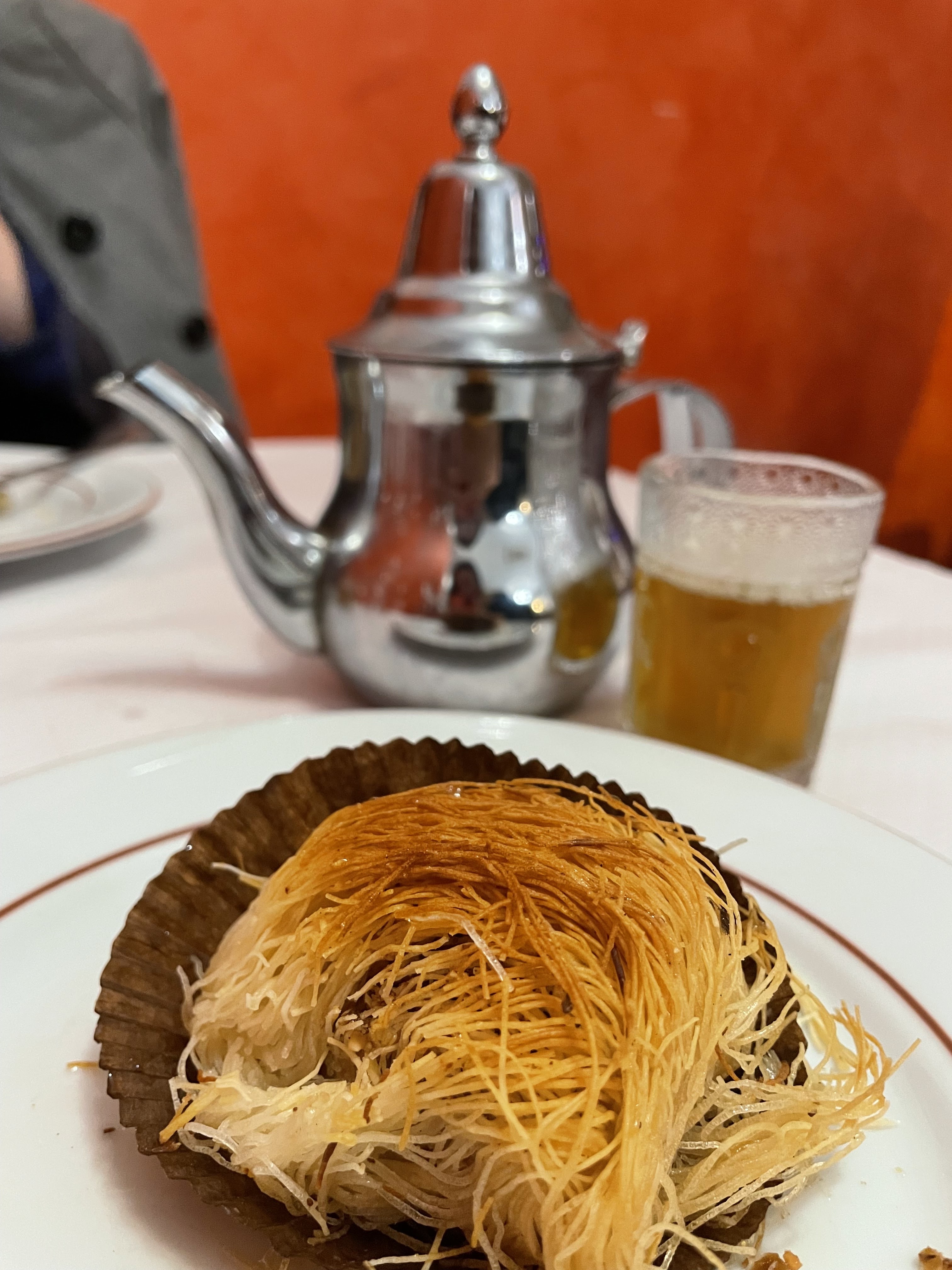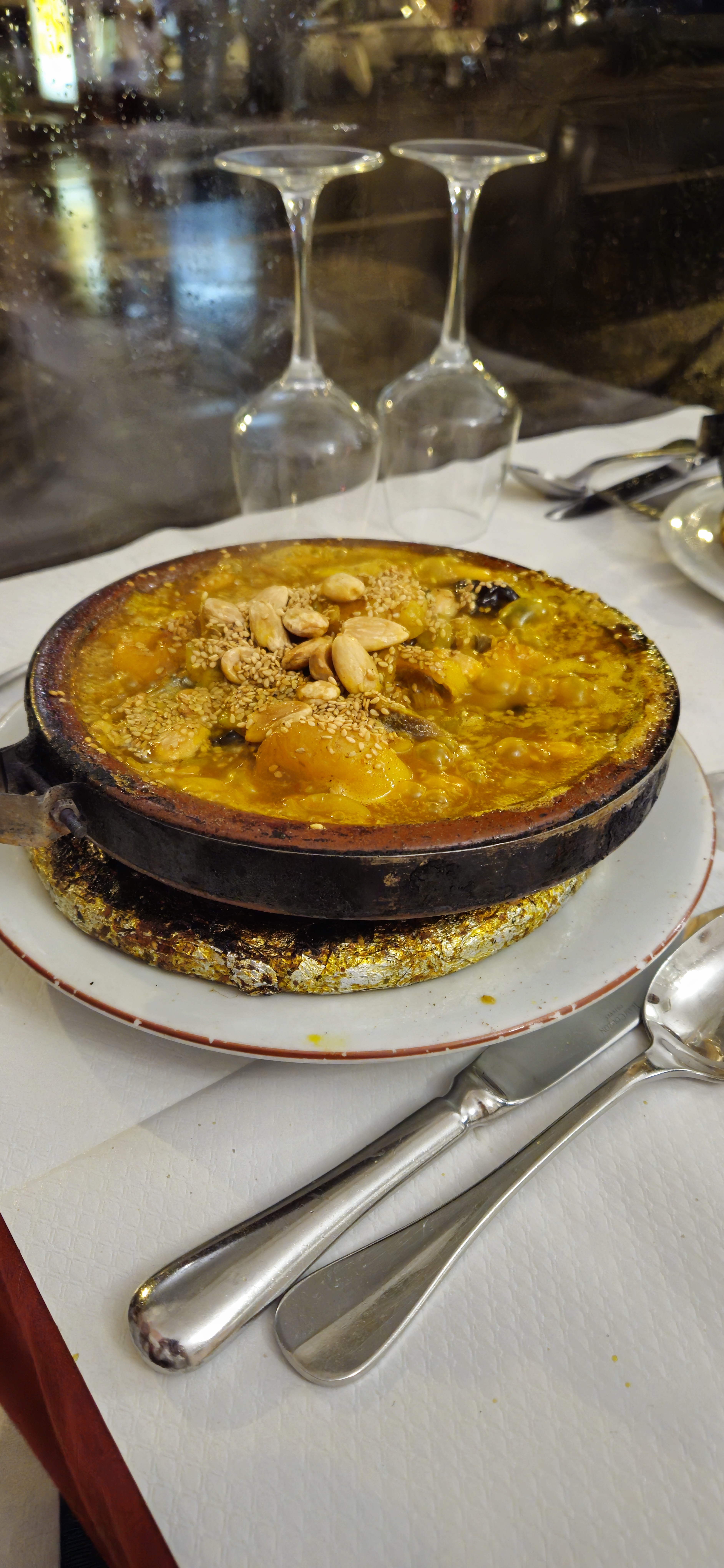 Que dire ? Dans un décor aux charme typique, et un accueil incroyable. Après avoir pris une brique au thon Ma fille a choisi un couscous au boeuf (elle s'est régalée). Quant à moi, j'ai pris un tajine agneau pruneau, abricot amande: sans contexte le meilleur tajine que je n'ai jamais mangé :) Forcément un thé à la menthe a la fin du repas avec un assortiment de gâteaux Un bonheur a l'état pur :) Si vous passez dans le coin, arrêtez vous a cette adresse : vous ne le regretterez pas :) Un must.