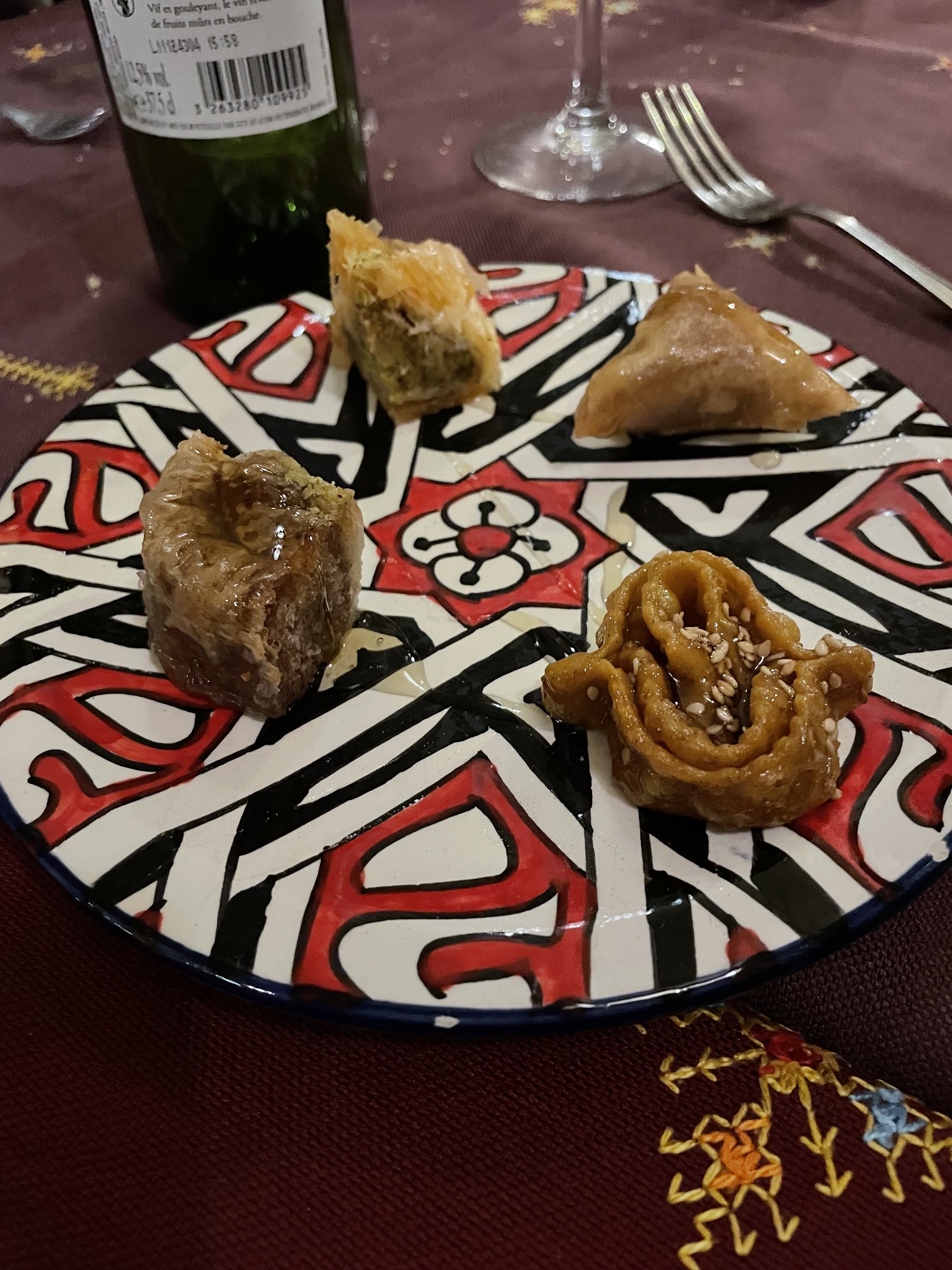 Quel délice!!!!!!😘🌹❤💖🌺👍🌟🌟🌟🌟🌟un couscous ! Un vrai!!!🤩 Un tajin fève poulet !!miam!!!☺ Et jamais manger une aussi bonne corne de gazelle! Fine goût amande et pas trop sucrée ! Une extase culinaire du début à la fin! Je vous aime! Et alors l'acceuil !!! Genial!! Avec un humour que j'adore ! Merci!!!!