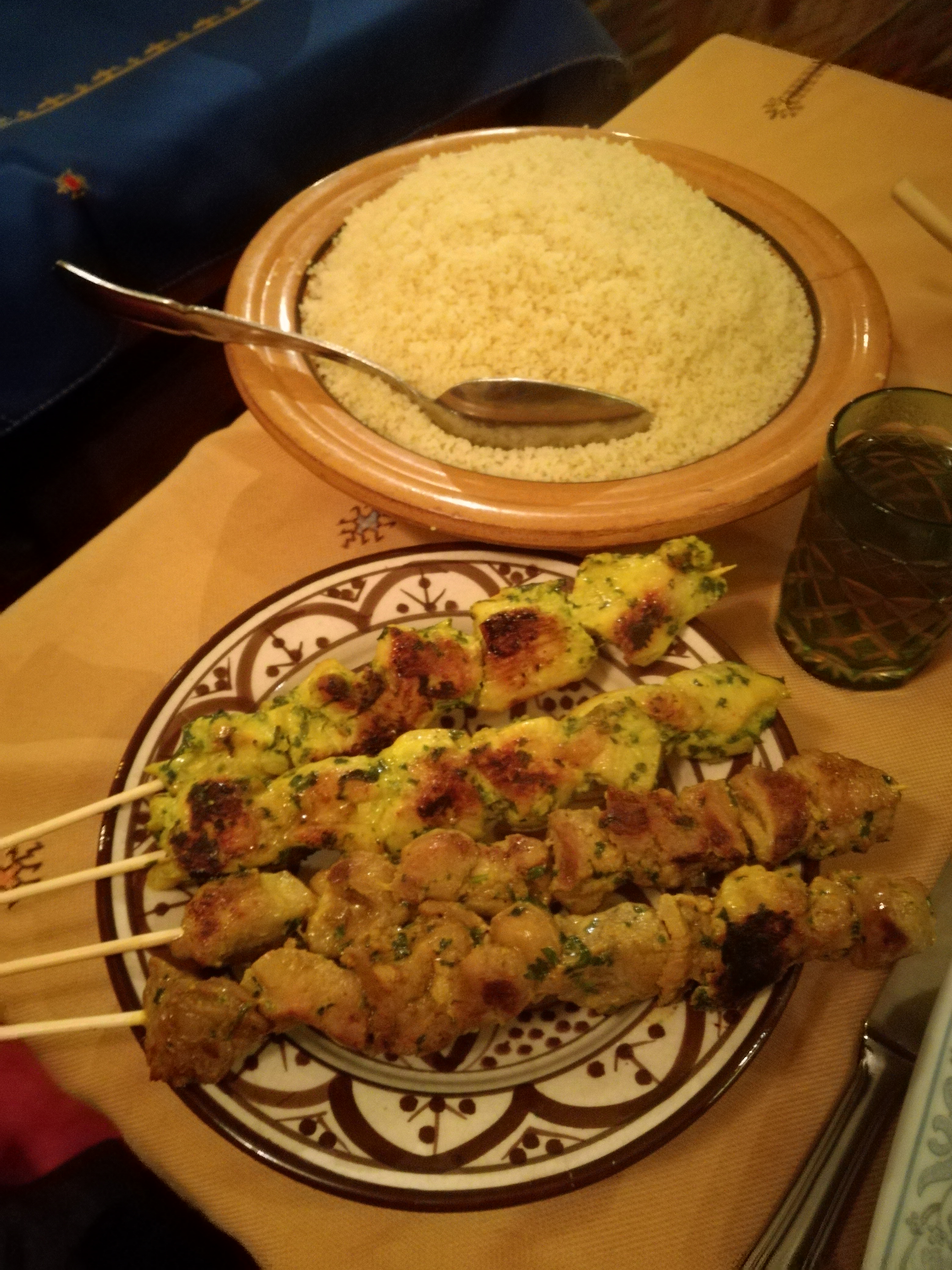 Pour notre dernière soirée à Toulouse nous sommes allés manger un couscous Berbère, 1 brochette d'agneau, une brochette de poulet marinés et des boulettes à la merguez accompagné de légume couscous, pois chiches et raisin oignon à la cannelle. Se fut un régal et Éric nous a bien reçu. Je recommande fortement ce resto au décor chaleureux. Eugenio Montréal Québec