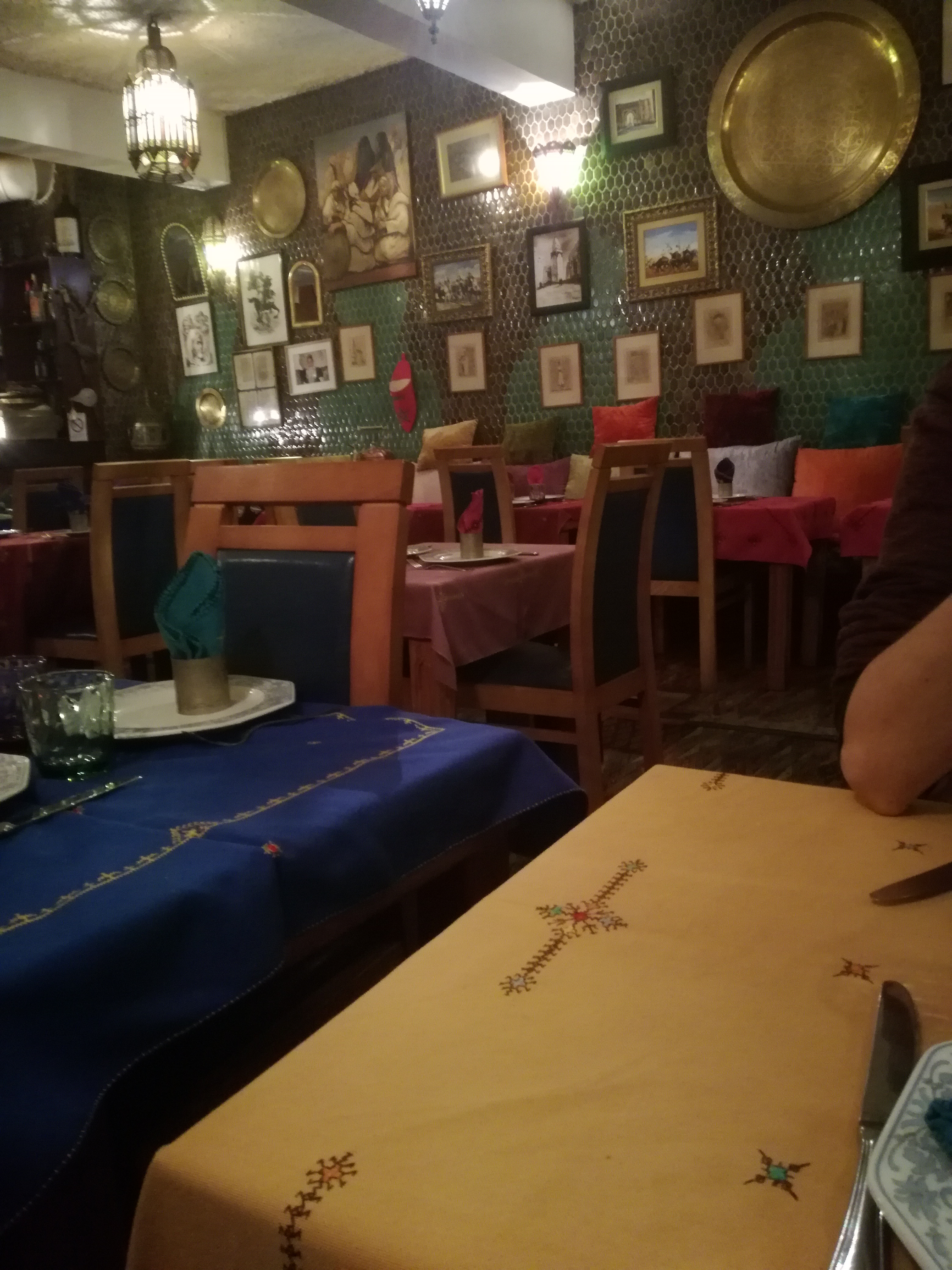 Une atmosphère et une décoration très typiques peut être un peu too much ; que ce soit tajines ou coucous qualité et quantité sont au rendez-vous. Un vrai délice ! Et de quoi rassasier gourmands et gourmets. Le personnel est très agréable et blagueur. Adresse recommandée !
