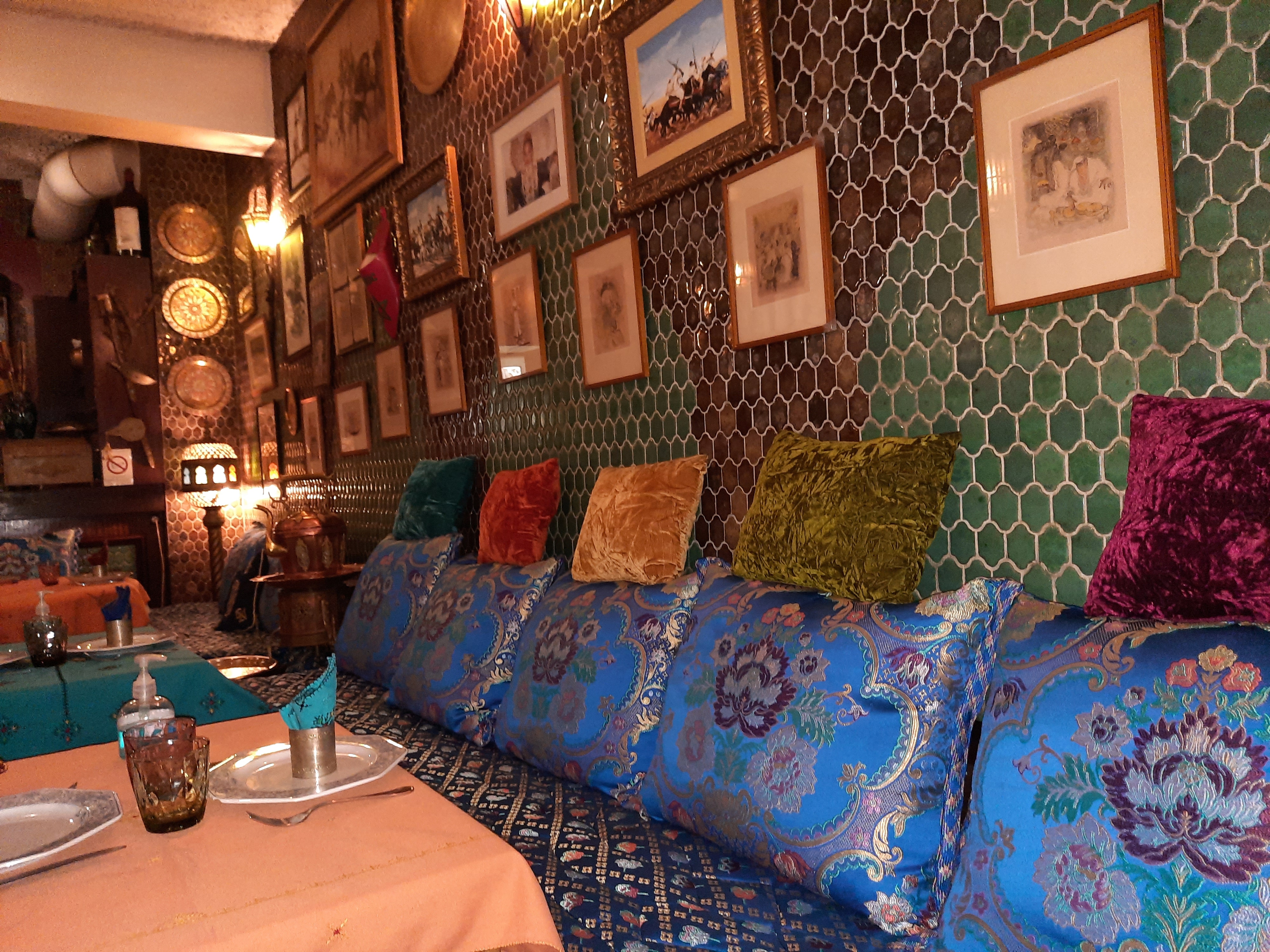 Banquettes typiques marocaines très confortables et tajine d'exception. Pas le couscous mais pas grave car tout le reste est exceptionnel