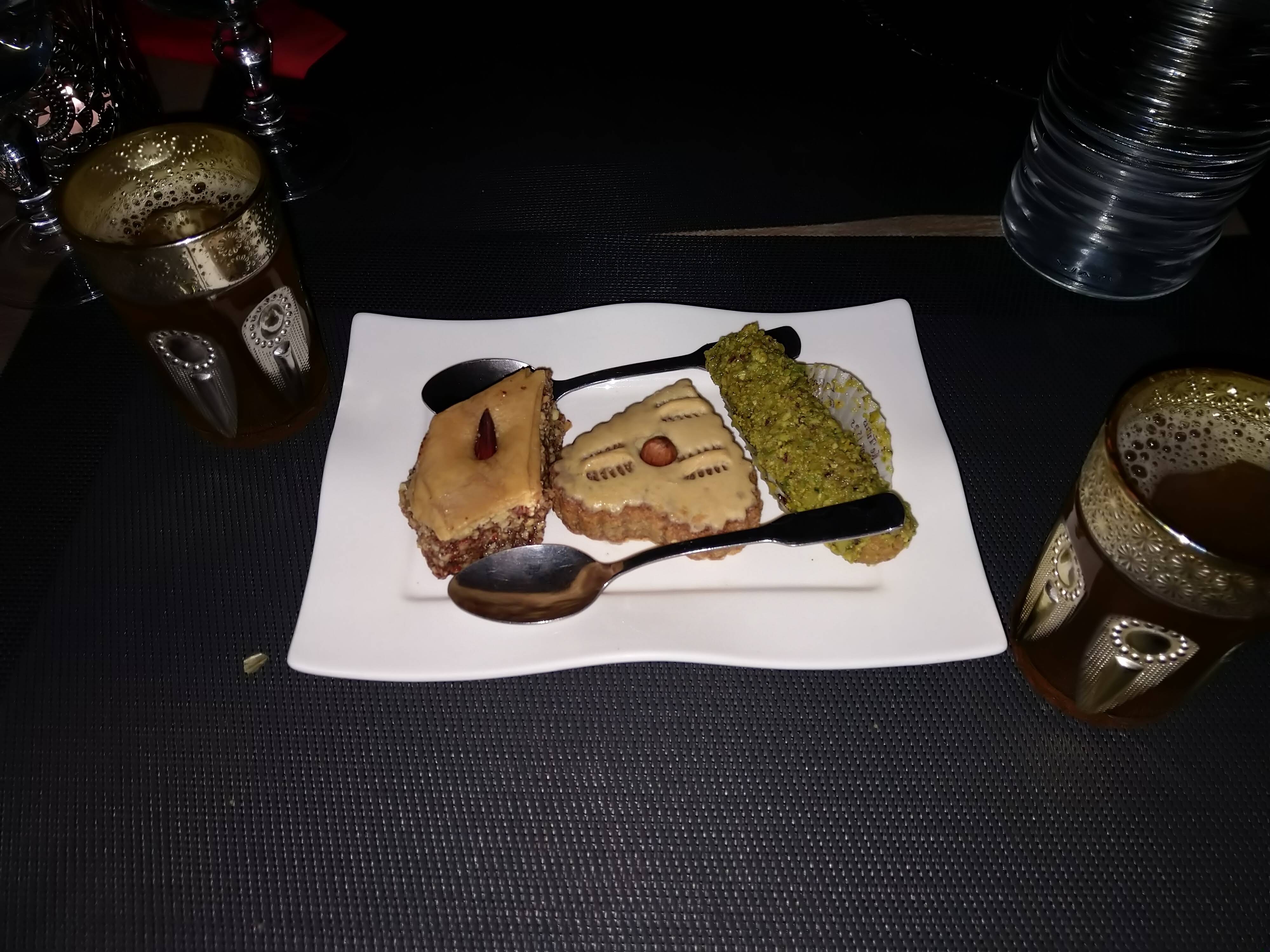 Le lieu est atypique avec un décor qui nous fait voyager vers le Maroc. La nourriture est excellente , petit bémol mauvaise gestion du service . J'ai réservé une table pour 19h30 on a été servis vers 21h . Je recommande ce restaurant pour la cuisine et le lieu .