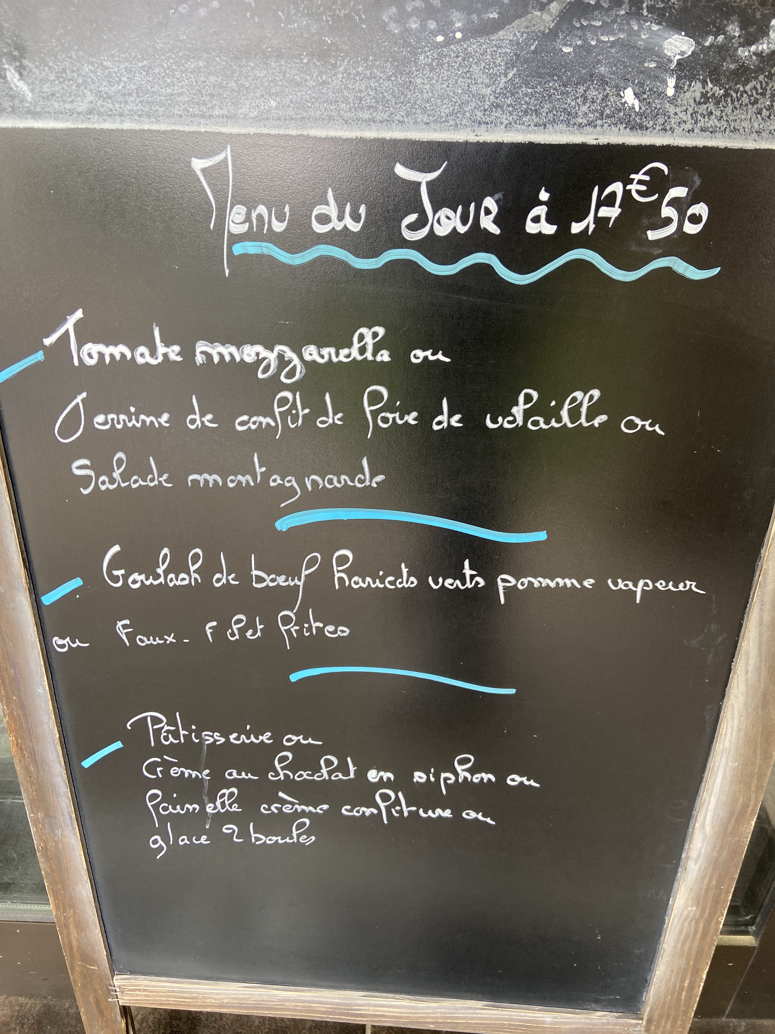 Bof! Nous avons pris le menu du jour. La salade montagnarde une rigolade un peu de jambon blanc et quelques morceaux de fromage(lequel??) Pas mal d'attente et la crème au chocolat montée au siphon on aurait cru de la chantilly aromatisé au chocolat. Ne prennent pas la carte restaurant. Pas la meilleure expérience de notre séjour