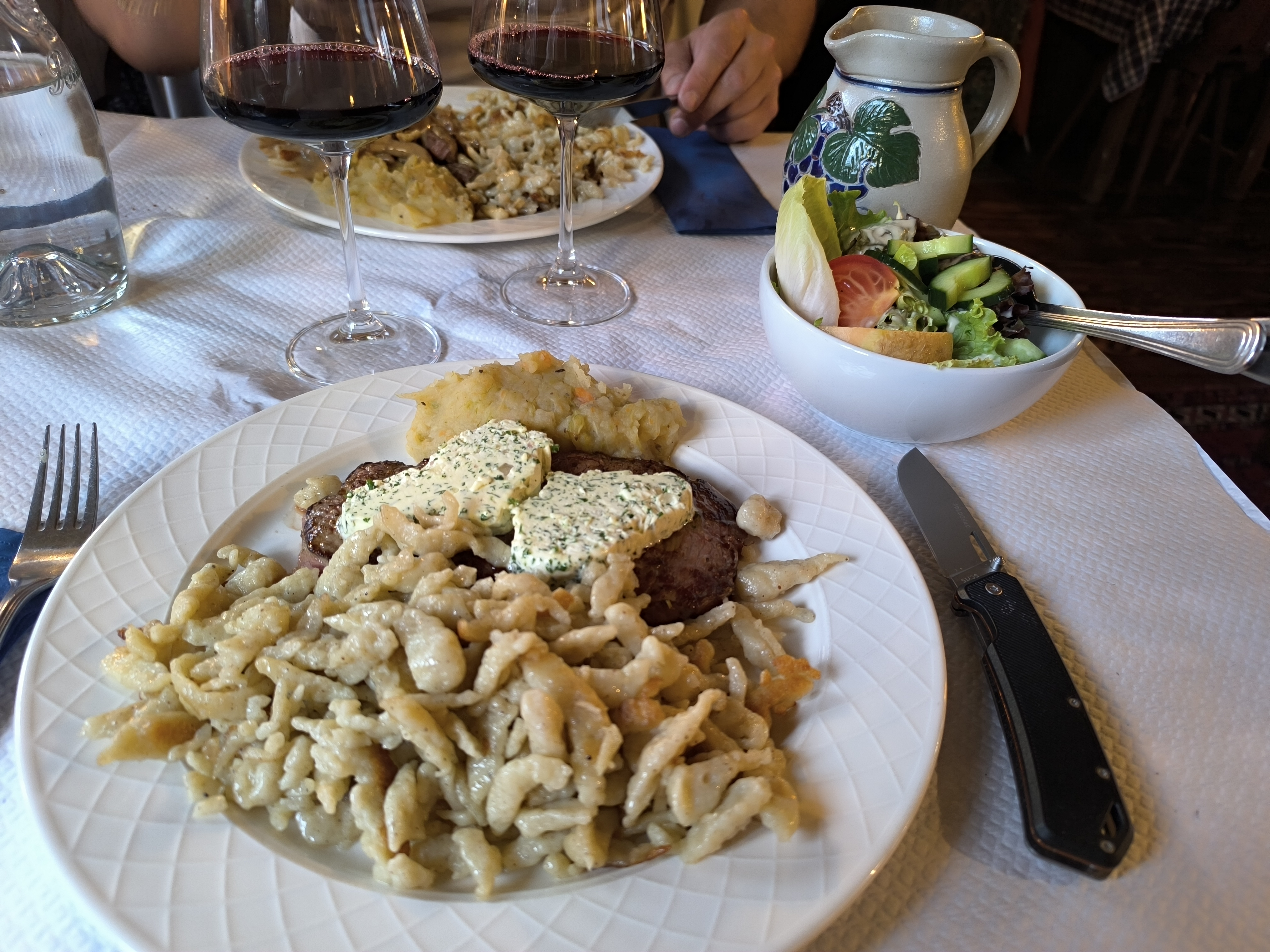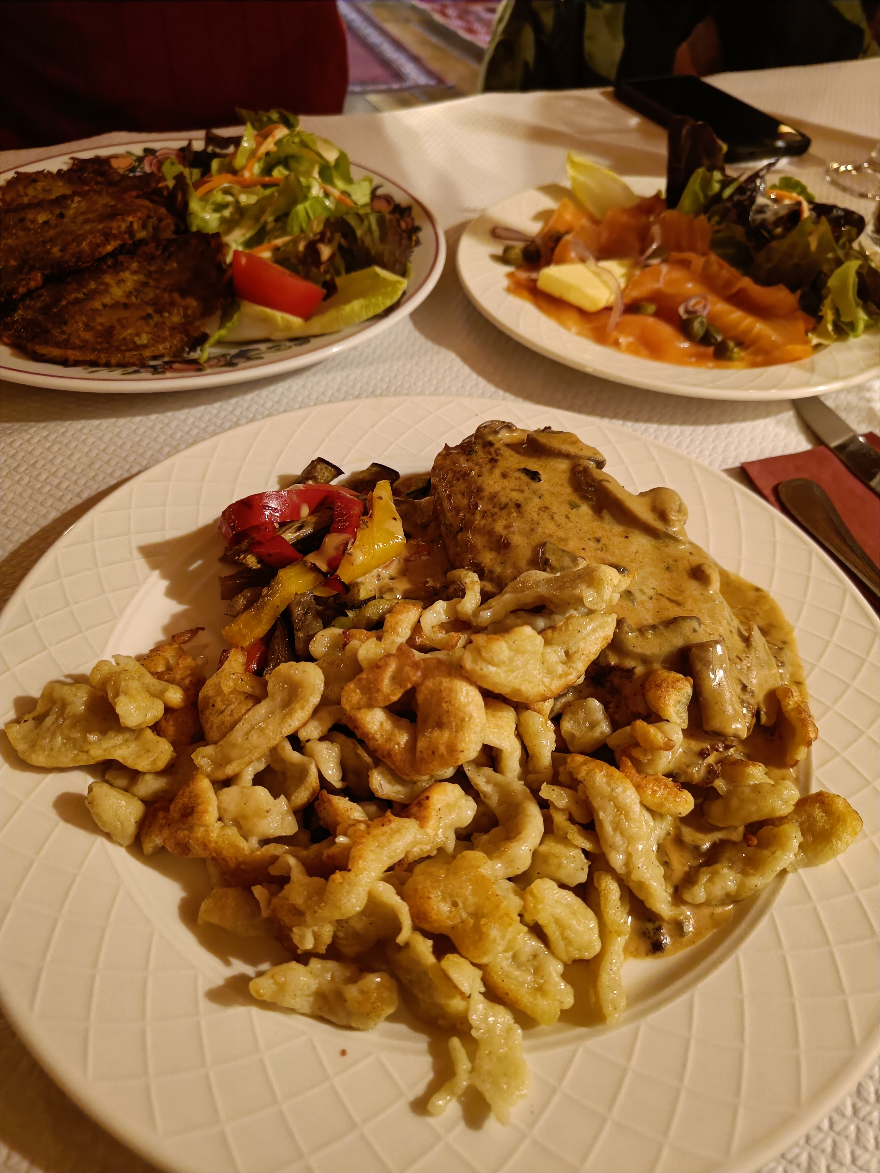 Très bonne cuisine, en goût et quantités comme l'Alsace sait faire! Dommage pour la présentation des plats un peu moins digne d'un restaurant. Service assez hasardeux
