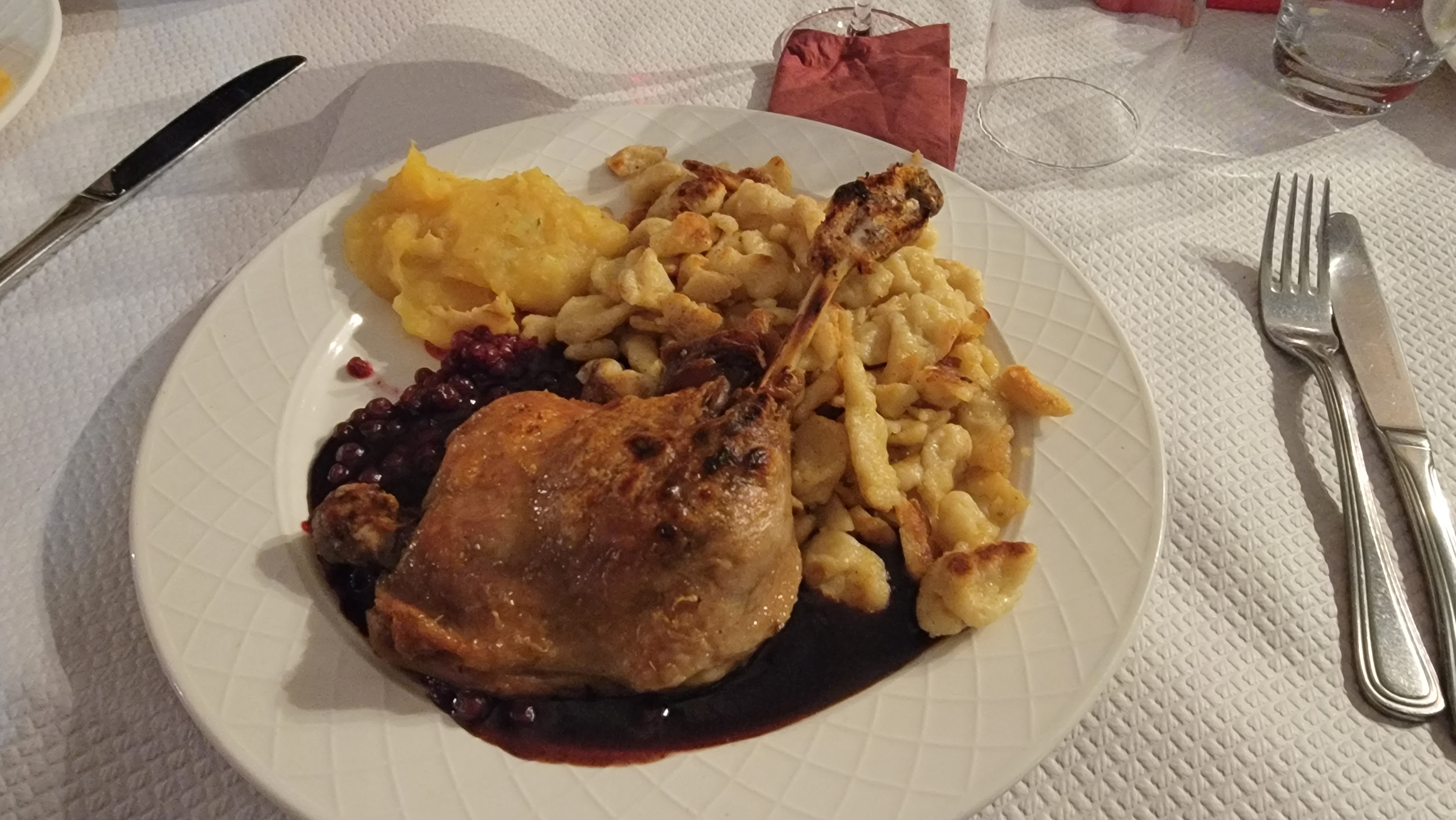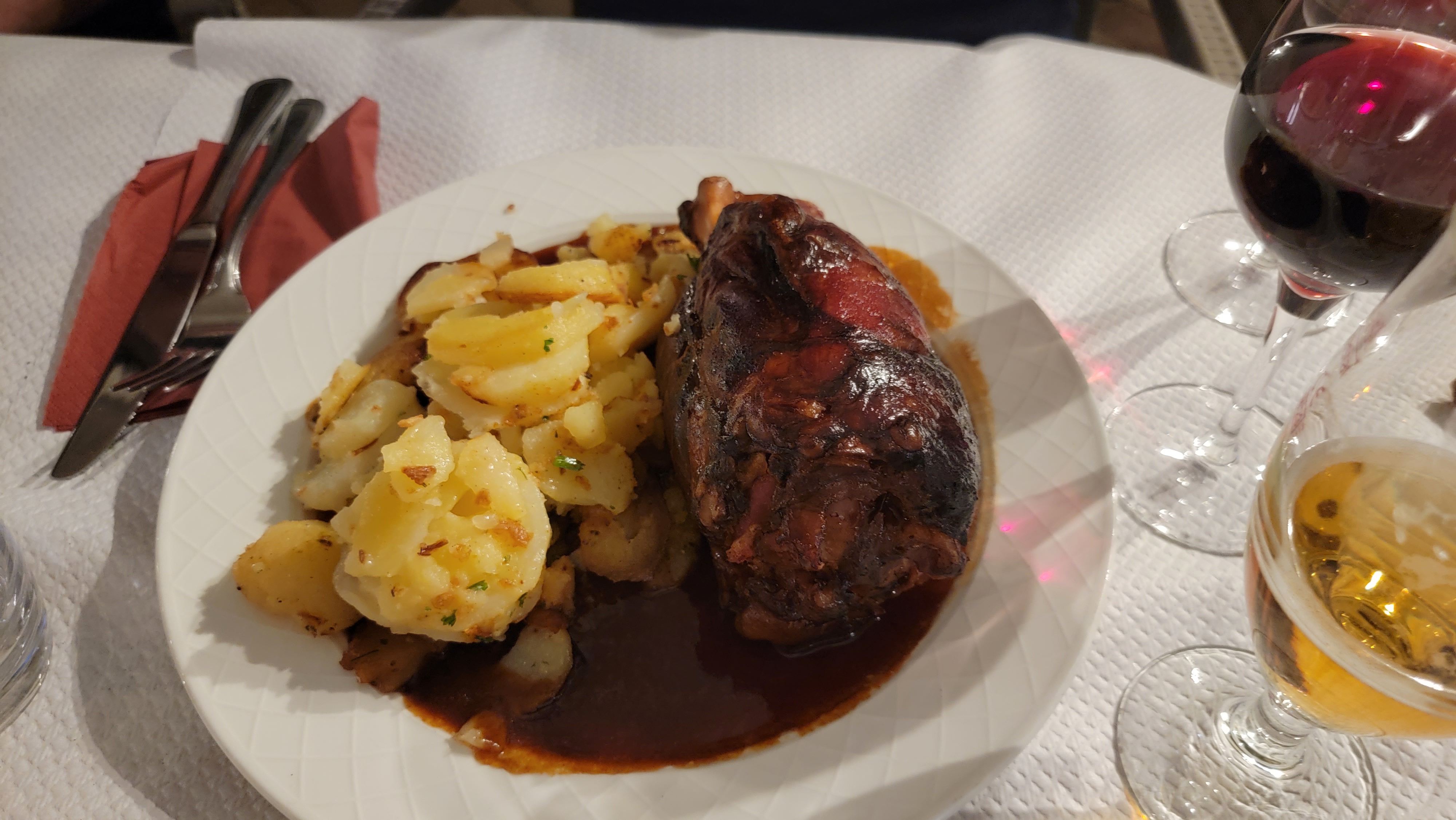 Super ambiance, canard et jarret de porc avec pommes de terre était superbe.