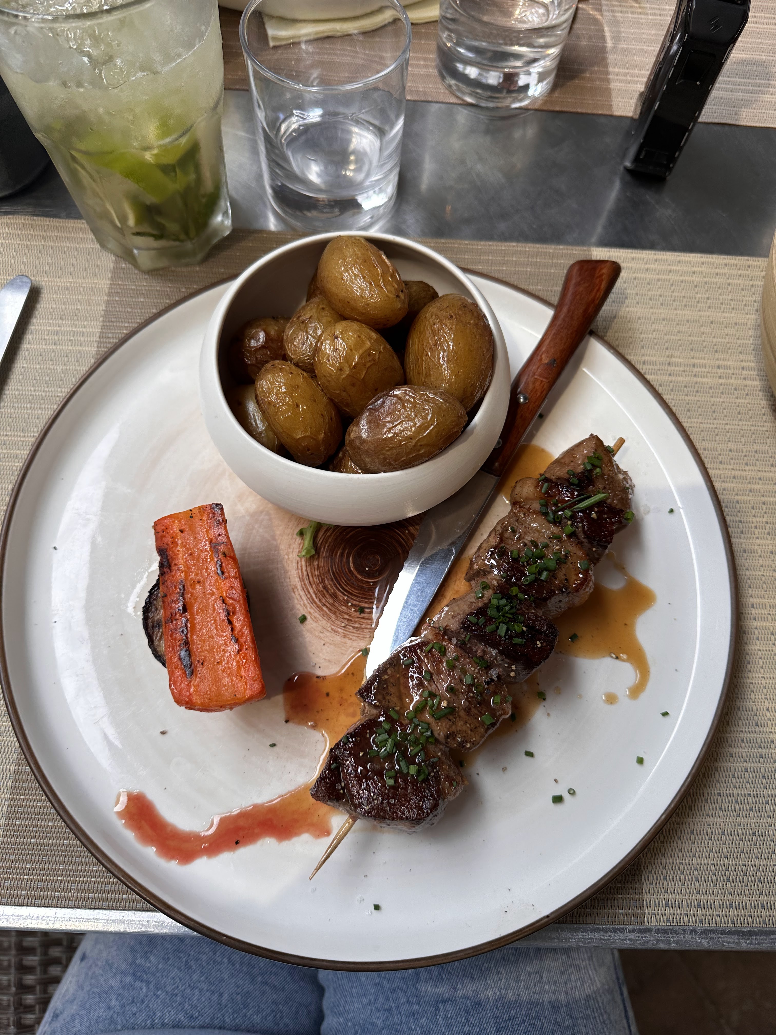 2e expérience de ce restaurant au calme dans l'Ecusson de Montpellier. Tout près de la Comédie mais... Dans un autre monde. Hyper agréable. Belle terrasse. Cuisine franchement bonne. De belles couleurs et de belles saveurs. Le rose au pichet est Mmm.... Pas mal ! Notre halte montpelliéraine au retour de Sète 🌞🌞⛵