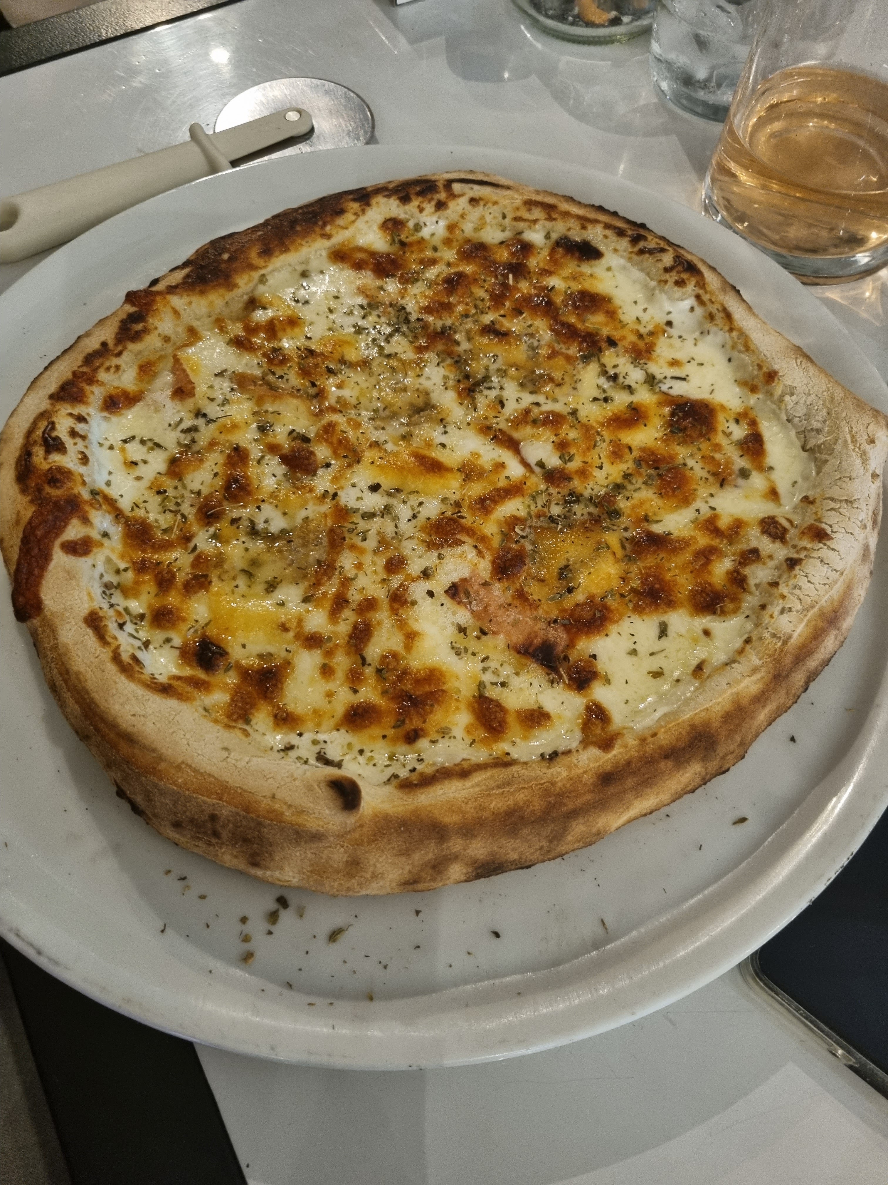 Trouve au hasard des avis Google et peur des attrapes touristes nous nous sommes arrêté en famille pour une bonne « petite » pizza (que nous n avons pas pu finir, de l accueil jusqu au café tout as été au top, service impeccable pizza délicieuse et cerise sur le gâteau……toilette propre mal grès un dimanche midi ou la terrasse été pleine… si vous voulez manger une vraie bonne pizza allez y sans problème